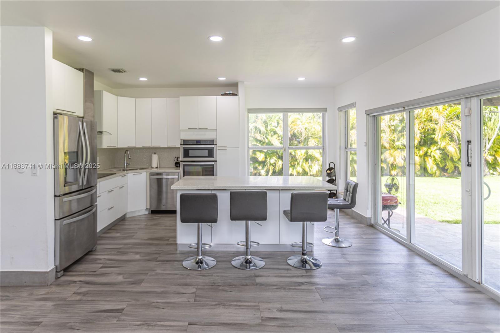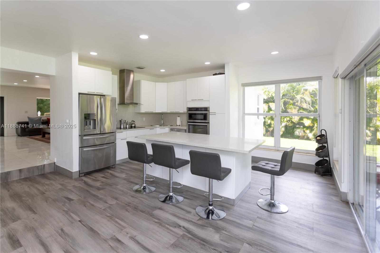 Beautifully renovated home sitting on a oversize lot in the heart of small Town Miami Springs in the premium area of the golf course. Discover a chef's kitchen with stainless steel appliances & white cabinetry and leading to a backyard featuring custom patio with fence and alley access perfect for RV/Boat, an in-ground pool, mango tree and is the perfect oasis for outdoor entertainment. Floors are ceramic, porcelain tile and wood. Other features include: front porch, hurricane impact windows and doors, newer roof in 2023, laundry room, exercise room, california closets, high ceilings. Located near aquatic center, playhouse, tennis court. Easy Access to highways, 30 mins to Beach, 10 mins to Miami Airport. This property is immaculate, well-cared for, and ready for new owners. Welcome home!
