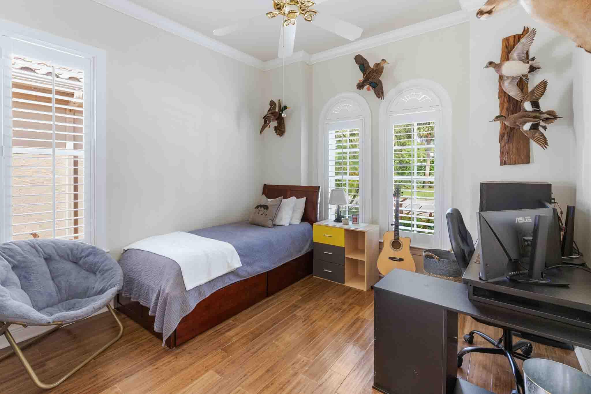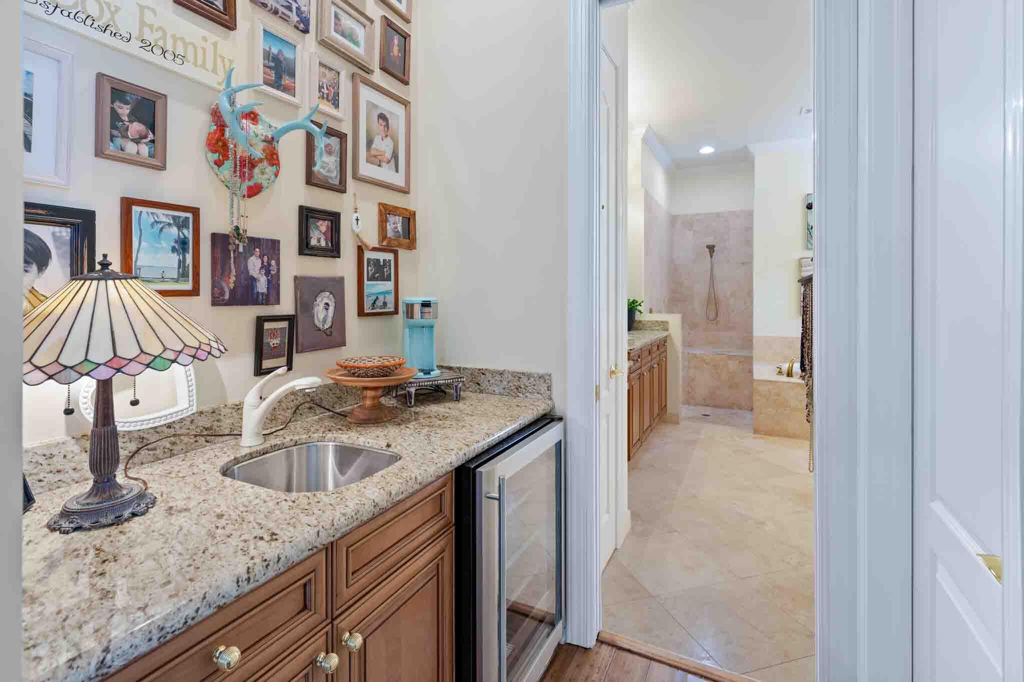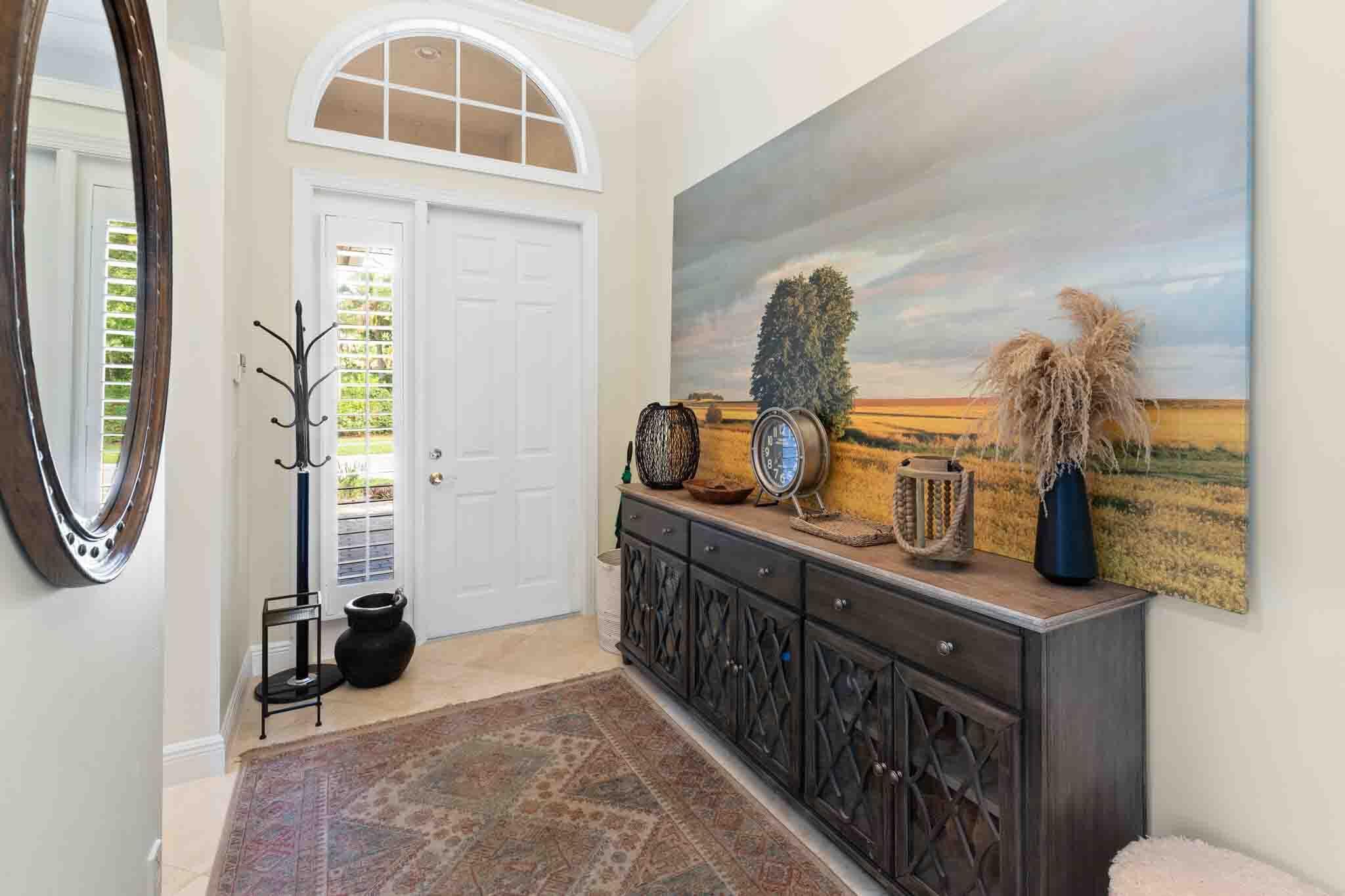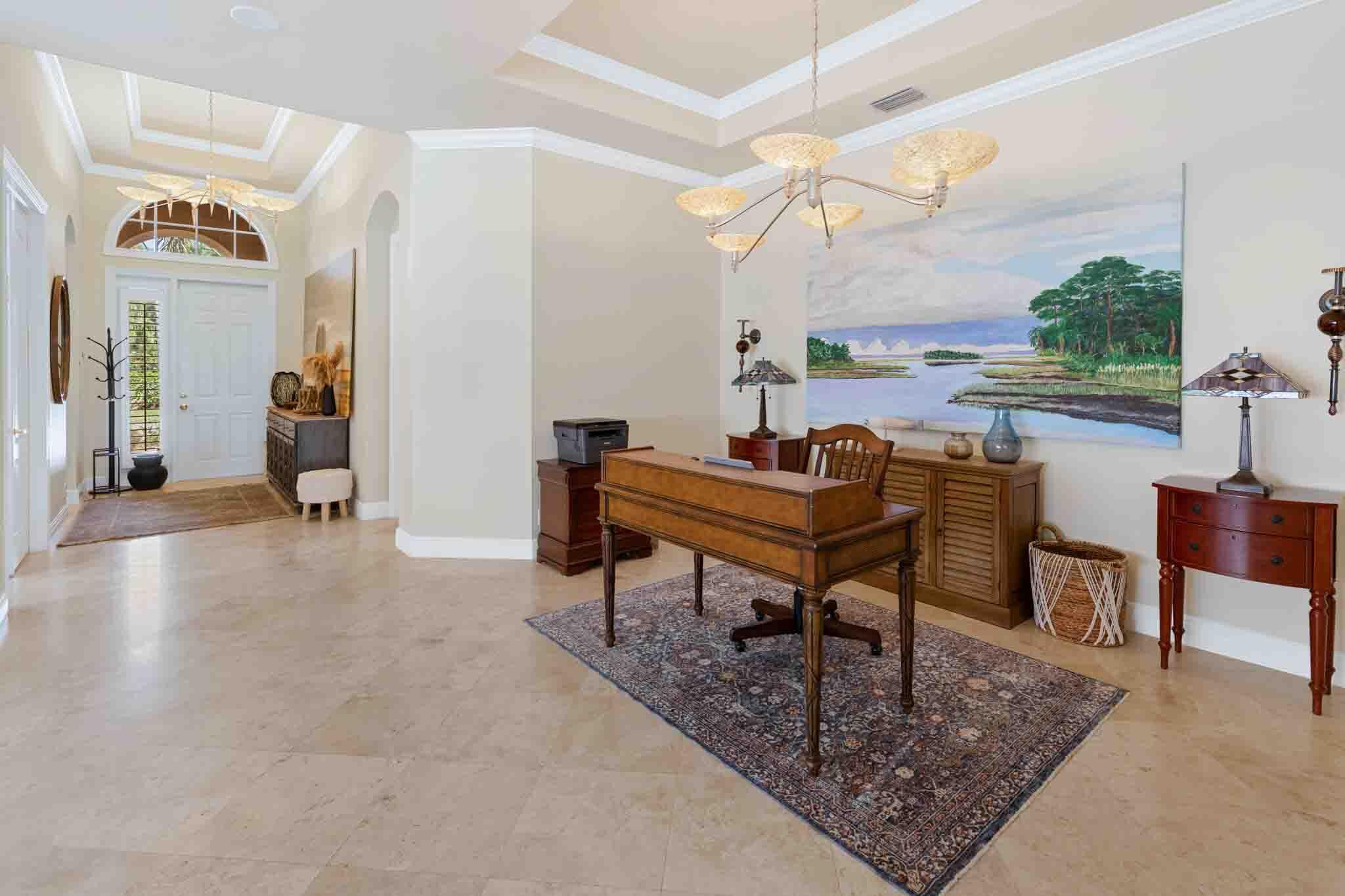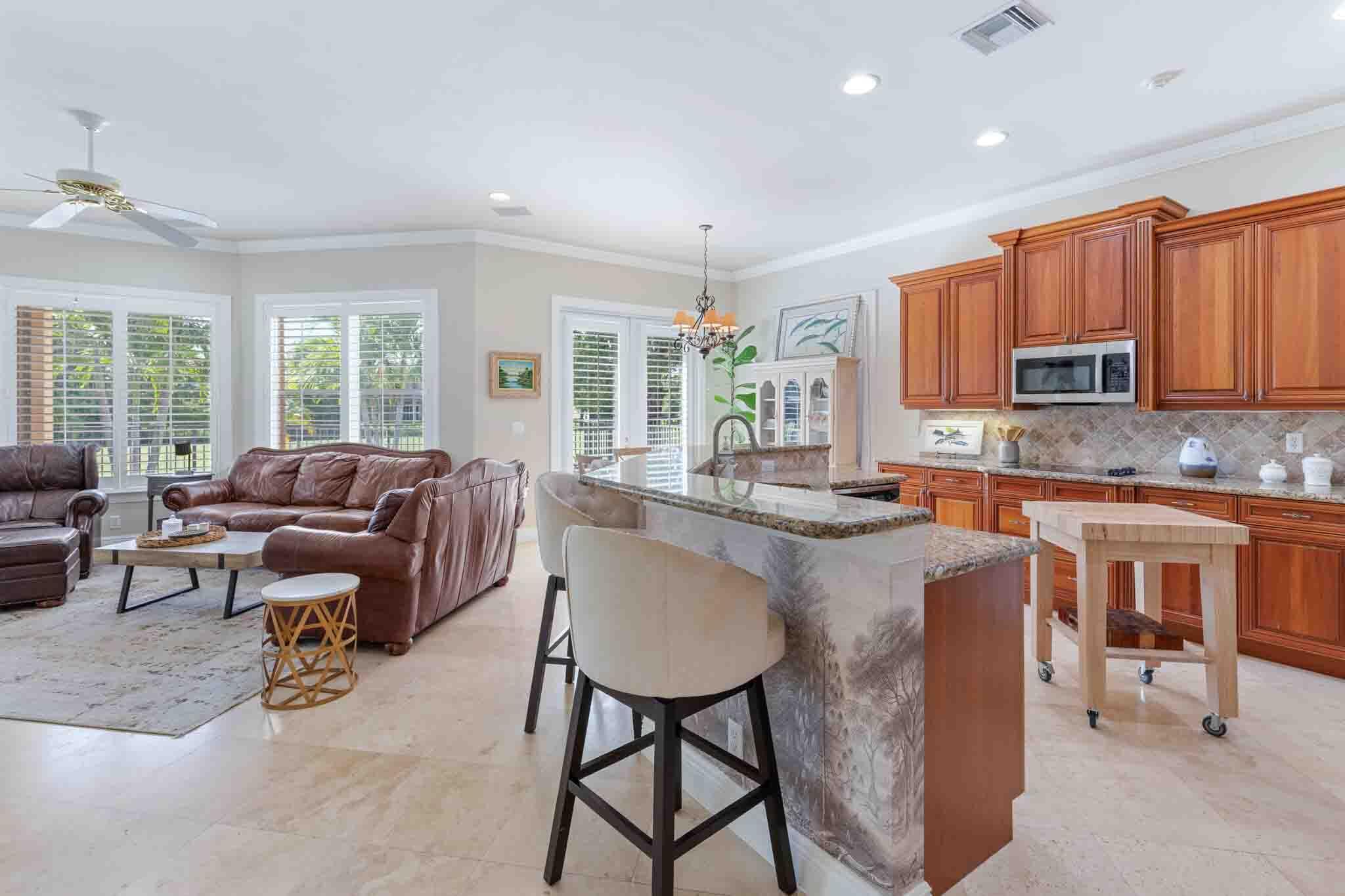 Boaters Paradise at a new price! This Palm Cove Golf & Yacht Club Pool Home features many custom upgrades, including travertine floors, solid wood doors, a charming gas fireplace, built-in coffee station in the oversized primary suite, wine/coffee station in the stylish kitchen w/center island, new a/c & water heater, whole-house water softener system, a/c in the garage & generator transfer switch. Enjoy serene pond views from your heated pool & spa. Palm Cove offers a 93-slip marina, as well as a newly renovated private golf course & restaurant, with memberships available but never mandatory. Community amenities include tennis courts, a riverfront clubhouse, a fitness center, a heated pool, a tot lot, and a variety of planned social events.