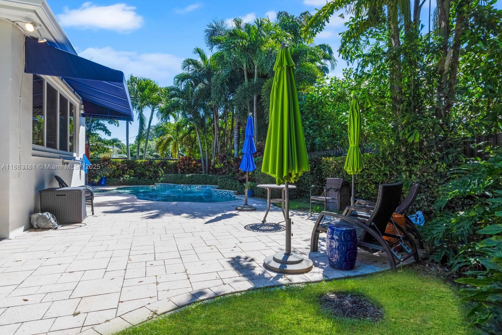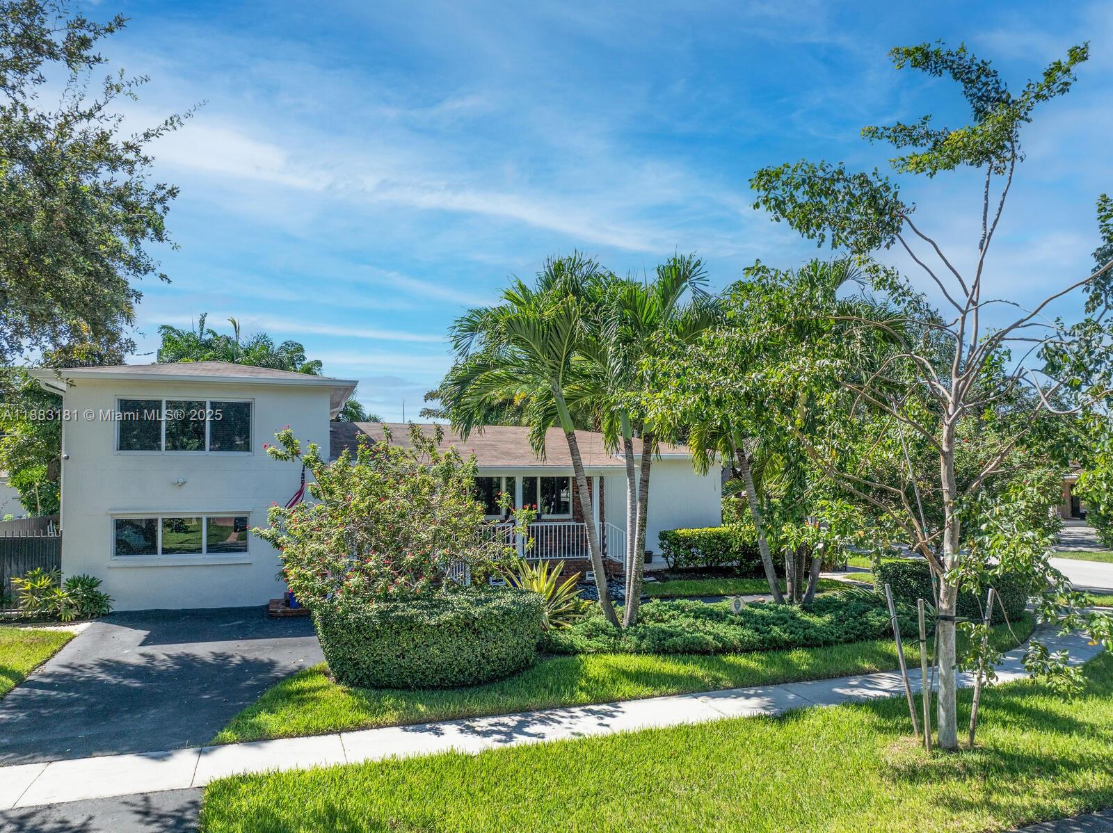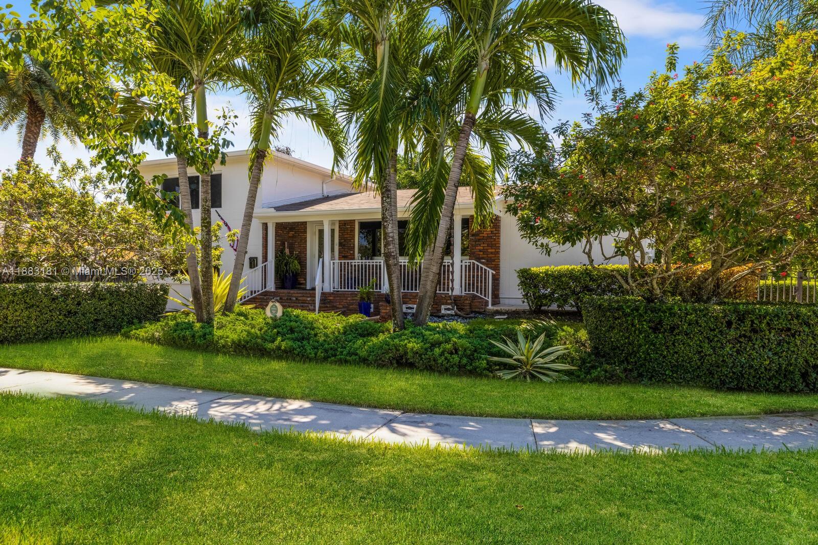 First time on the market in 57 years. House has 3/2, 1 bedroom on the first level with room for a 4th potential bedroom or living area making it ideal for growing families or those needing extra space. Florida room with panoramic view of sunlit pool and garden paradise. Spacious indoor laundry room with built in cabinets. Situated on a corner lot, the home features expertly maintained tropical landscaping that enhances curb appeal. The outdoor area is highlighted by an exquisite salt water pool and large patio, perfect for relaxation, entertaining, & enjoying the outdoors year round. Inside, the kitchen has been updated w/modern amenities including large quartz counters, S/S appliances,Viking gas stove. Hurricane impact windows and doors. Updated plumbing and electric, a/c 2016.