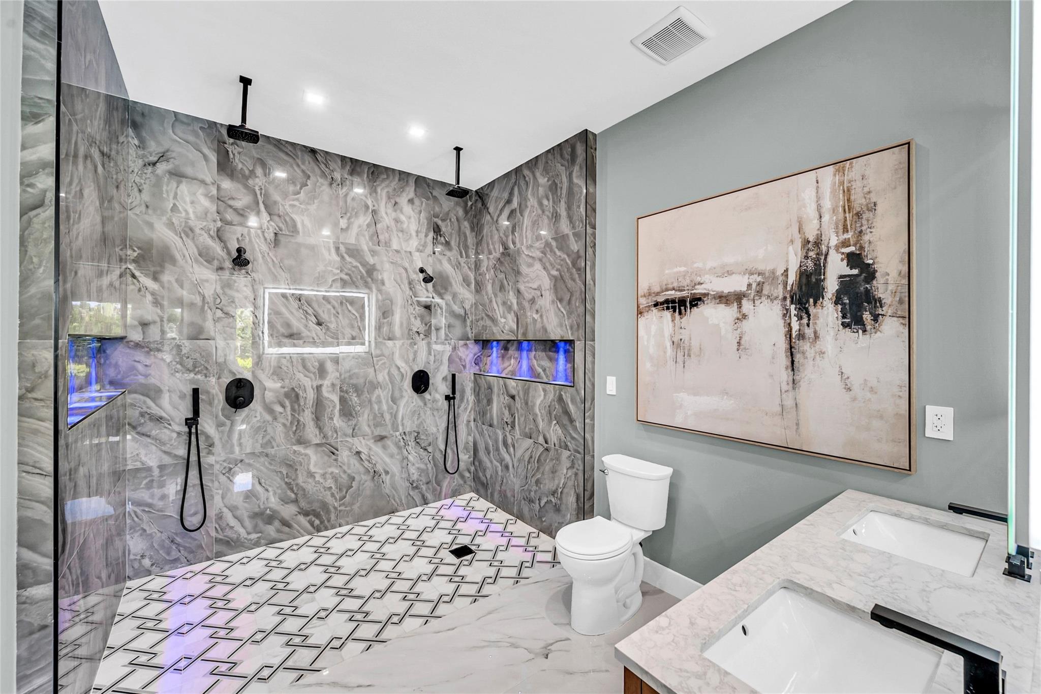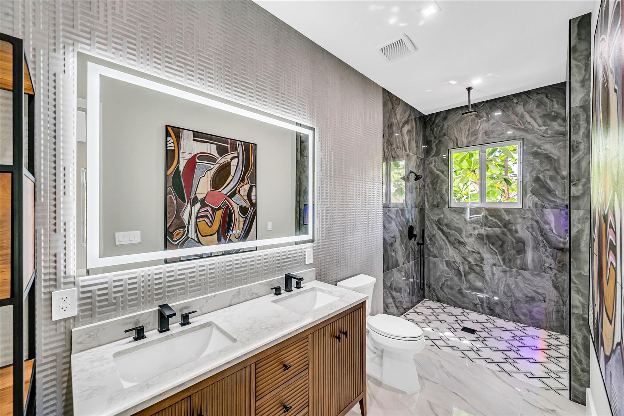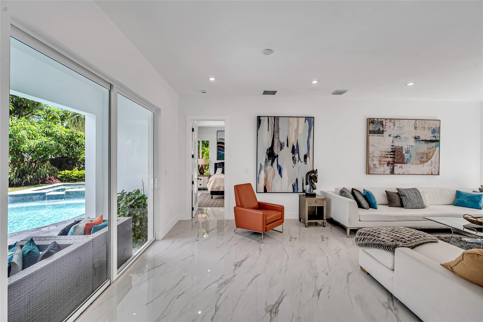 Available Turn-key furnished! Motivated Seller/Builder! 2025 new construction masterpiece, offering over 3,480 sqft of refined living with soaring 12–14 ft ceilings and an open-concept flow. The Italian designer kitchen commands attention with Thermador appliances and a dramatic 14-ft quartz island. Featuring four spa-inspired en suites plus a flexible family room (optional 5th bedroom), this home blends elegance and innovation through its fully automated smart home system with voice control. Outside, discover a heated saltwater pool with seating for 30, 12-person spa, and marble deck—an entertainer’s dream. Completing the residence is an epoxy-finished garage with EV charger and pitched tile roof (superior to flat roof's). located near Wilton Drive, the beaches, airport, & Brightline.