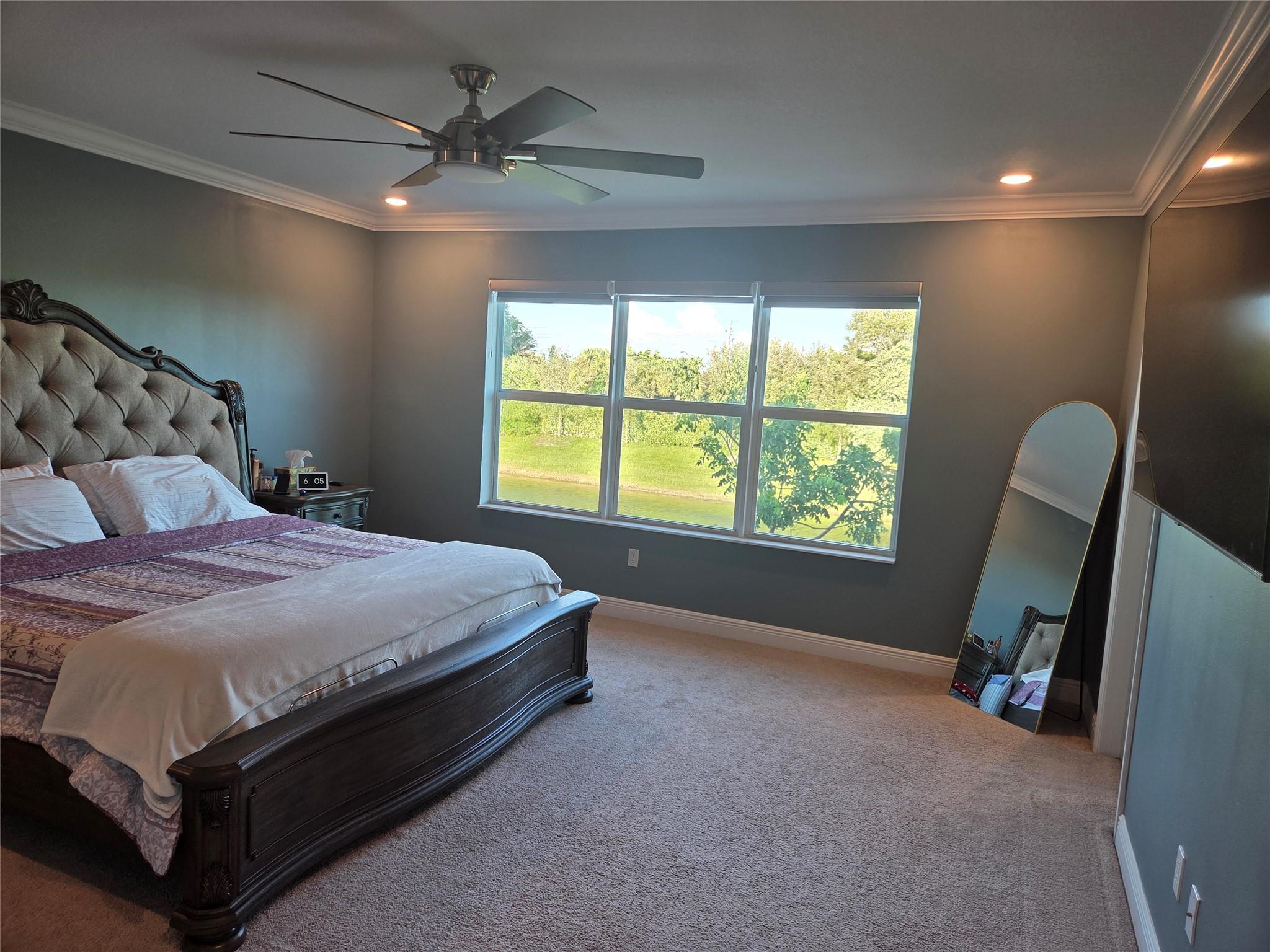 Built in 2021, this sophisticated and spacious one-owner 5BR/3BA home with loft showcases an upgraded kitchen with quartz countertops and walk in pantry, stylish baths, and crown molding on both levels. The first floor features a full bedroom and upgraded bath. The oversized primary suite features a walk-in closet, while a convenient second-floor laundry with sink adds everyday ease. Outdoors, enjoy an oversized driveway, pavered walkway, and an extended lanai with fully fenced serene canal views, perfect for entertaining with room for an outdoor kitchen. An oversized 2-car garage complete this stunning home in a secure, gated community. This smart home featuring motorized blinds, thermostat, doorbell, and more, completes this exceptional gated community residence.