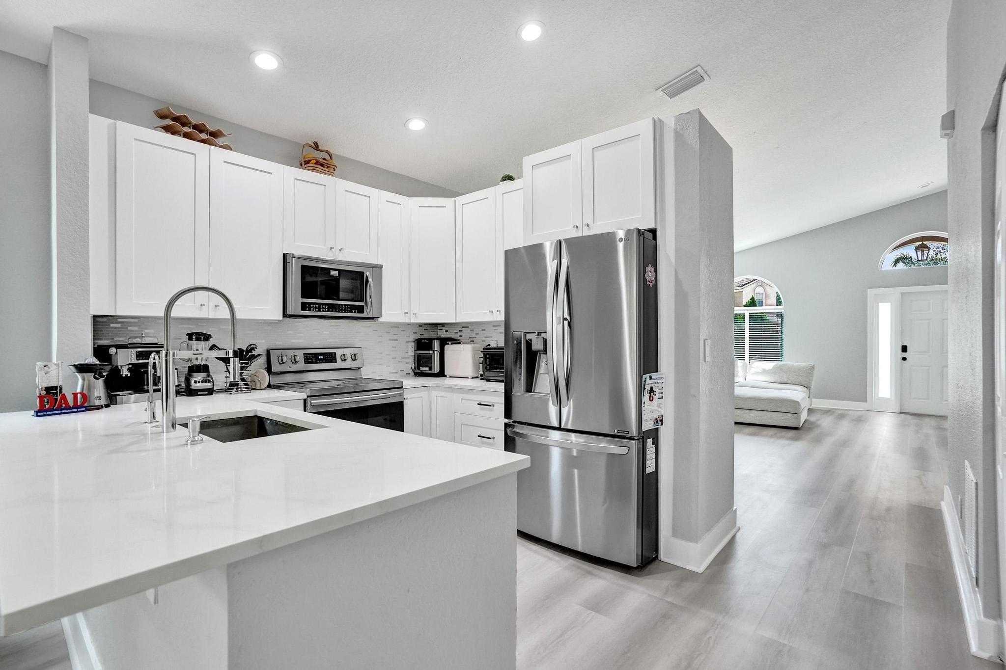 TOTALLY RENOVATED 3 BED/2 BATH POOL HOME Located on quiet private cul-de-sac in desirable gated community of Vizcaya. IMPACT WINDOWS!!! HEATED POOL RECENTLY RESURFACED with Hawaiian Blue Diamond Bright and LED LIGHT! BRAND NEW FLOORS, UPDATED BATHROOMS AND KITCHEN with NEW HIGH END STAINLESS STEEL APPLIANCES, WHITE SHAKER CABINETS, WHITE QUARTZ COUNTERTOPS WITH MODERN GLASS BACKSPLASH, FRESHLY PAINTED INTERIOR, NEWER AC UNIT, NEW WATER FILTER SYSTEM, NEW MODERN HARDWARE, NEW SPRINKLERS, VAULTED CEILINGS with NEW LED LIGHTING THROUGHOUT, NEW CUSTOM FLOOR IN GARAGE. LOW HOA includes CABLE, LANDSCAPING OF FRONT/BACK YARDS, ALARM MONITORING & Amenities: community pool, hot tub, gym, tennis courts! Great location! Good Schools, easy access to highway.