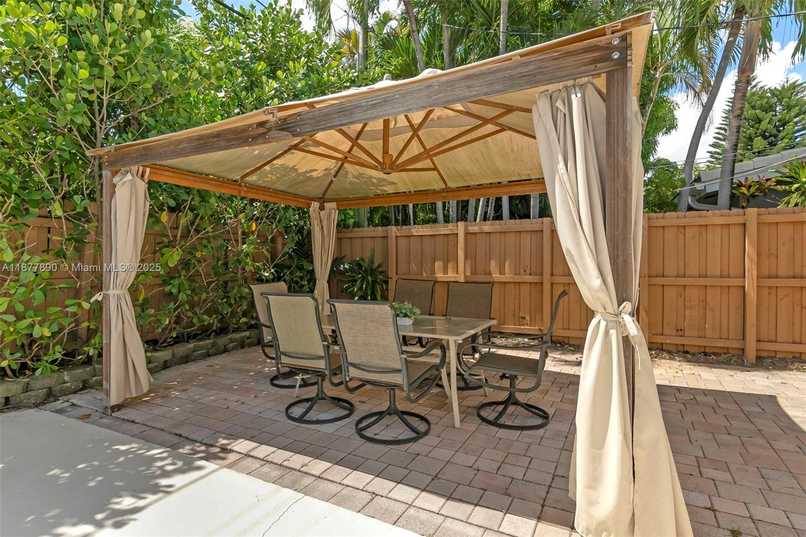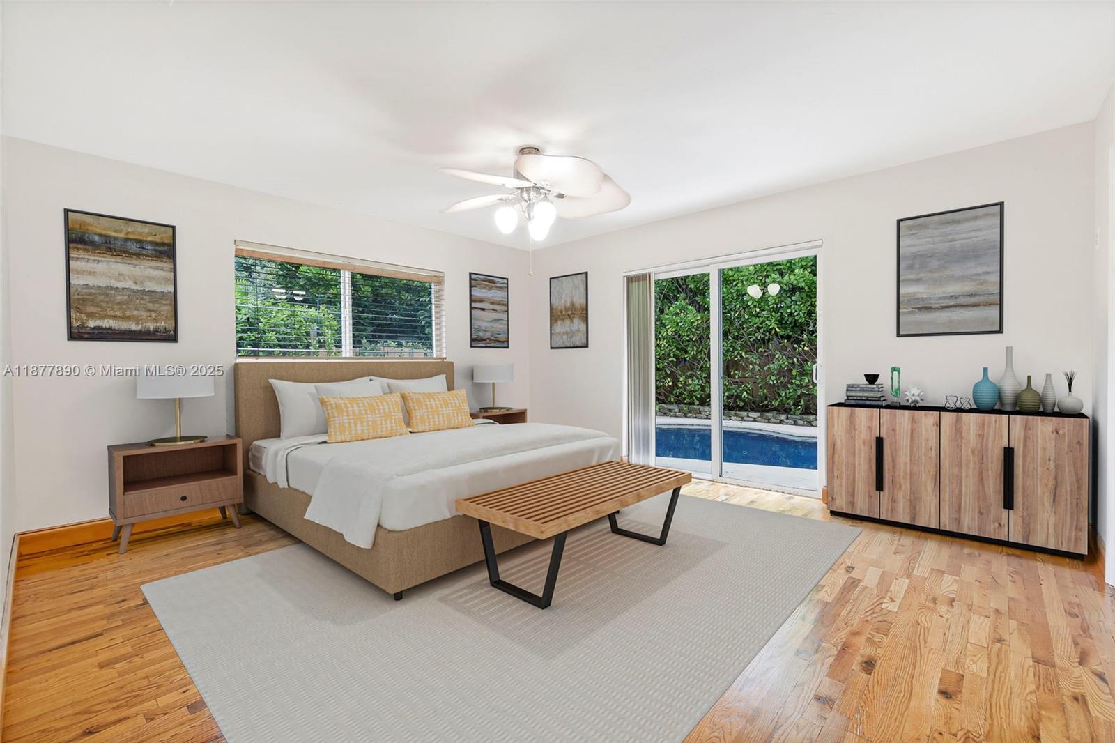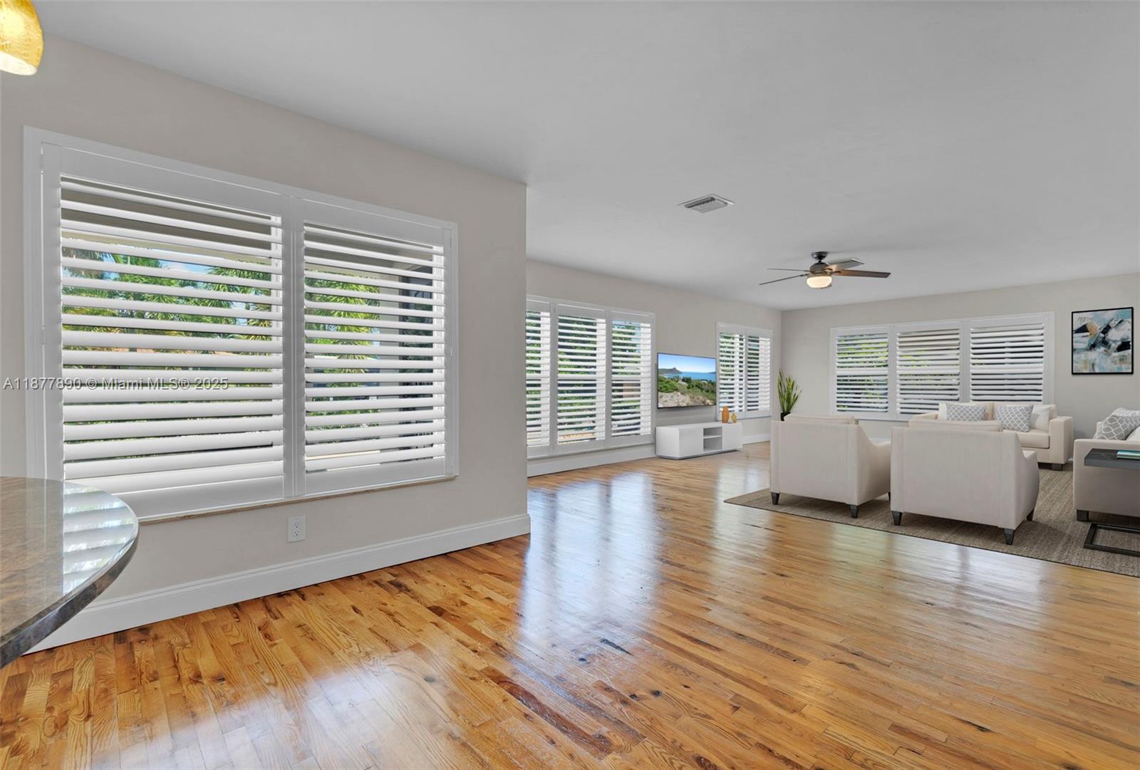 All about LOCATION! This large 3-bedroom (OVER 2000 SQFT), 3-bathroom home features spacious split bedrooms and a large dream kitchen with butler's pantry. Redwood flooring throughout and an open-concept design create spectacular living space. The large backyard is your private resort featuring a fully tiled, heated saltwater pool and large grassy area with cabana. Recent major updates include new metal roof (2021), new A/C (2020), and $30,000 whole-house gas-piped GENERAC generator. Additional premium features include impact hurricane-rated windows and doors, tankless water heater, 2-zone AC, and fully insulated attic. This move-in ready home combines luxury amenities with energy efficiency and storm protection. Motivated seller has already relocated north. Furniture photoshopped!