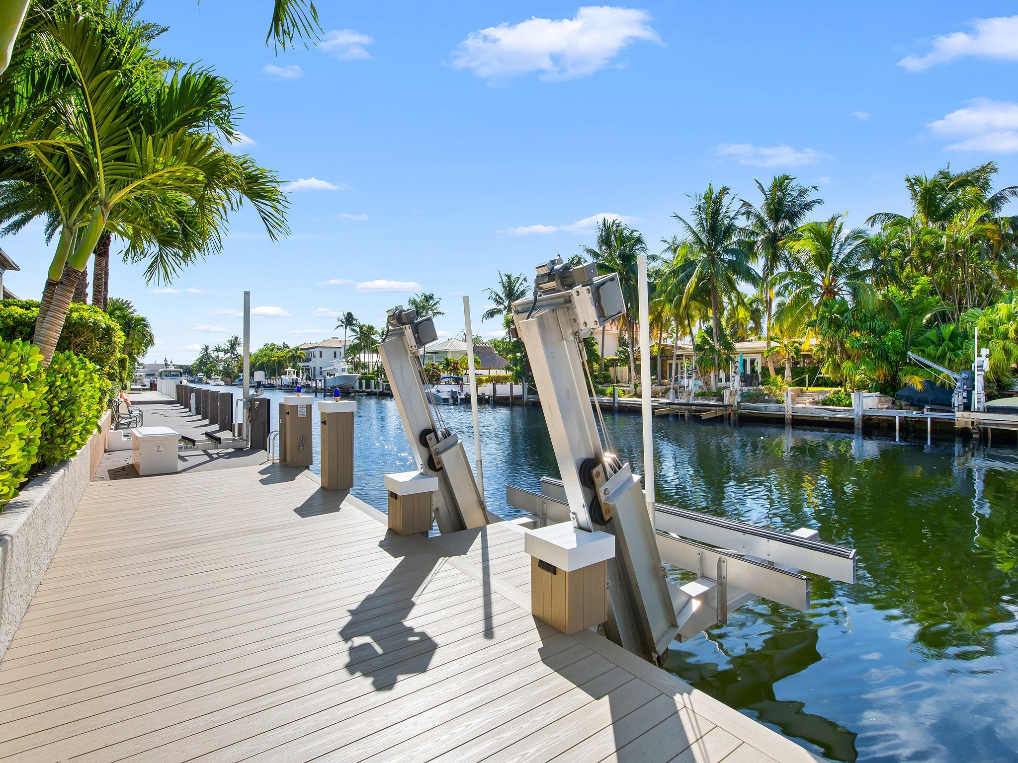 Stunning Lighthouse Point Coastal Home offering both community and waterfront lifestyles. Step inside to discover an open concept layout with volume ceilings. This home allows for effortless entertaining flowing seamlesly from the gourmet kitchen to the sunlit living areas. With 4 bedrooms and 3.5 baths and sitting on a spacious 10,000+ sq ft of property, it's a home that is as spacious as it is inviting! Imagine waking up every day to serene waterviews and enjoying morning coffee out on the patio. This home is complete with a brand new 20,000# boat lift and brand new dock - perfect for the sea lover. Short boat ride to the ocean for fishing and diving. This charming home is more than a place to live, it's a place to love! Schedule your private showing and Let's Get You Moving!