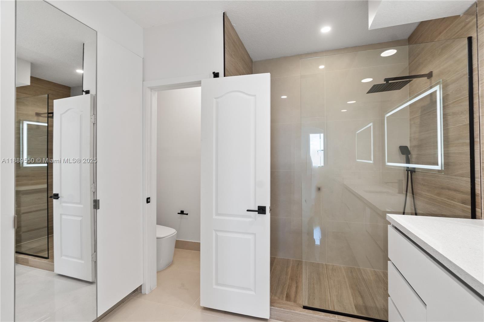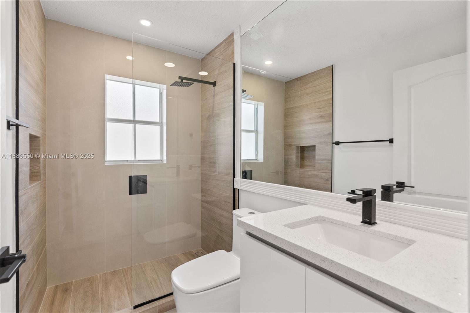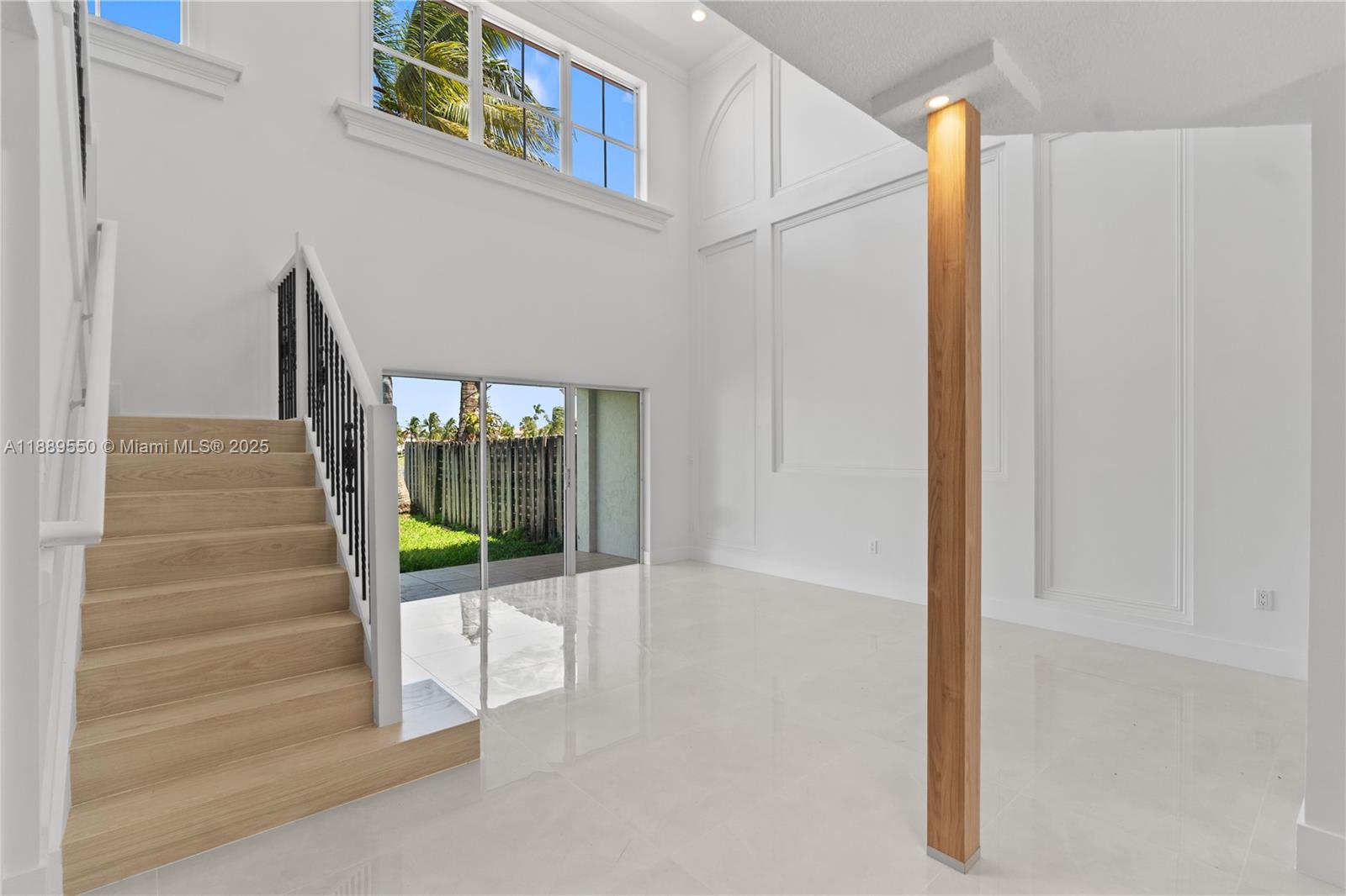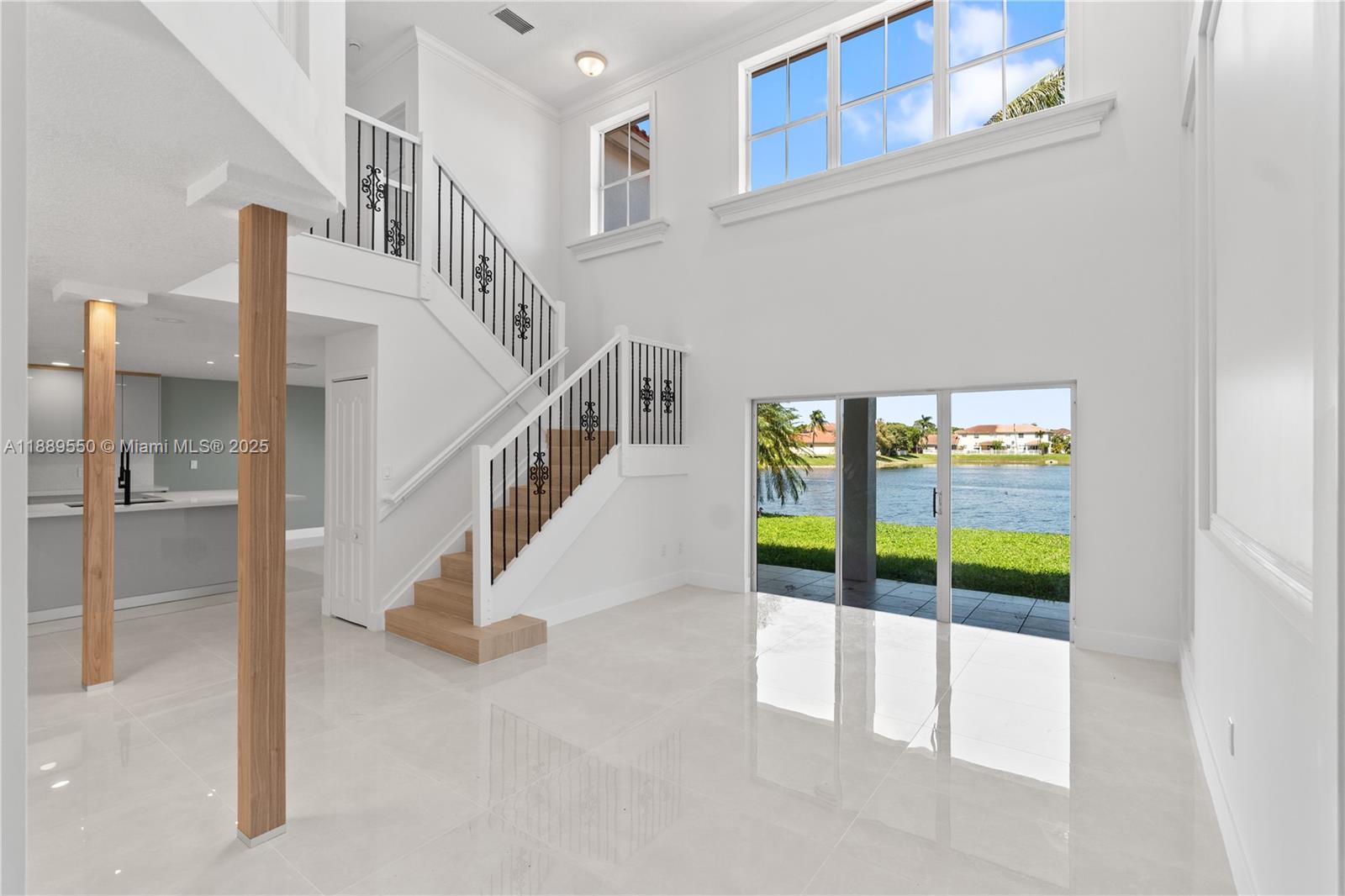 Welcome to this renovated lakefront residence in the gated community of Melrose Point at Park Lakes. This 4-bed, 3-bath home features soaring ceilings, expansive windows, and panoramic lake views. The open layout highlights a new designer kitchen with quartz counters, sleek cabinetry, and stainless steel appliances. Bathrooms include modern finishes, frameless glass showers, and custom vanities. A first-floor bedroom with full bath is ideal for guests. Upstairs, the primary suite offers a spa-inspired bath and serene water views. Additional features include porcelain tile flooring, wood accents, and a 2-car garage with laundry area. Private patio overlooking the lake and fountain — perfect for entertaining or sunsets. Community amenities include pool, recreation facilities, and security.