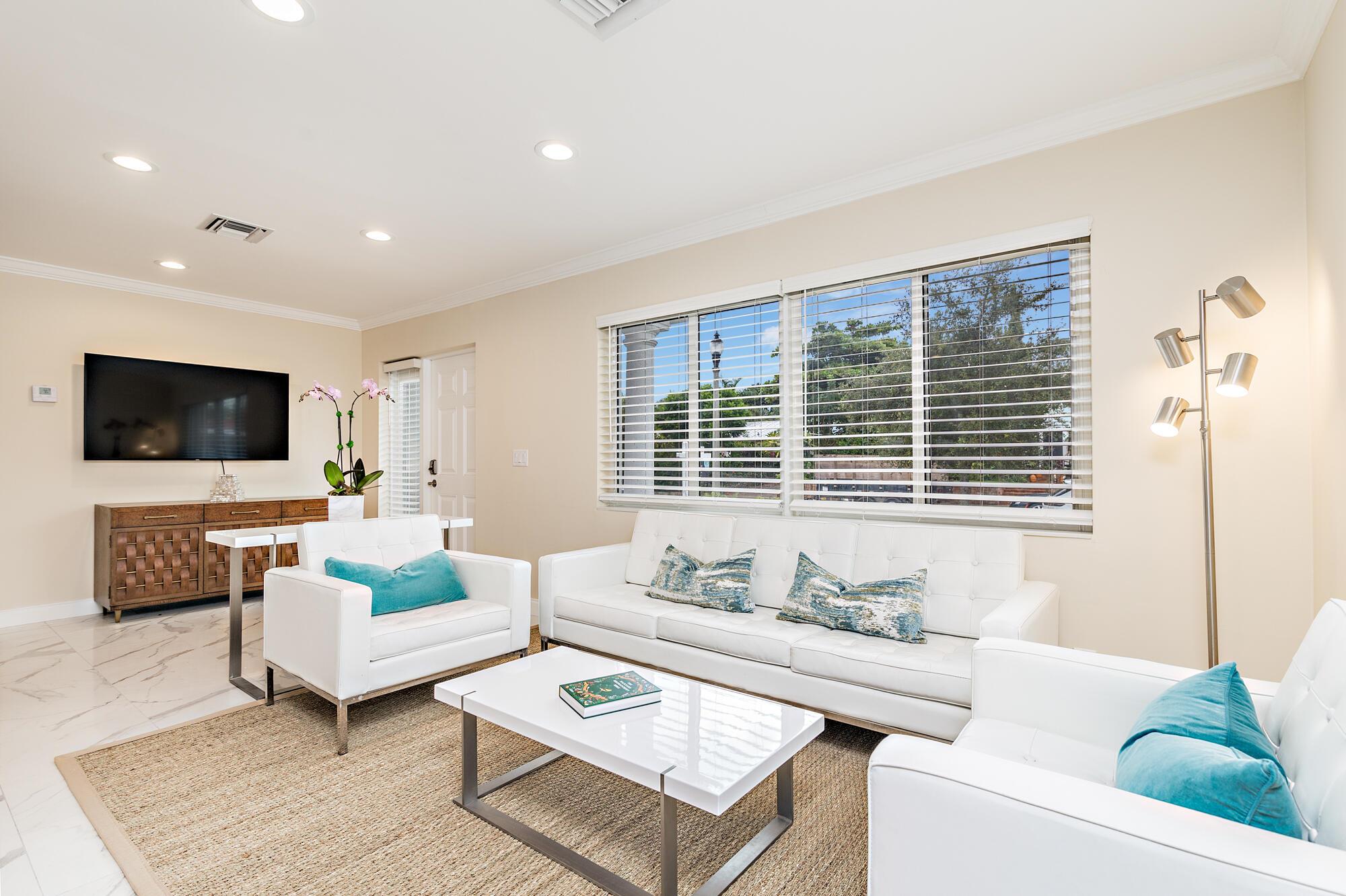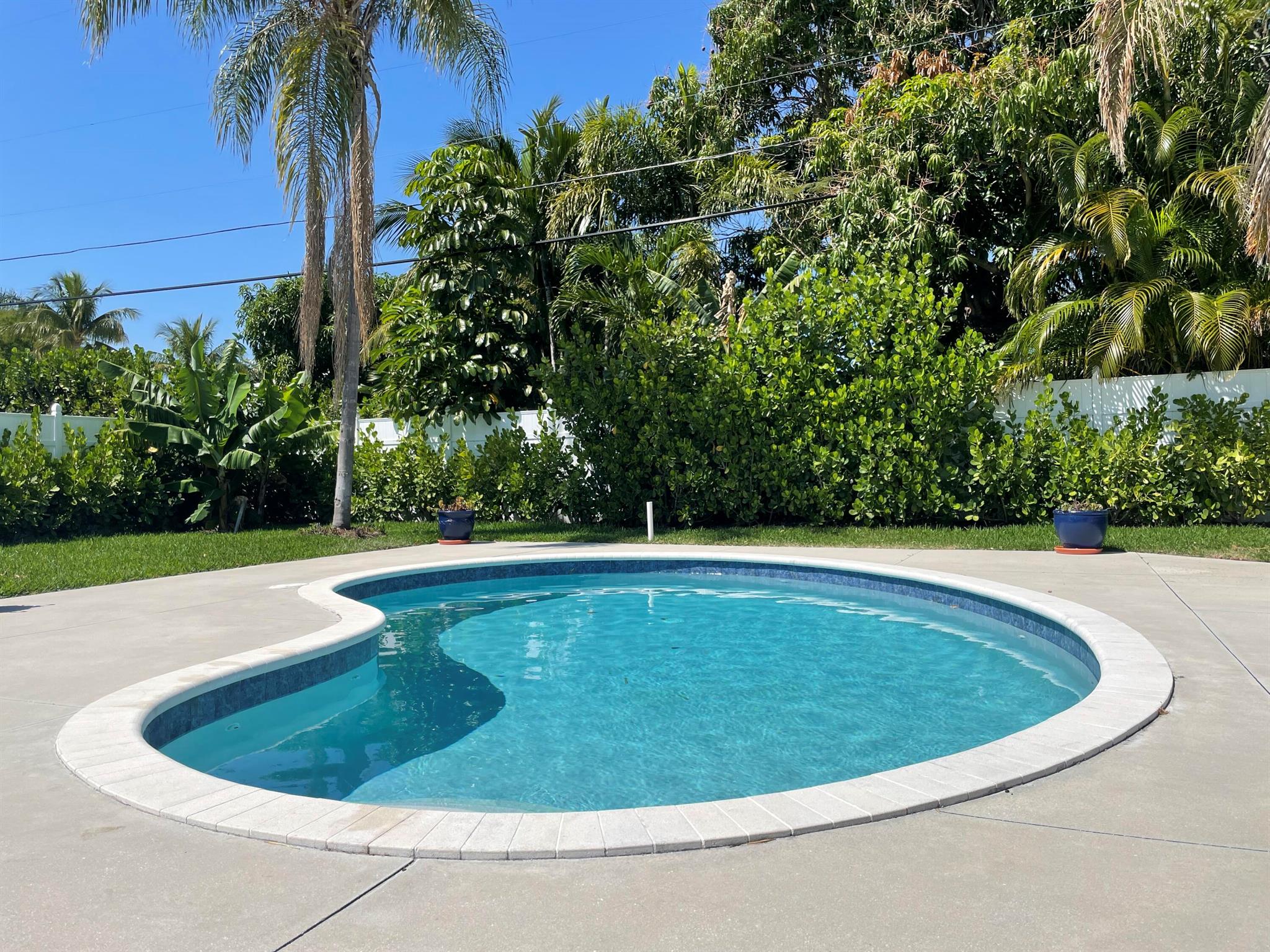 A pristine 2 bed/2 bath retreat with sun-soaked swimming pool and spacious patio area, all set within the fully fenced private backyard and 8,000+ square foot lot. Completely updated with new kitchen, appliances, bathrooms, and impact windows. Additional features include a one-car garage with space for bicycles and beach toys, utility room with washer/dryer, custom closets throughout, and large driveway for off-street parking. A+ location with walkability to the intracoastal and shops/restaurants, and minutes from downtown WPB, Palm Beach island, PBI airport and I-95