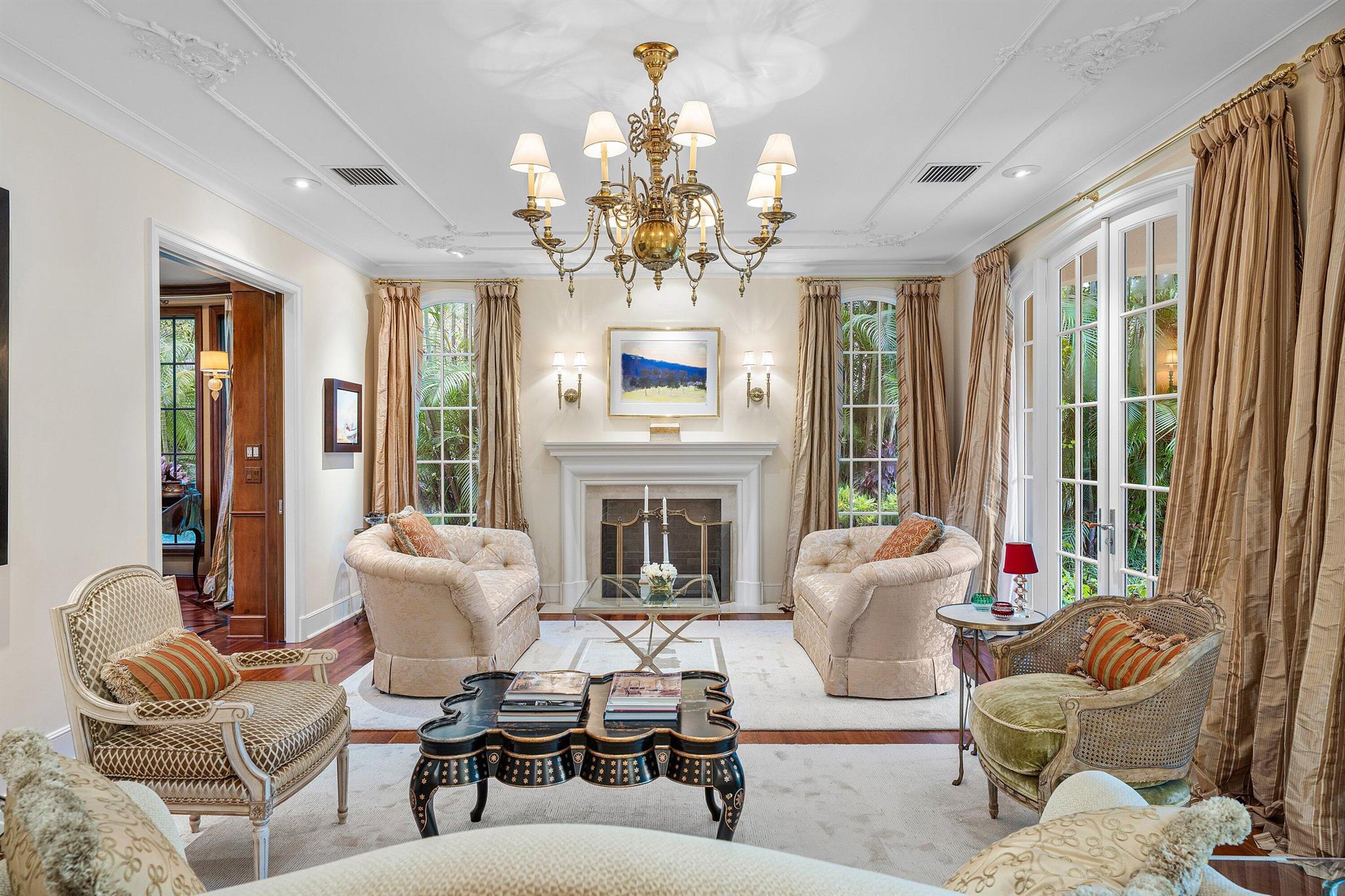 This extraordinary estate at 242 Wells Road combines classic French Provincial architecture with timeless elegance, offering an unparalleled lifestyle on one of Palm Beach's most prestigious streets. This magnificent 7,460 total sq. ft. French Provincial masterpiece is nestled on a sprawling 19,500 sq. ft. lot in the heart of Palm Beach. This stately manor, with its steep-pitched slate roof, symmetrical facade, and stone surrounds, exudes Old World charm and impeccable craftsmanship. The home's architectural grandeur is enhanced by graceful balustrades and meticulously sculptured landscaping, creating a serene and sophisticated retreat. Step inside to find luxurious interiors adorned with gleaming hardwood and marble floors