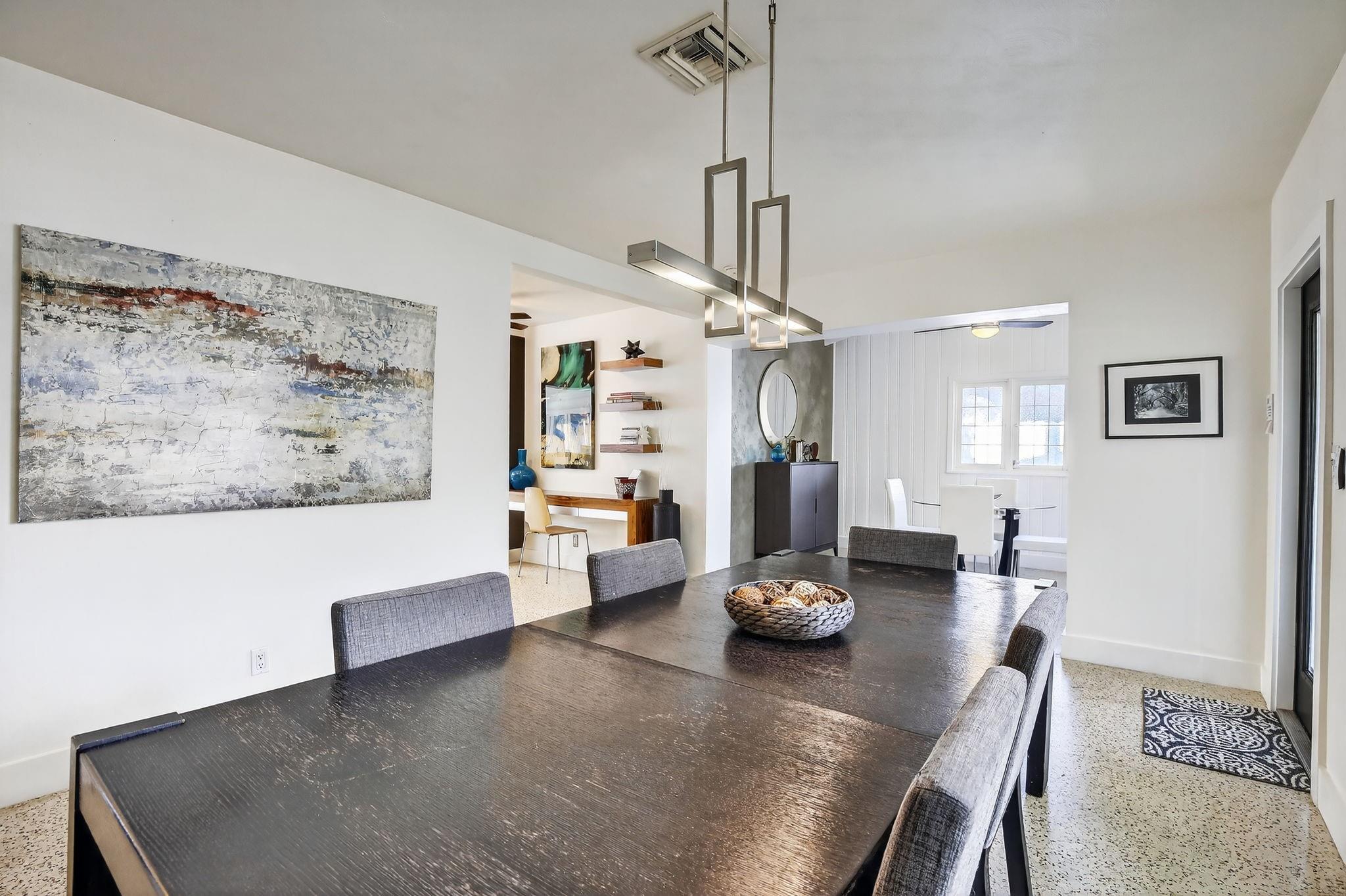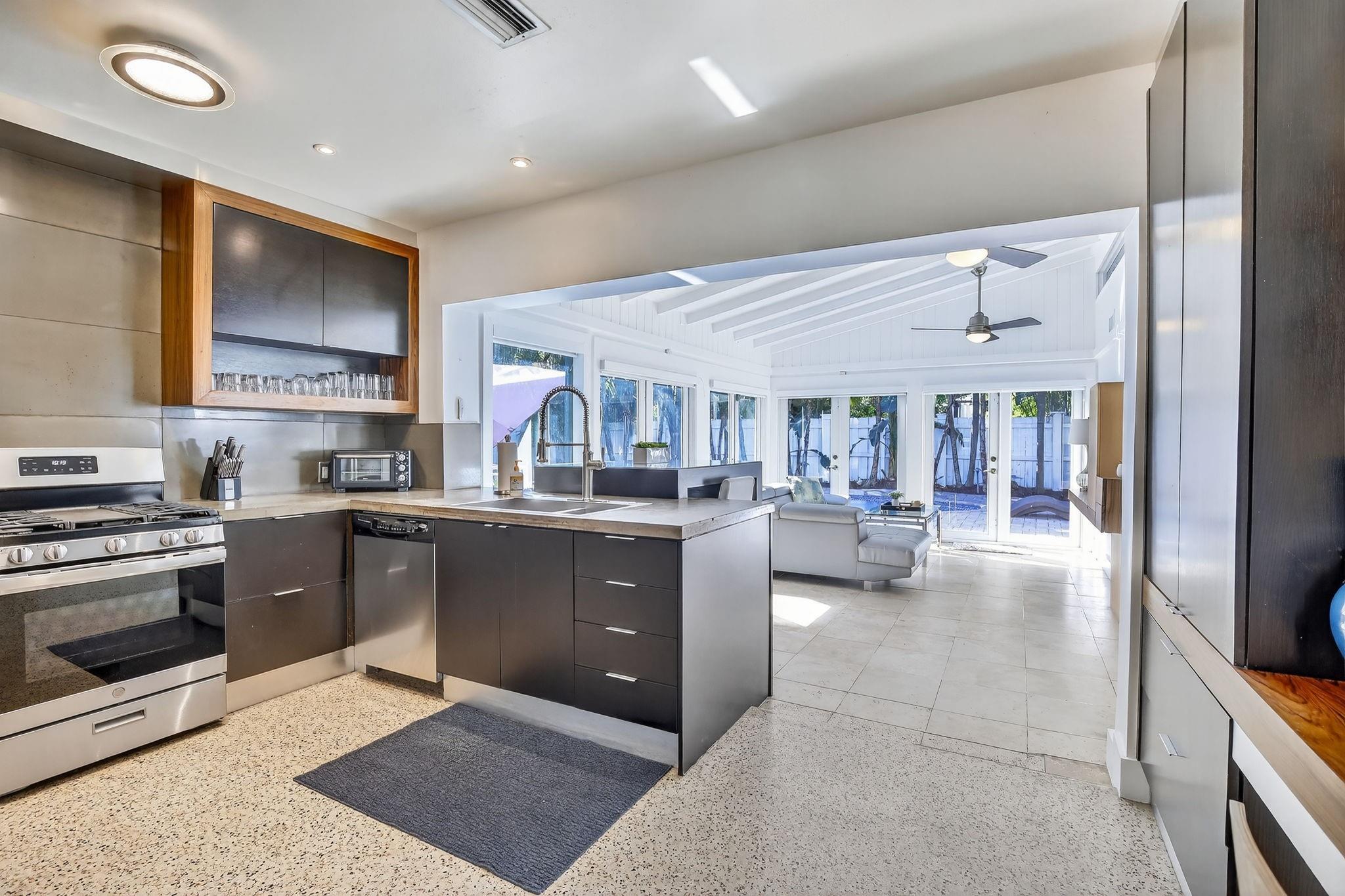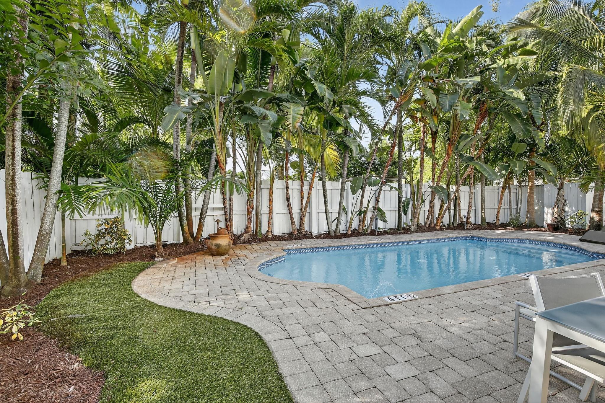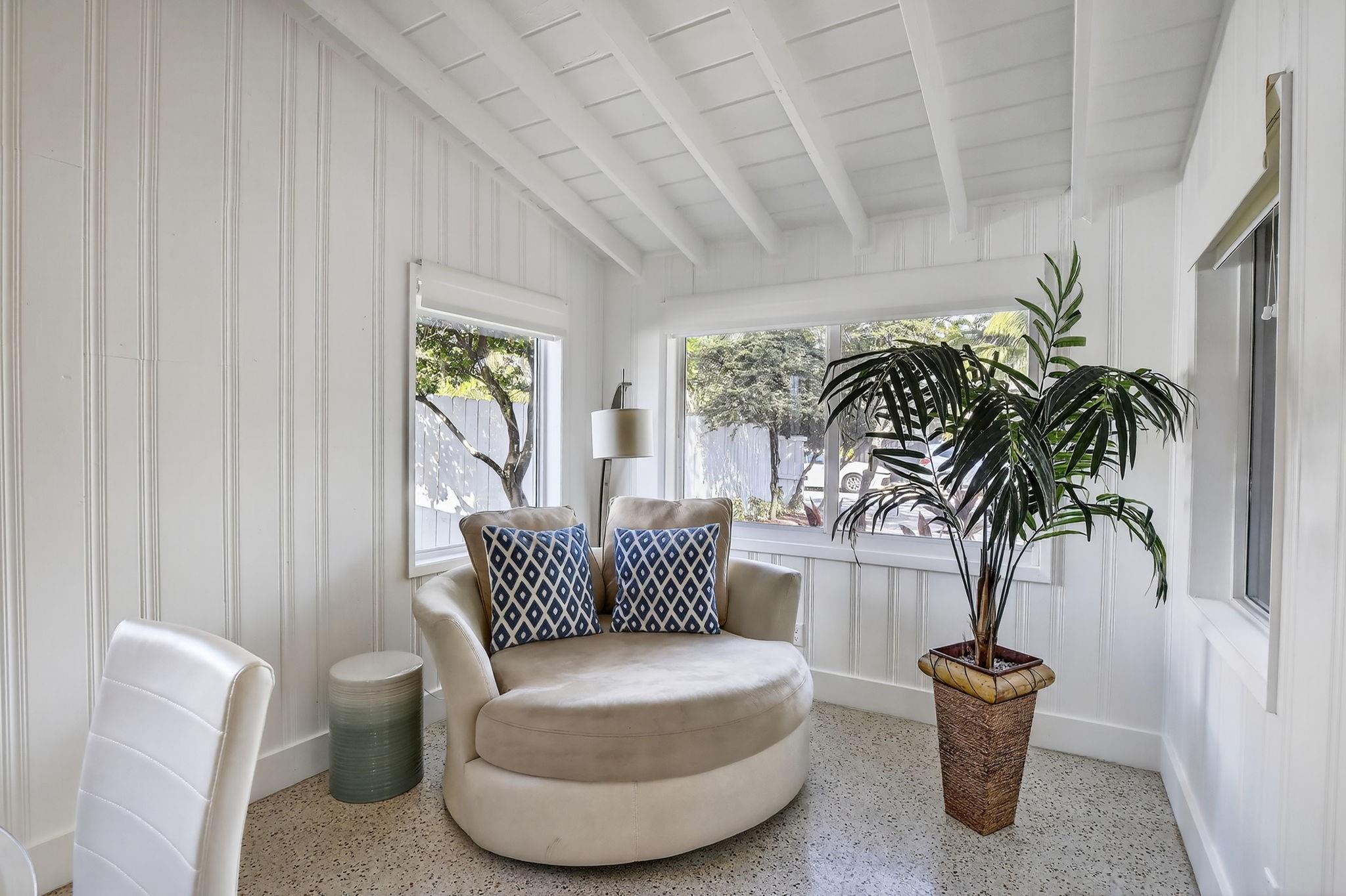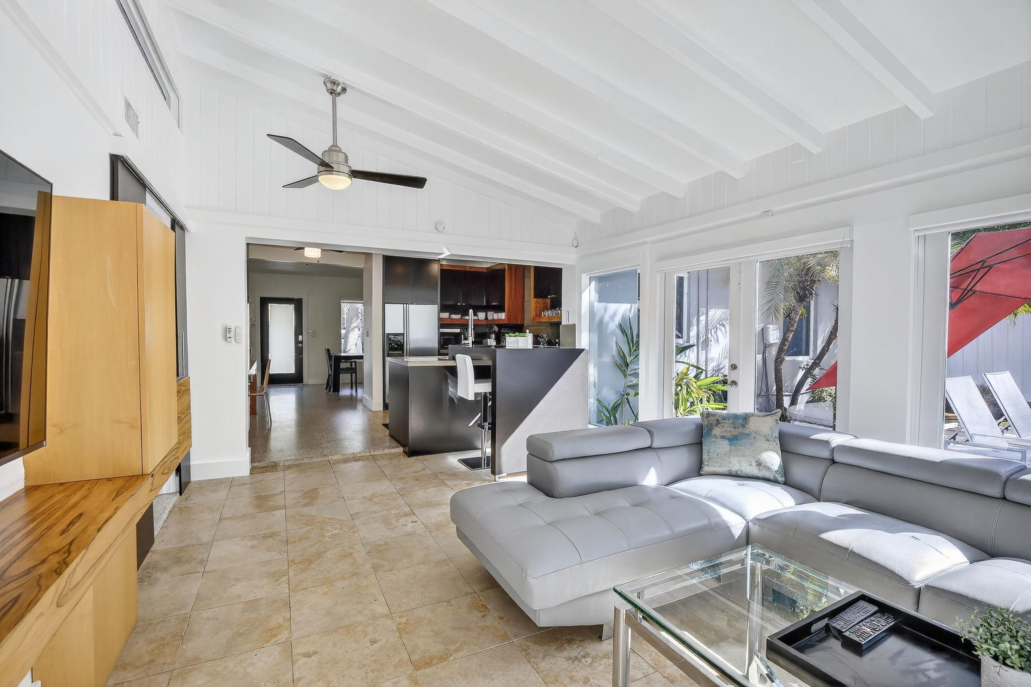 This stylish 3BR/2BA home blends comfort, charm, and modern convenience. Recent upgrades include a metal roof (2022), fully paid-off solar panels (2022), updated electrical (2022), and a resurfaced pool (2022). Bright open layout with vaulted ceilings and French doors creates seamless indoor-outdoor flow to a lush backyard oasis. Features impact windows & doors, two A/C units (one 2022), gas cooking, new attic insulation (2025), and hard-wired detectors. Offered turn-key, furniture negotiable!