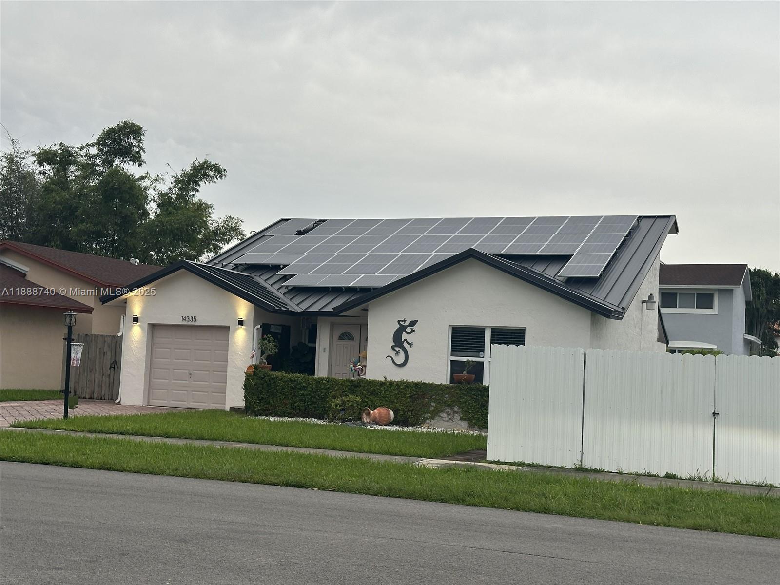 Come see this beautiful 3-bedroom, 2bath home located in one of the most desirable communities in the area in excellent condition ready to move in. Metal roof 2023, high impact windows and doors . Interior wood plantation shutters. .Wood kitchen in outstanding condition ,beautiful New 5 tons central a/c unit and compressor .Built–in closets in all three bedrooms. Paver driveway and front door step. Featuring a BRAND-NEW ROOF (2023)and solar panels .this property is move-in ready and full of charm, offering both comfort and excellent potential. This home is perfect for families or anyone looking for a smart investment. Whether you're searching for your dream home or a property with strong rental appeal, this is a fantastic choice. Don't miss this opportunity, This home has it all!!!!
