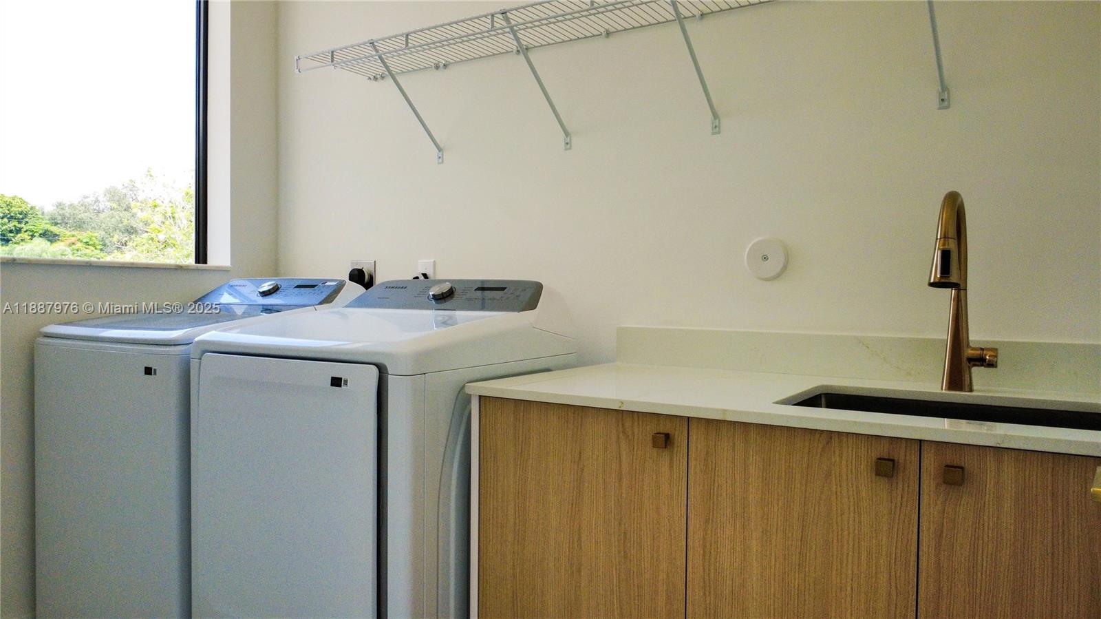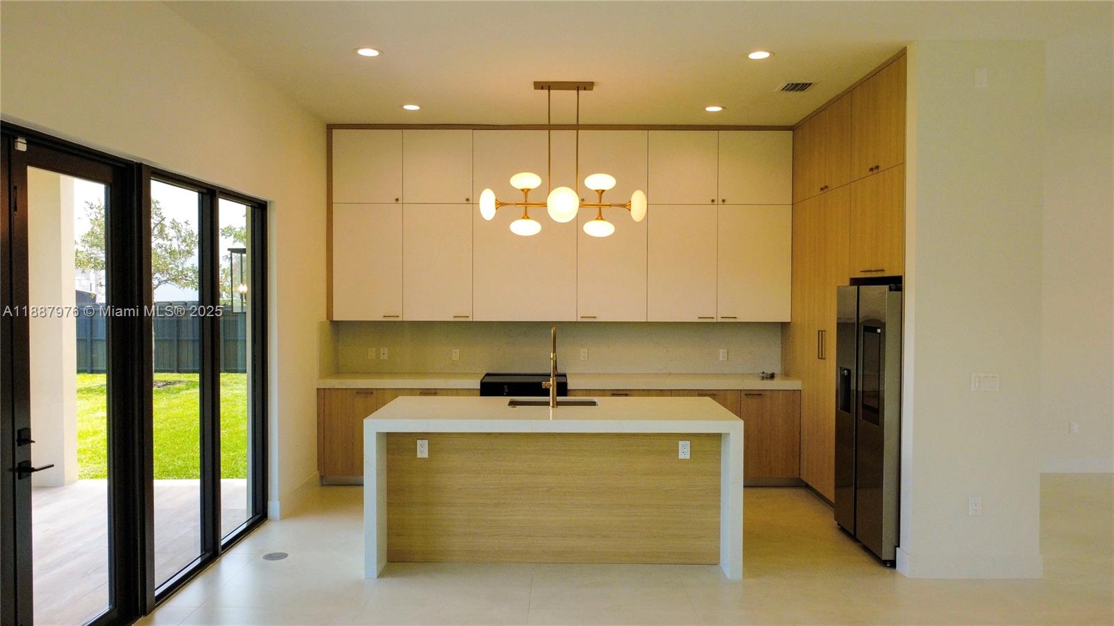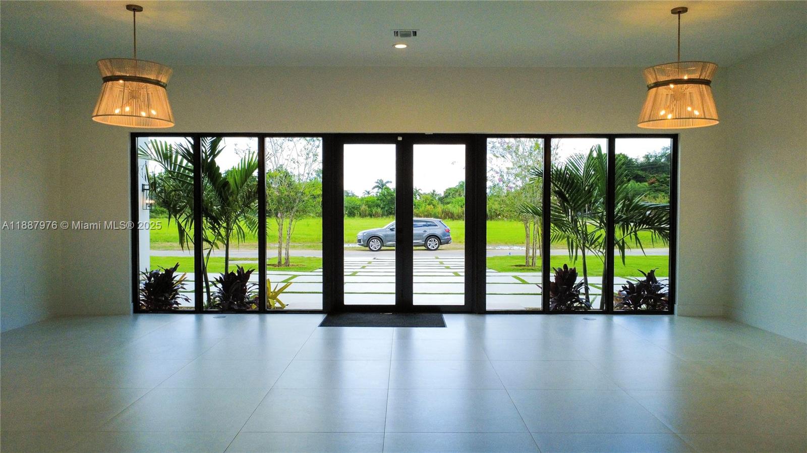 Modern CBS luxury new Construction home with flat TPO roof, hurricane-impact door/ windows, and in-law quarters. Spacious Lot with 17,025 sq ft modern sealed polished driveway with turf, double car garage, landscaped yard, sprinkler, and front /rear terrace/ porch. Inside, high 11' ceiling, porcelain flooring throughout the property, panel wood interior doors, recessed lighting, two tankless water heaters, two a/c units, and designed lamps. Chef's kitchen with modern wood cabinets to the ceiling, quartz counters with a waterfall island, stainless steel ceramic cooktop slide-in range, drawer microwave, hood, dishwasher, and energy-efficient smart refrigerator. Bathrooms with wood cabinets and quartz countertops. Main suite with a large walk-in closet. A/C laundry with washer/dryer.