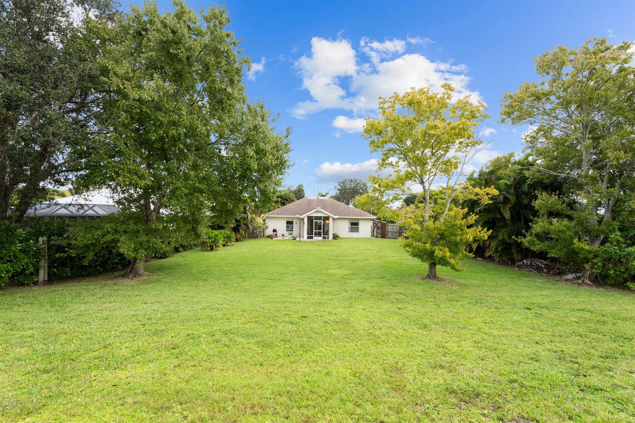 Looking for privacy and a larger lot? This 3-bedroom, 2-bath canal home offers an open floor plan with hardwood floors & an updated kitchen featuring granite counters. Spacious primary bedroom includes double walk in closets, the split floor plan allows for extra privacy from the other 2 bedrooms. A screened patio opens to an oversized yard with access to the C-23 canal, perfect for fishing or kayaking. Recent updates include a 2019 roof and newer water heater. NO HOA- bring your toys & enjoy flexibility and peace of mind. Located off Becker Rd with and close to Tradition's shopping &, dining new . New hospital located down the street plus easy access to I-95 and the Turnpike for easy commuting. Just 25 minutes to the beach, this home combines comfort, lifestyle, and accessibility.