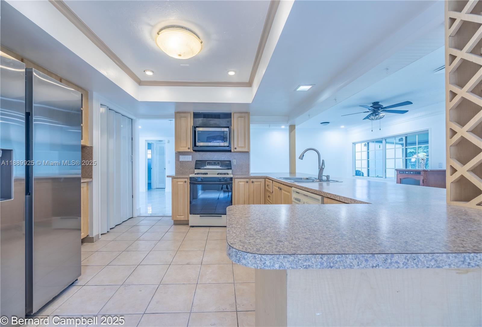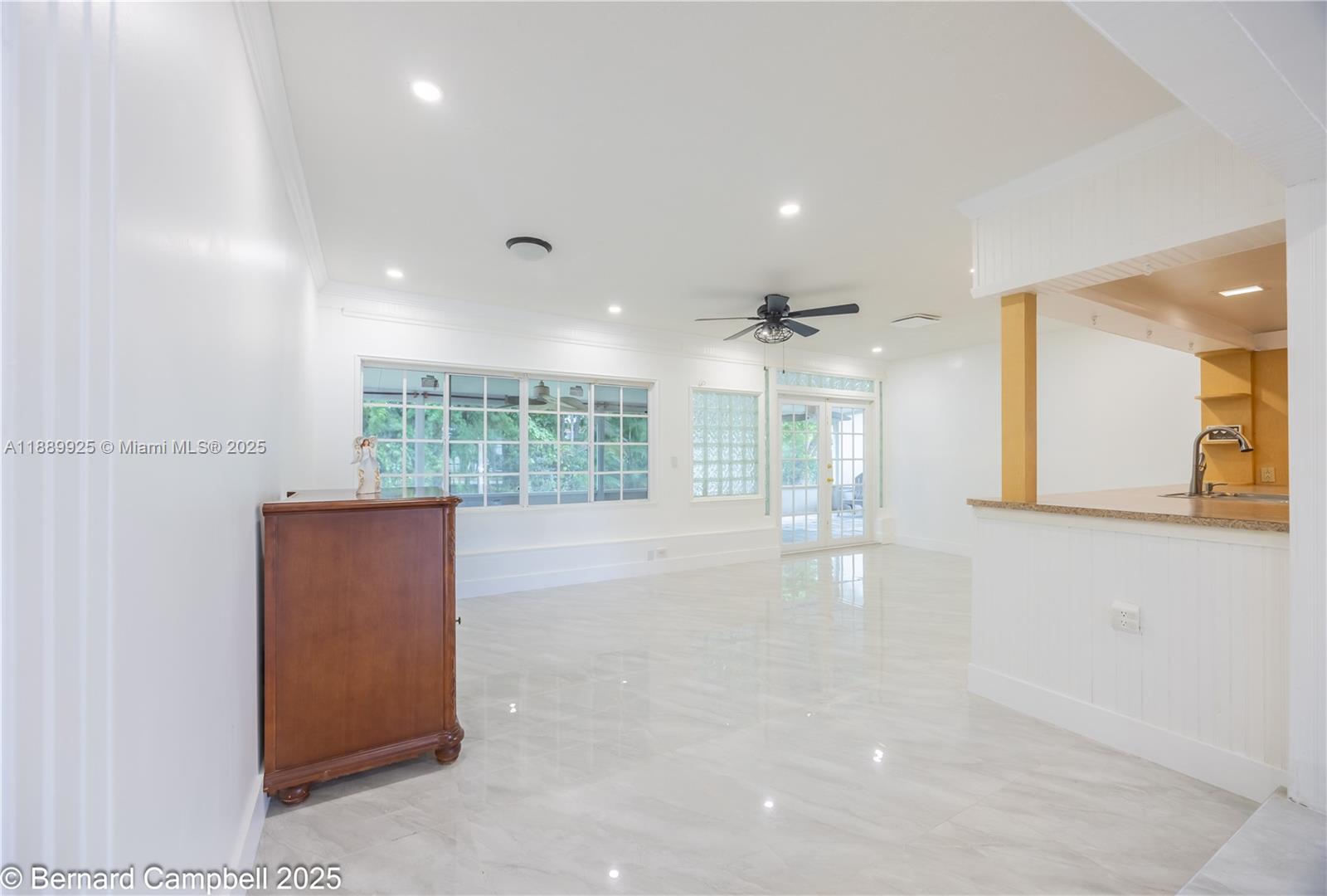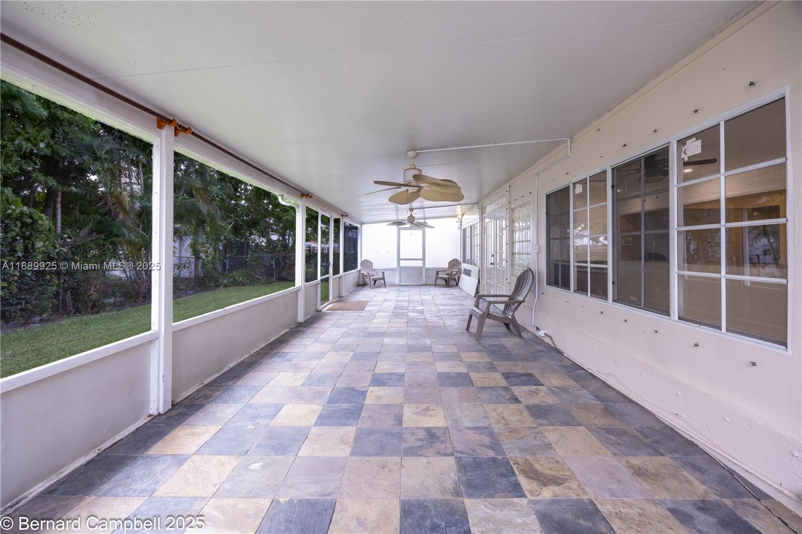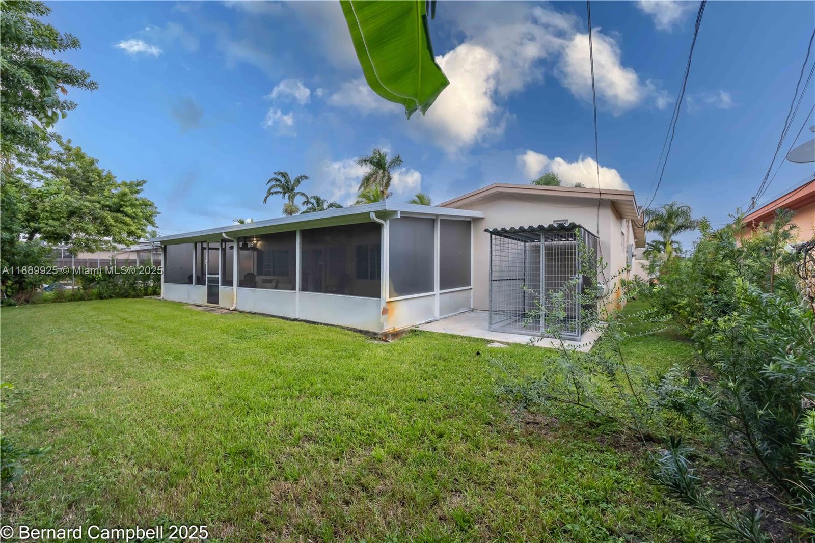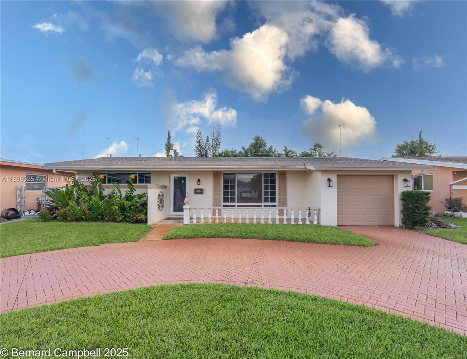 This well-maintained 2-beds/2-baths home also includes a versatile third room, perfect as an additional bedroom, office, or den. Featuring a spacious split floor plan, the home boasts elegant porcelain tile throughout the main areas & warm wood flooring in the bedrooms. Nestled on a quiet, peaceful street, this property offers partial hurricane-impact windows & door for added security & peace of mind. A one-car garage includes a washer & dryer for your convenience. Recent updates include a newer roof, A/C, & electrical panel. Spacious screan in patio at the rear section of the home ideal for entertaing. Enjoy a lush backyard with beautiful fruit trees—ideal for relaxing or entertaining. Conveniently located close to major highways, shopping centers, & daily necessities. No age restrictions