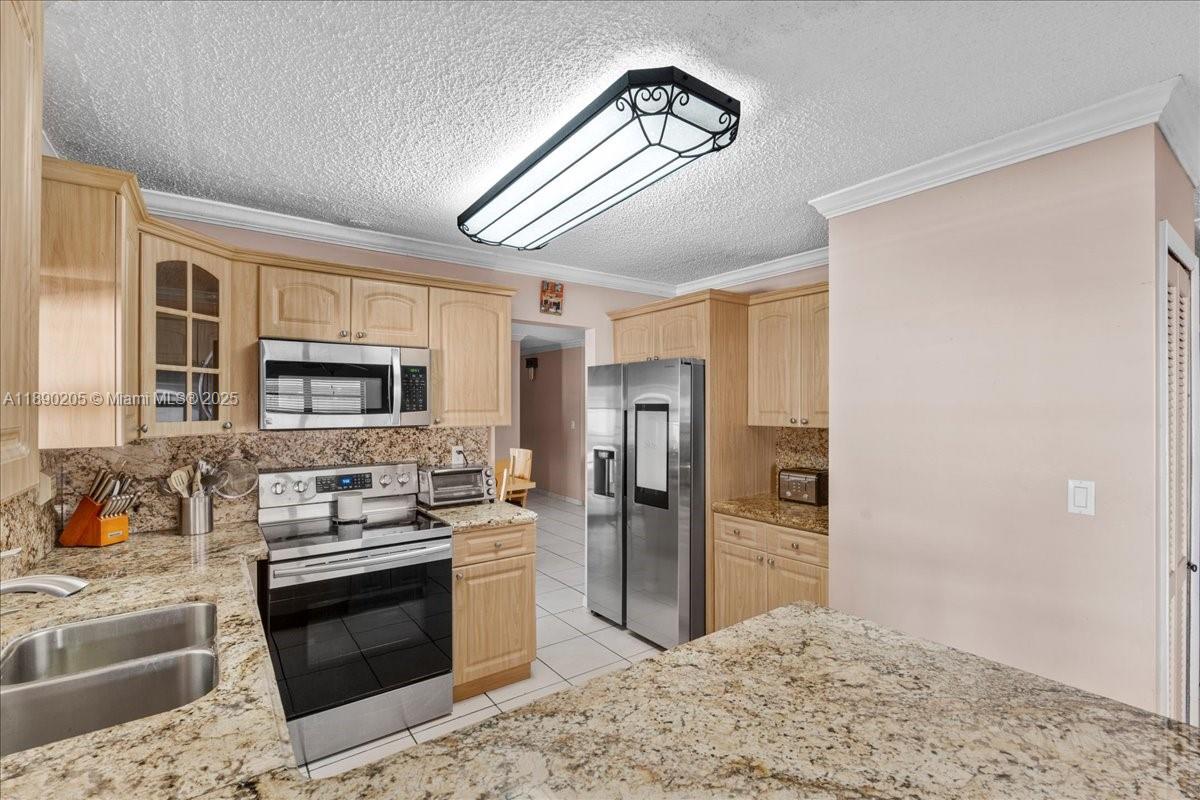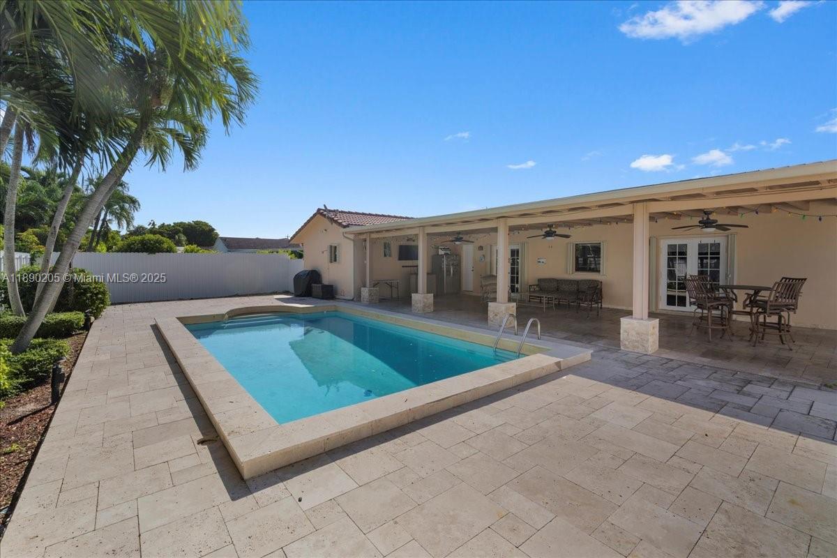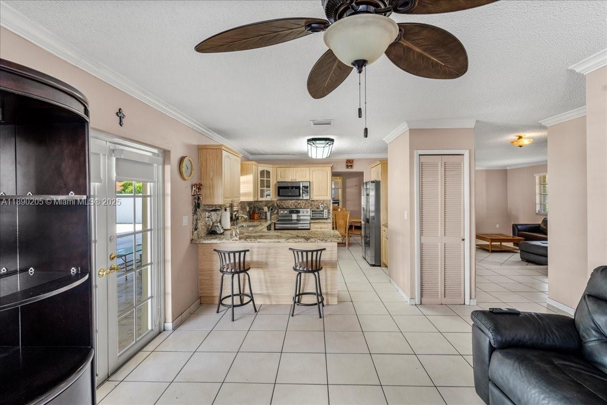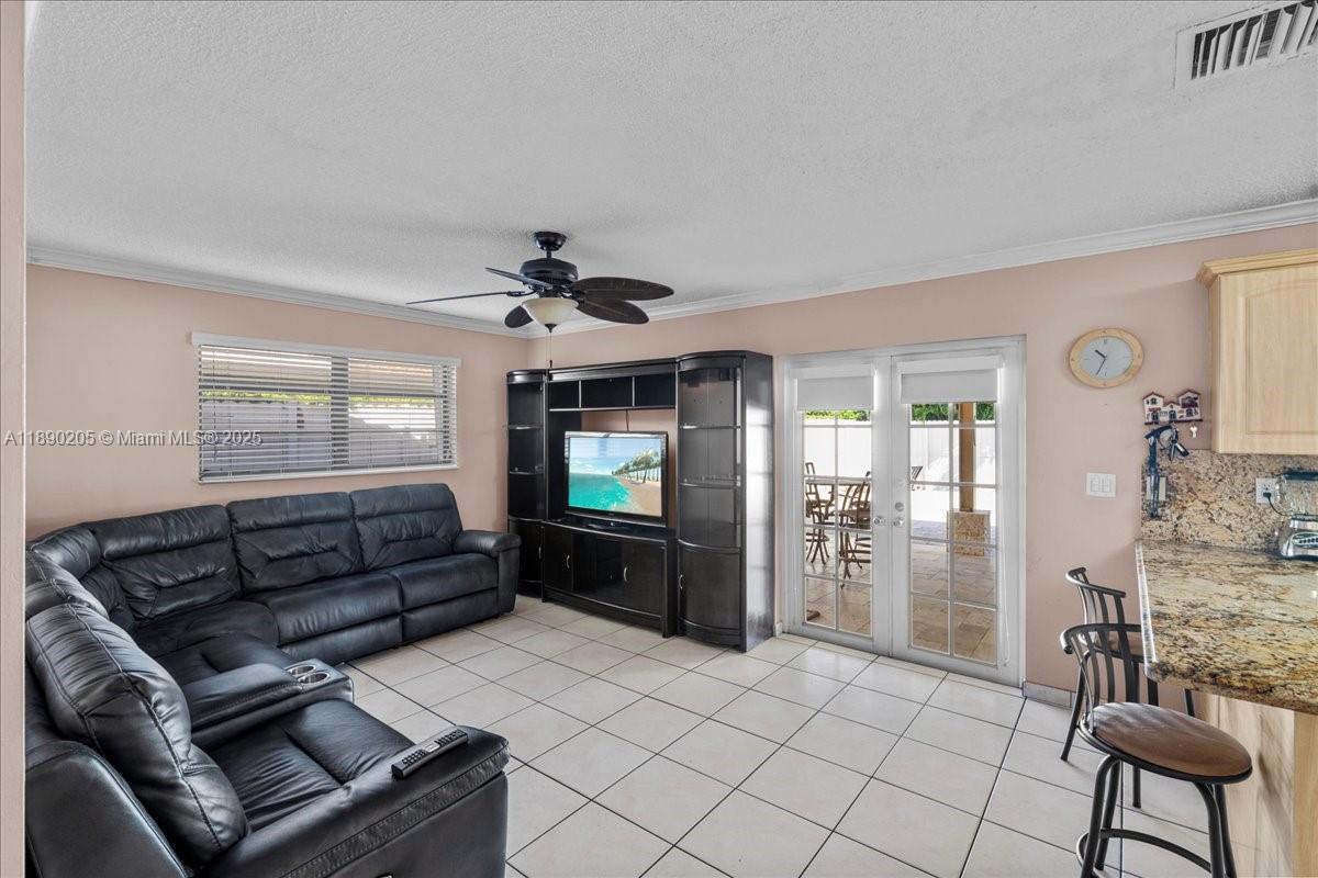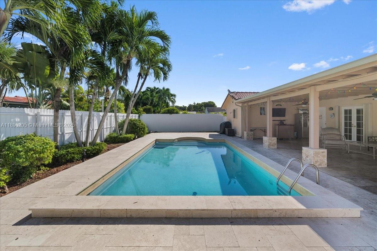 Beautiful 4BR home with 2 fully remodeled baths, 1 car garage that has been converted to more living space, utility and storage rooms. Large circular driveway. Enter this home through a double door entry. Large living area featuring a sunken living room and a formal dining room. Spacious kitchen features granite counters and overlooks a large family room, breakfast counter, crown molding throughout the home. The home features a stacked bedroom floorplan and ceramic tile throughout. Tankless water heater, roof replaced 2015. Enjoy a large deep pool and spacious covered patio—perfect for entertaining. Move-in ready home combining comfort and Florida outdoor living! Great school district. Close to shopping, main highways and place of worship. Don't miss out and priced to sell.