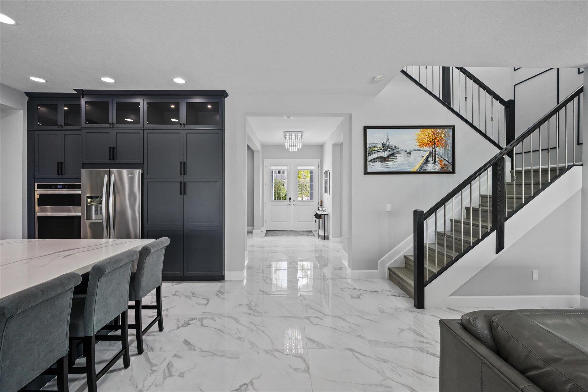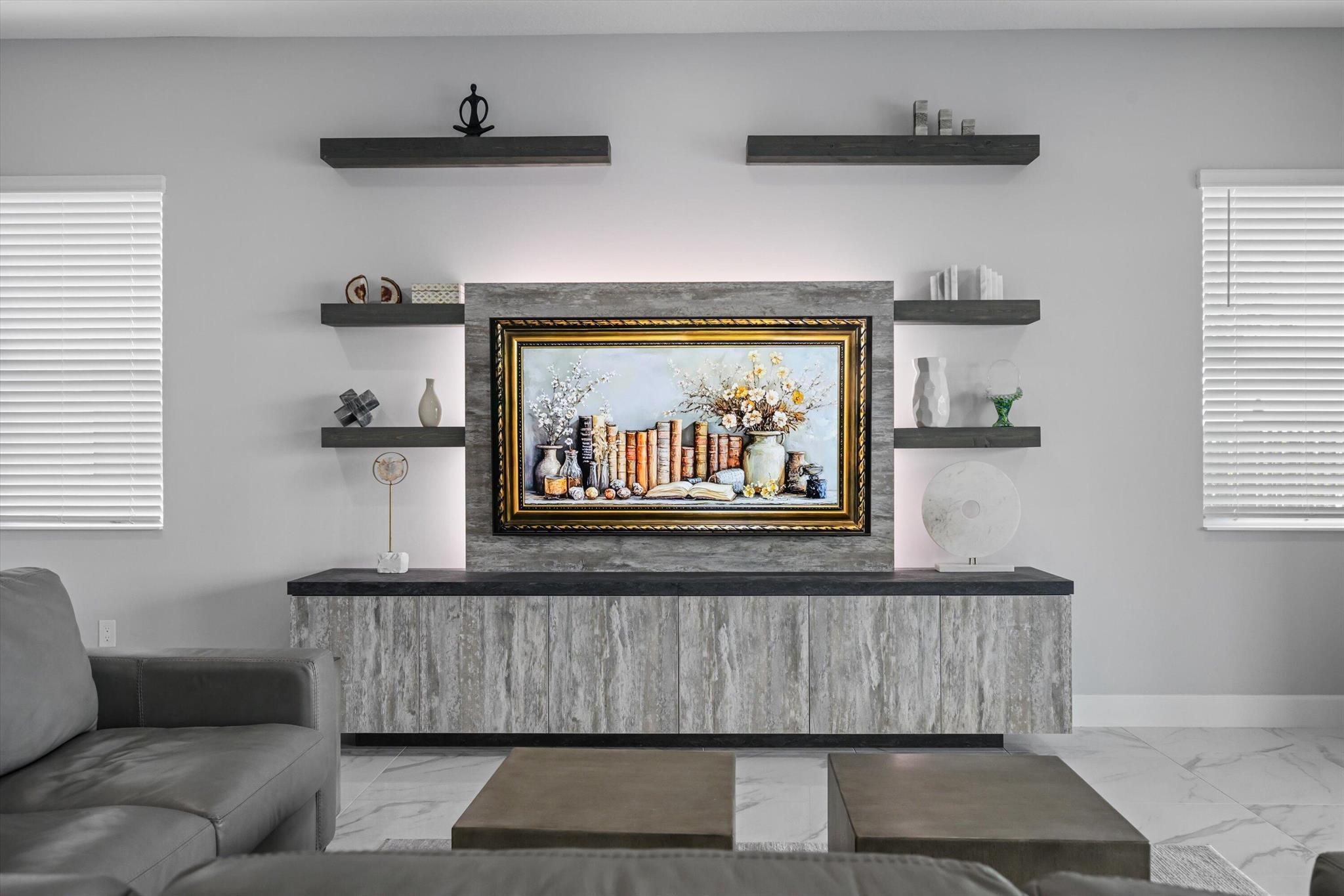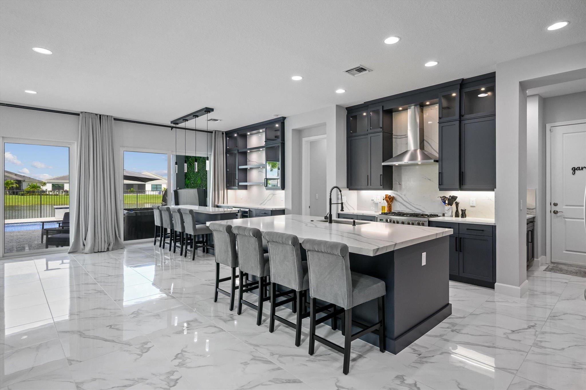 MAJOR PRICE REDUCTION! Experience luxury living in this rare, fully furnished Tanager model located in the highly sought-after Orchards of Westlake. This expansive 6-bedroom, 4.5-bath, 4-car garage waterfront residence offers over 5,300 total sq. ft. and shows like a designer model--move-in ready and complete with curated furnishings, artwork, and decor.The gourmet kitchen impresses with a massive island, quartz backsplash, stacked cabinetry, under-cabinet lighting, and premium stainless-steel appliances, including a gas range with hood and three ovens. Spacious living areas include a formal dining room with raindrop chandelier, two dedicated offices, a custom bar with double wine fridge, a coffee station, an upstairs loft, game room, and fitness room.