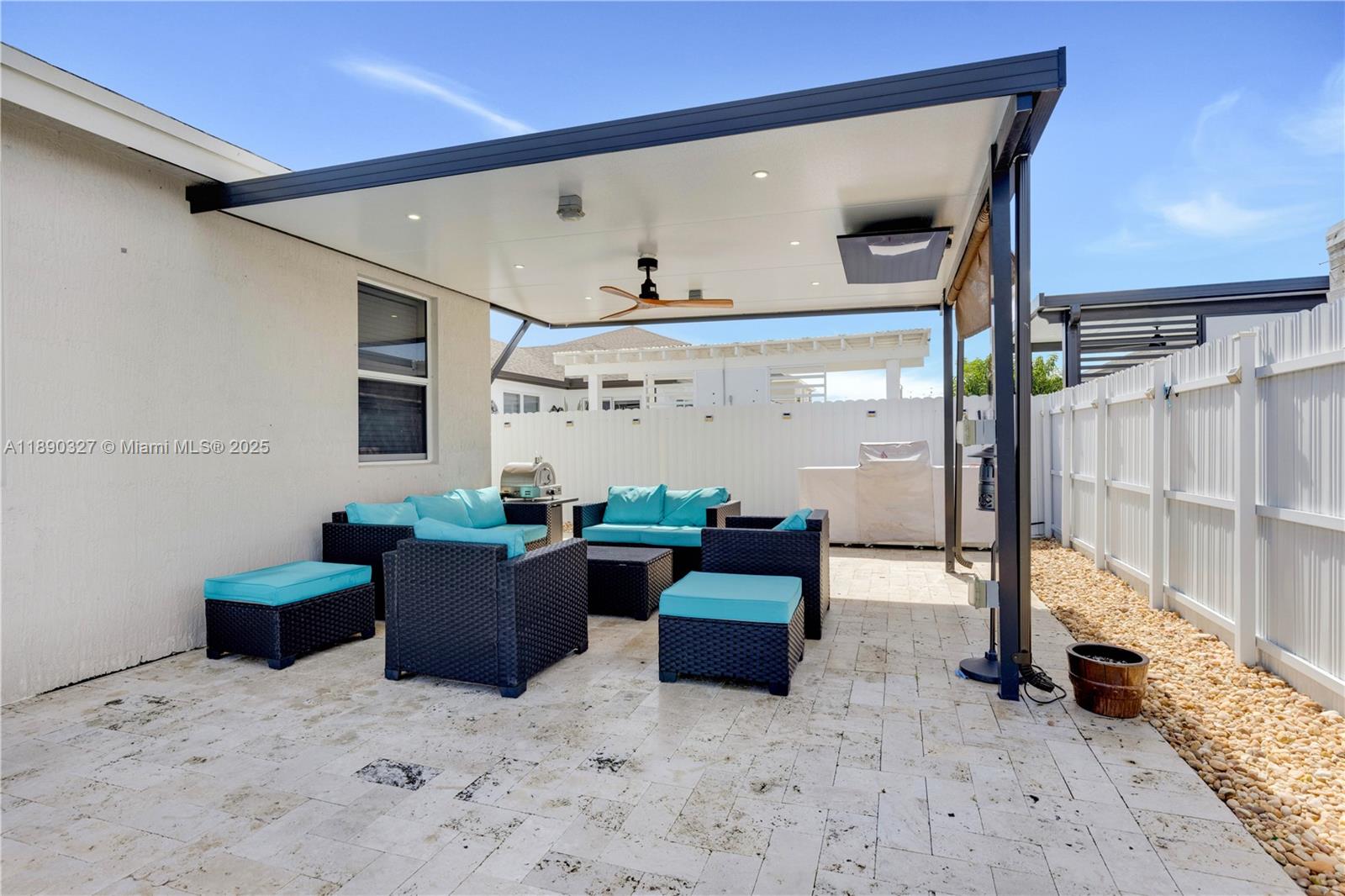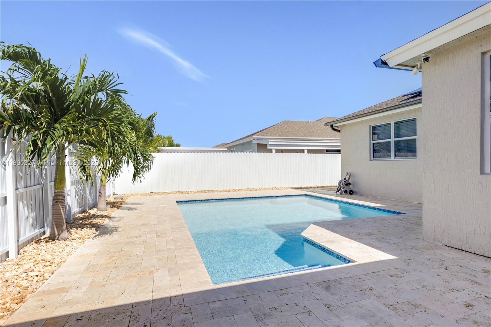 Modern 4-Bed, 2-Bath Smart Home with Pool, Solar Panels & No HOA! This beautifully upgraded residence features ceramic floors, light gray luxury vinyl in bedrooms, brand-new modern lighting, and a stylish kitchen with functional extractor. TVs are pre-wired for seamless entertainment. Outdoors, enjoy a 3-year-old pool, travertine patio, pergola, and ambient lighting, perfect for social gatherings. Security cameras and new solar panels provide peace of mind and energy savings. Ideally located near top schools, shopping, dining, and major highways, this move-in-ready home blends comfort, technology, and modern style, ready to be enjoyed from day one! Easy to show!