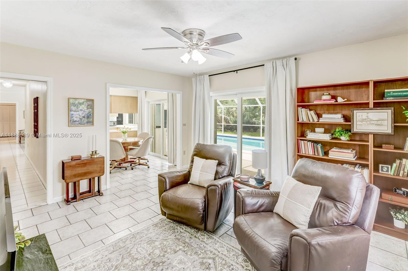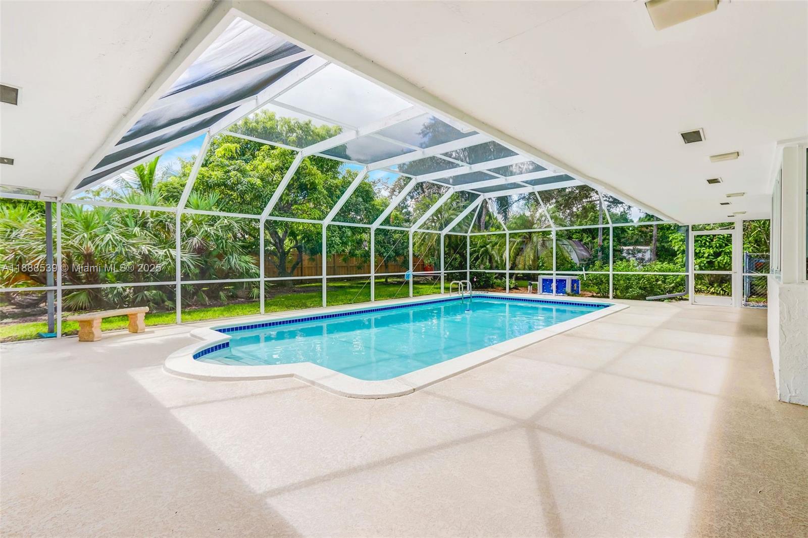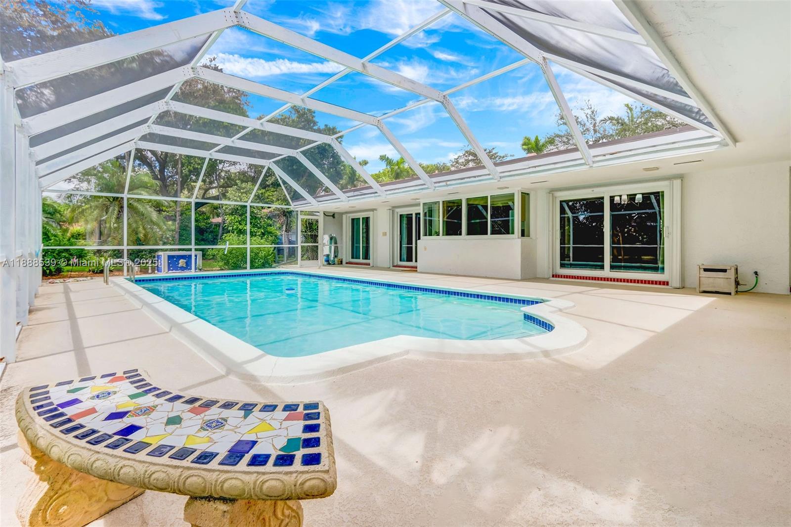 Incredible Falls area home is nicely situated on a quiet corner lot. Buyers will love this neighborhood away from the busier streets and off the beaten path. Impact windows throughout. Spanish tile roof and arched detailed entry into a courtyard give the house a hacienda feel. The foyer follows up with a softly rounded arched entry into the living room. The flowing layout and generously-sized bedrooms offer a comfortable lifestyle. Sunny eat-in kitchen overlooks the pool as well as the family room. The spacious primary bedroom offers patio access, walk-in closet, and cabana bath. Great outdoor space with covered patio, pool, and garden. A perfect opportunity to live in The Falls Area!
