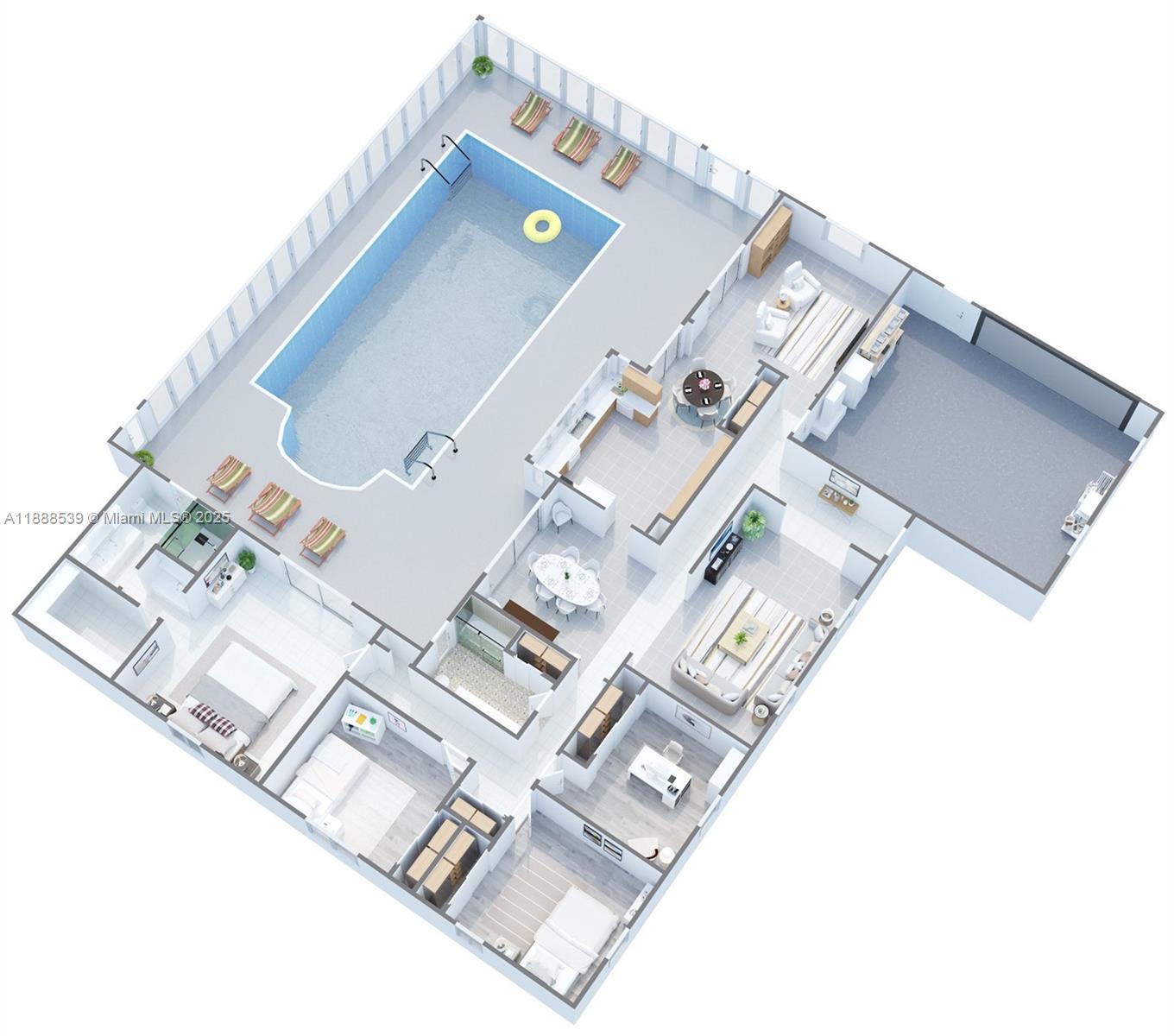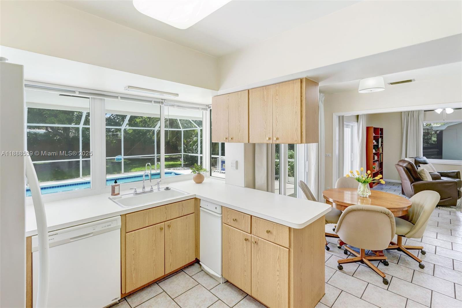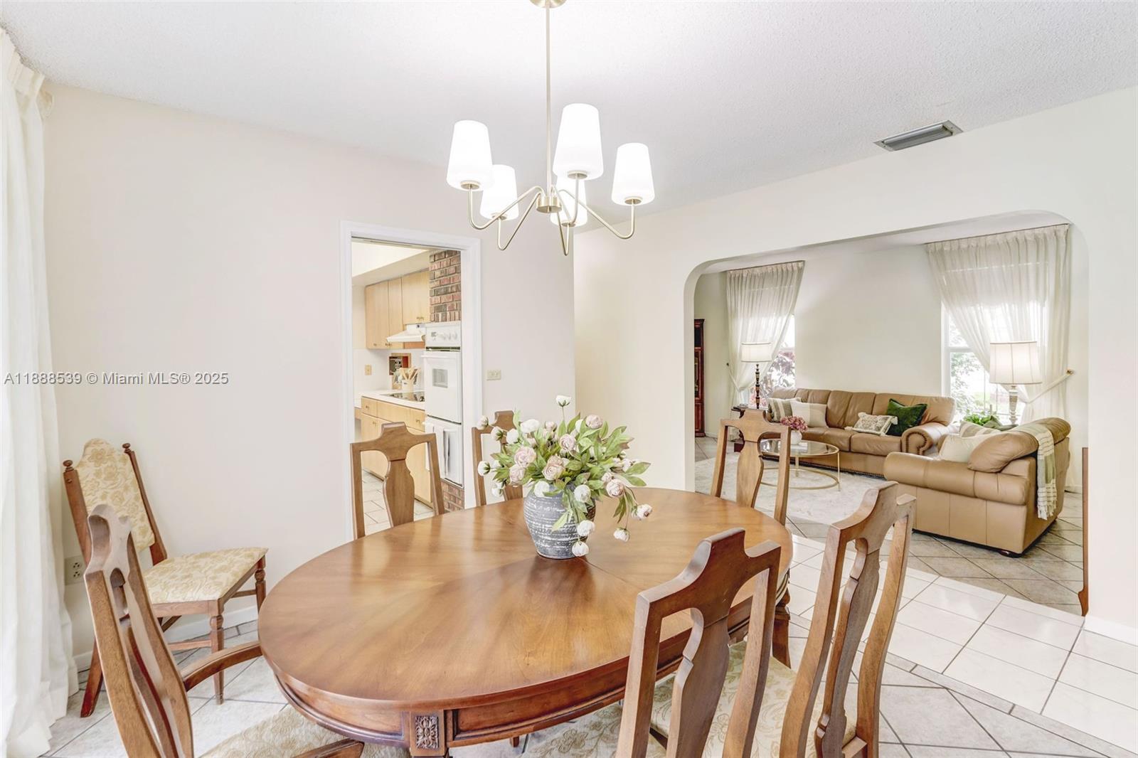 Incredible Falls area home is nicely situated on a quiet corner lot. Buyers will love this neighborhood away from the busier streets and off the beaten path. Impact windows throughout. Spanish tile roof and arched detailed entry into a courtyard give the house a hacienda feel. The foyer follows up with a softly rounded arched entry into the living room. The flowing layout and generously-sized bedrooms offer a comfortable lifestyle. Sunny eat-in kitchen overlooks the pool as well as the family room. The spacious primary bedroom offers patio access, walk-in closet, and cabana bath. Great outdoor space with covered patio, pool, and garden. A perfect opportunity to live in The Falls Area!