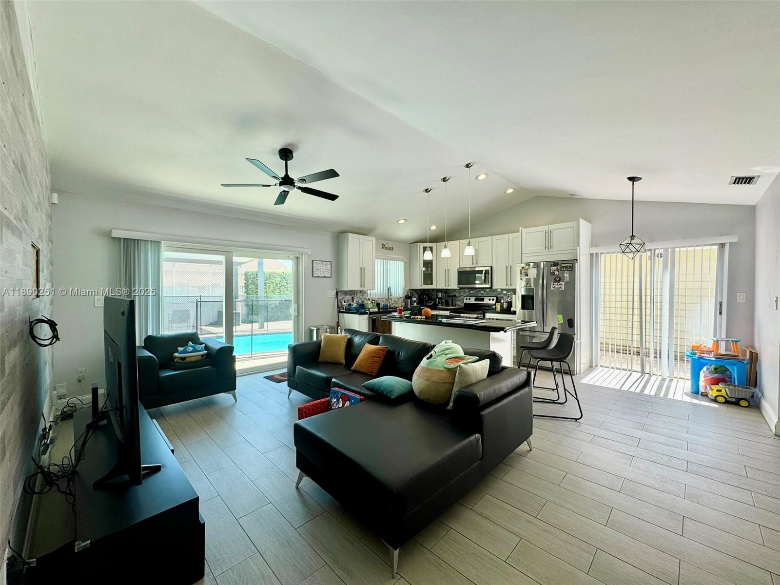 Beautiful upgraded home in the desirable Royal Glen community, heart of Kendall. Walking distance to shops, restaurants, and minutes from Miami Executive & International Airports, Miami Dade College, and hospitals. Features split bedroom plan with private primary suite, updated bath, and large walk-in closet. Upgrades: new roof (2020), new A/C, modern kitchen with granite, vinyl flooring, and updated pool area with pergola and fences. Two-car garage converted to extra living space (easily reverted). Spacious backyard with pool, great for entertaining. Low HOA $65/month. Owner-occupied — 24-hr notice required.