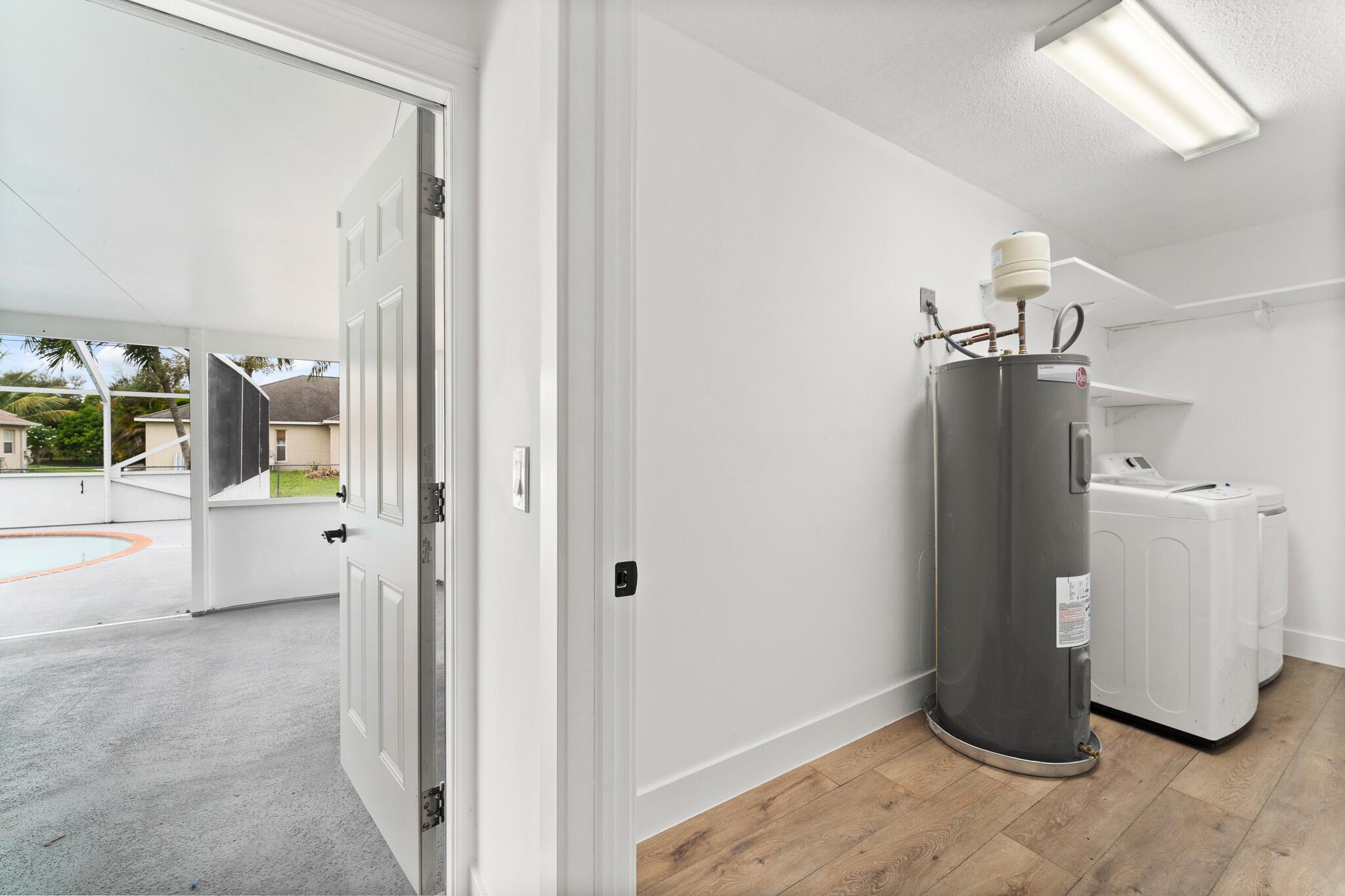 Beautifully remodeled 4BR/2BA home featuring a permitted, enclosed two-car garage converted into a spacious fourth bedroom. Upgrades include Hurricane Impact Windows, new floors, and fresh interior/exterior paint. Enjoy a large screened-in lanai and sparkling pool--perfect for Florida living. The open layout offers modern finishes throughout. Ideally located near shopping, Tradition, dining, and I-95. Move-in ready and full of comfort and convenience.