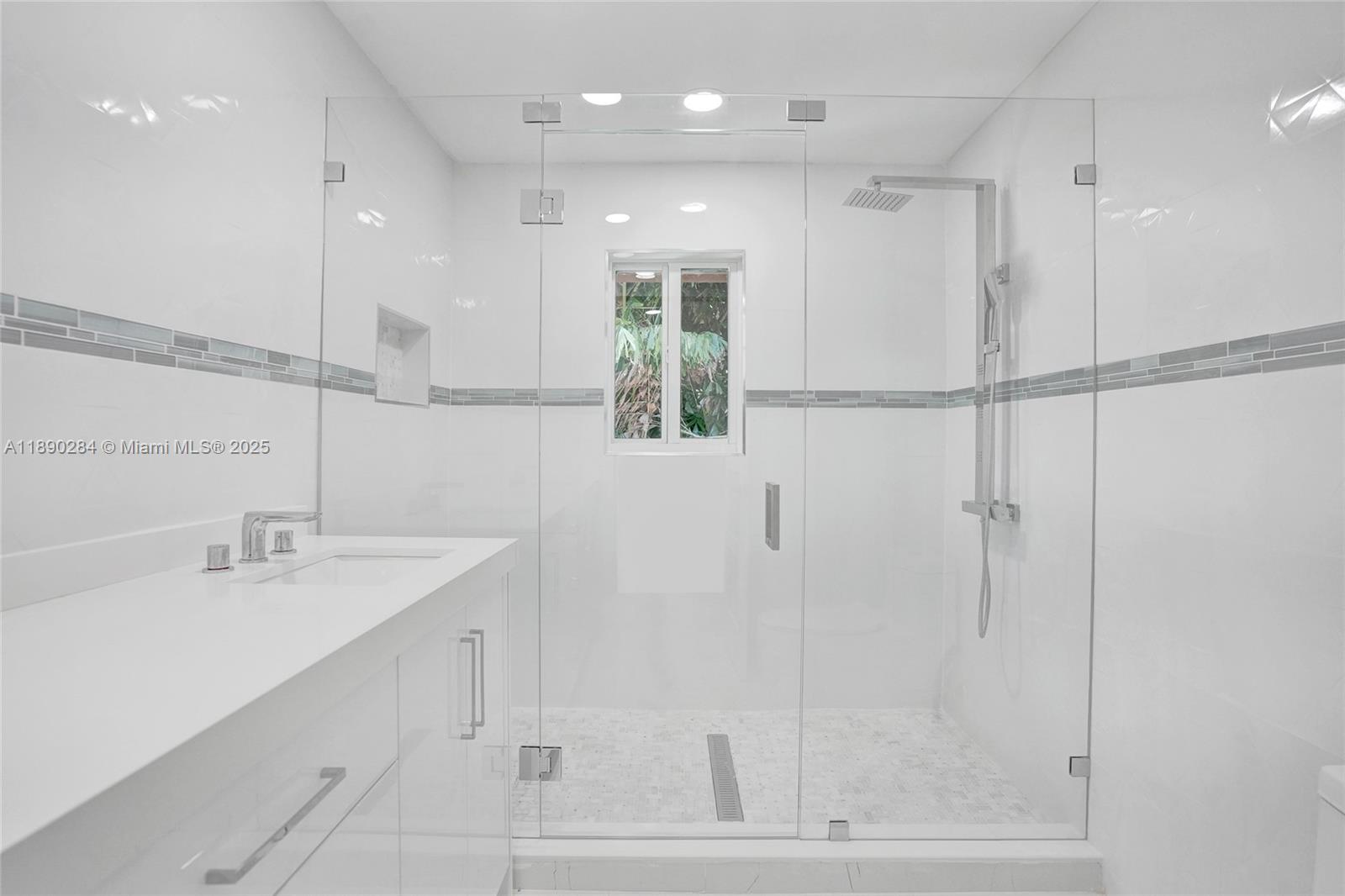 Fully remodeled home with luxury finishes. Modern kitchen with new LG appliances, built-in oven/microwave combo, cooktop, range hood, and quartz countertops. Open layout with porcelain floors, double-height ceilings, LED lighting, and modern stairs with metal, wood, and glass design. All bedrooms feature new closets; the master suite includes a walk-in closet and a jacuzzi bathroom. Renovated pool, new landscaping, paver driveway, new washer & dryer. Impact windows/doors. Plenty of parking space for multiple vehicles. Surrounded by lush vegetation in an exclusive neighborhood.