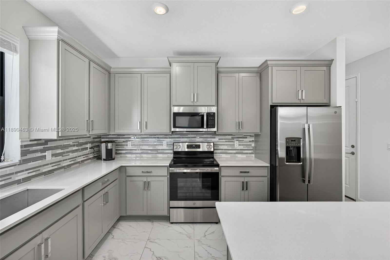 Stunning 4-Bedroom Home with Den, Loft & 3-Car Garage. Built in 2023 by Lennar, this beautifully designed property with complete HURRICANE IMPACT WINDOWS AND DOORS is located in a private, gated community with resort-style amenities and a low HOA. Step inside to discover a modern & sleek kitchen with quartz countertops, glass backsplash, stainless steel appliances, and abundant cabinet space. The open-concept layout flows seamlessly into the living and dining areas, enhanced by LED modern lighting and thoughtful finishes throughout. All bedrooms are generously sized with upgraded closets Community amenities include, pool, gym, clubhouse, tennis courts, children’s play area. Don’t miss this incredible opportunity to own a nearly new home with modern features and room to grow.