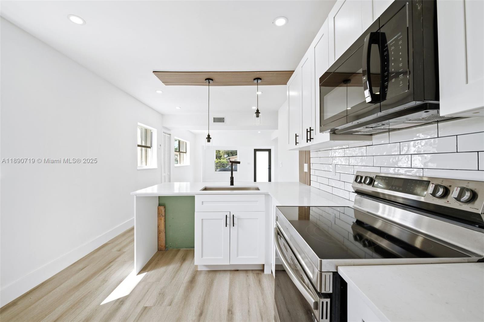 Amazing opportunity!!!. Newly remodeled and upgraded 3 bed/2 bath cozy home. New roof 2025, accordion shutters, impact glass front door, new kitchen cabinets with quartz countertops and SS appliances, just renovated primary bathroom, new vinyl floors, new central A/C, fenced property, modern look interior doors, impressive patio with new grass and huge deck for family and friends gatherings, separate storage on backyard.