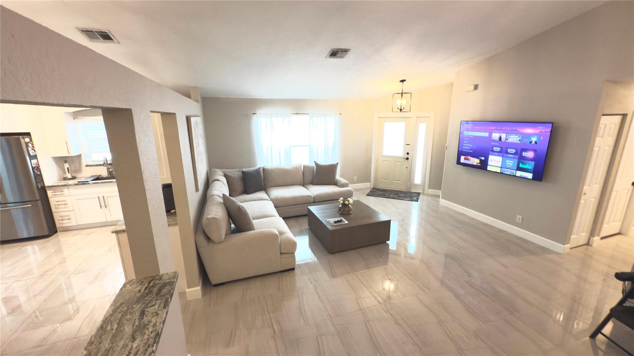 Beautifully remodeled home 3/2/1 in the desirable gated community of Meadow Lakes at Boca Raton, Florida. This stunning one story single family home completed remodeled features ceramic tile through out, modern kitchen with stainless steel appliances finished with nice counter top, cabinetry, with styled lights. Bathrooms with shower glass door. A/C and water heather are new. Washer and dryer updated. Backyard paved with travertine and new white fence facing trees, good space for BBQ perfect area for entertaining. All windows with shutters (most are hurricane proof). Turn key property. Good schools. Neighborhood located in a prime location, near turnpike, banks, supermarket, restaurants, casino. Nice community pool, tennis courts, security patrol, management on site. Call now to visit.