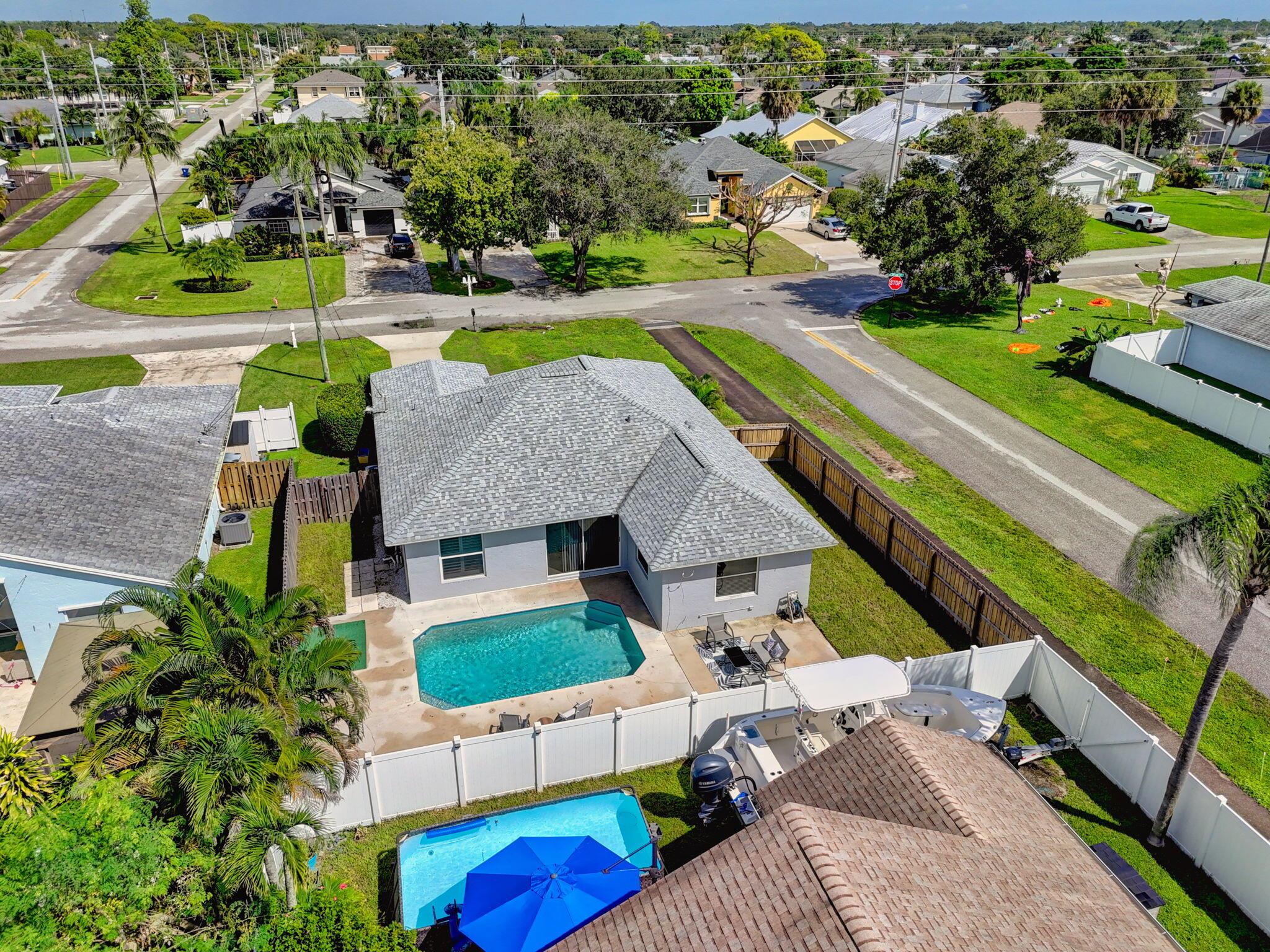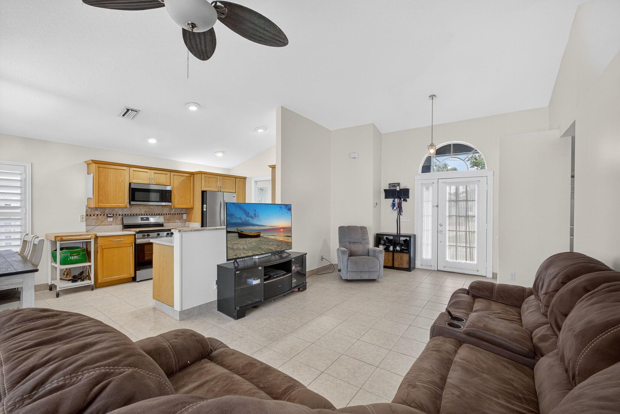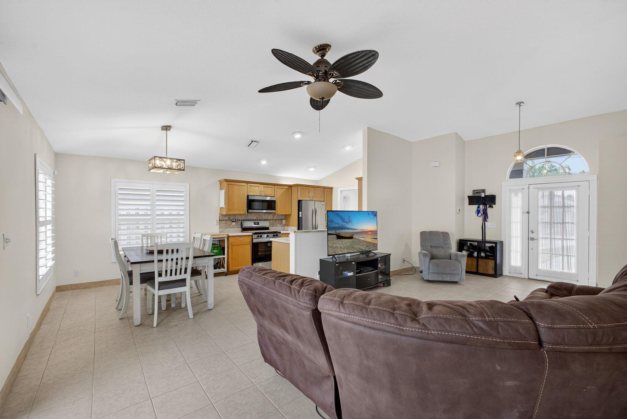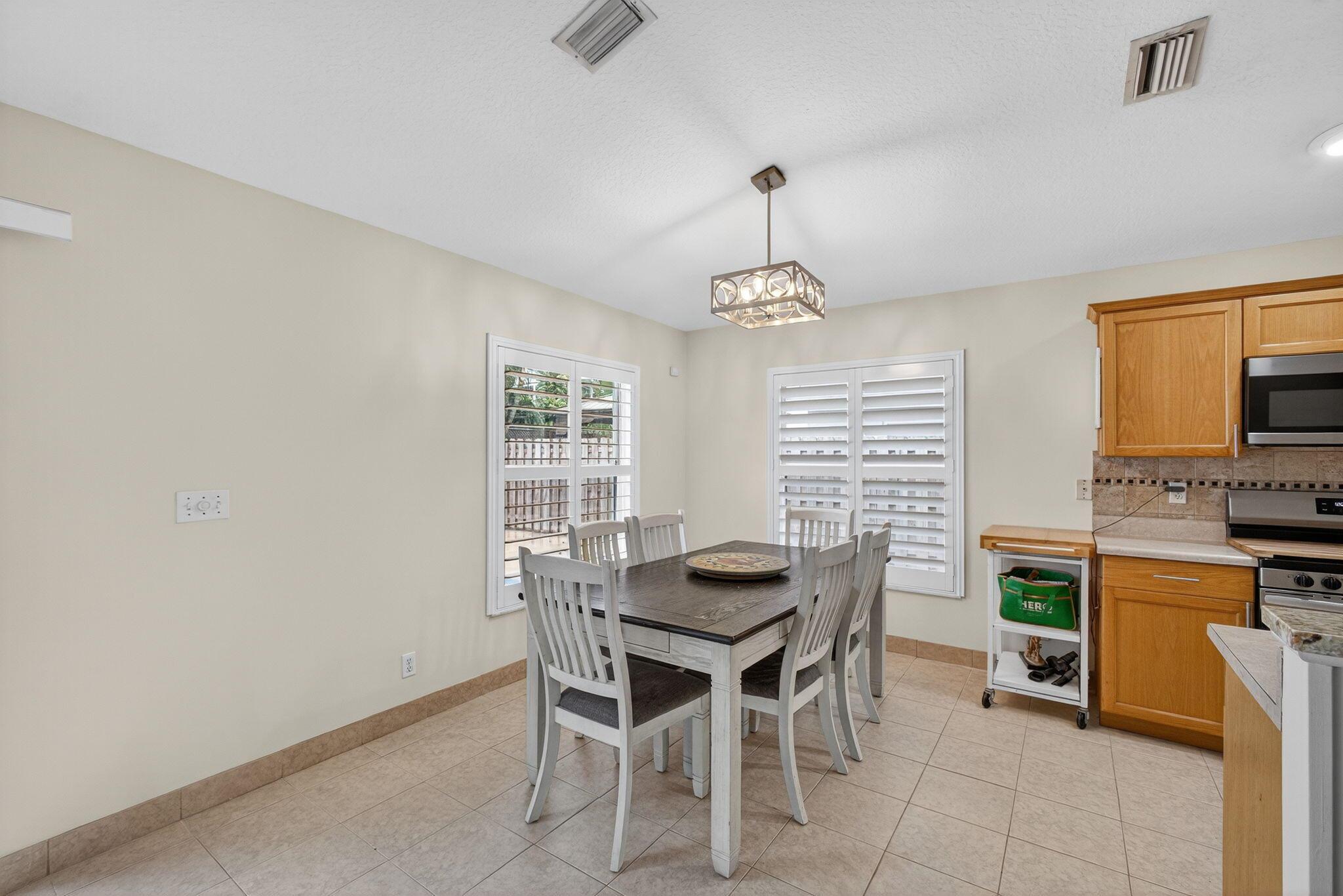Welcome to this beautifully maintained pool home in the heart of Jupiter's sought-after North Palm Beach Heights!This 3-bedroom, 2-bath single-story home blends comfort, convenience, and classic Florida living. Step through the covered entry and into a bright, open floor plan where natural light flows across tile flooring throughout. The spacious living and dining areas feature vaulted ceilings and plantation shutters, creating an inviting atmosphere ideal for relaxing or entertaining.The kitchen sits at the center of it all -- equipped with stainless steel appliances, plenty of cabinet storage, and a long breakfast bar overlooking the living area, perfect for gathering with friends and family. The primary suite offers a quiet retreat