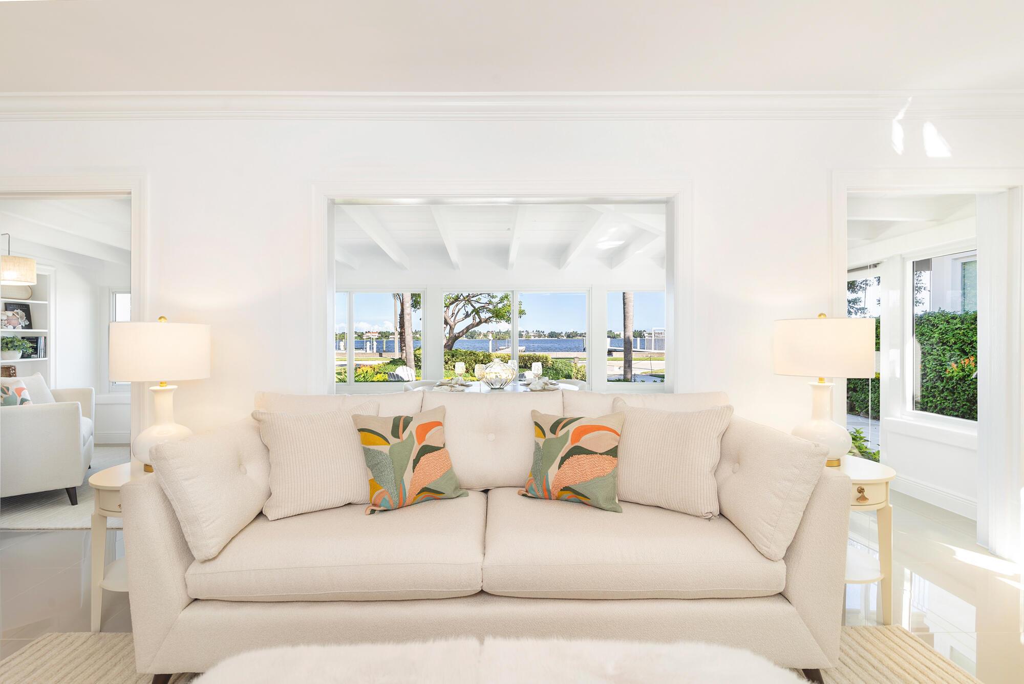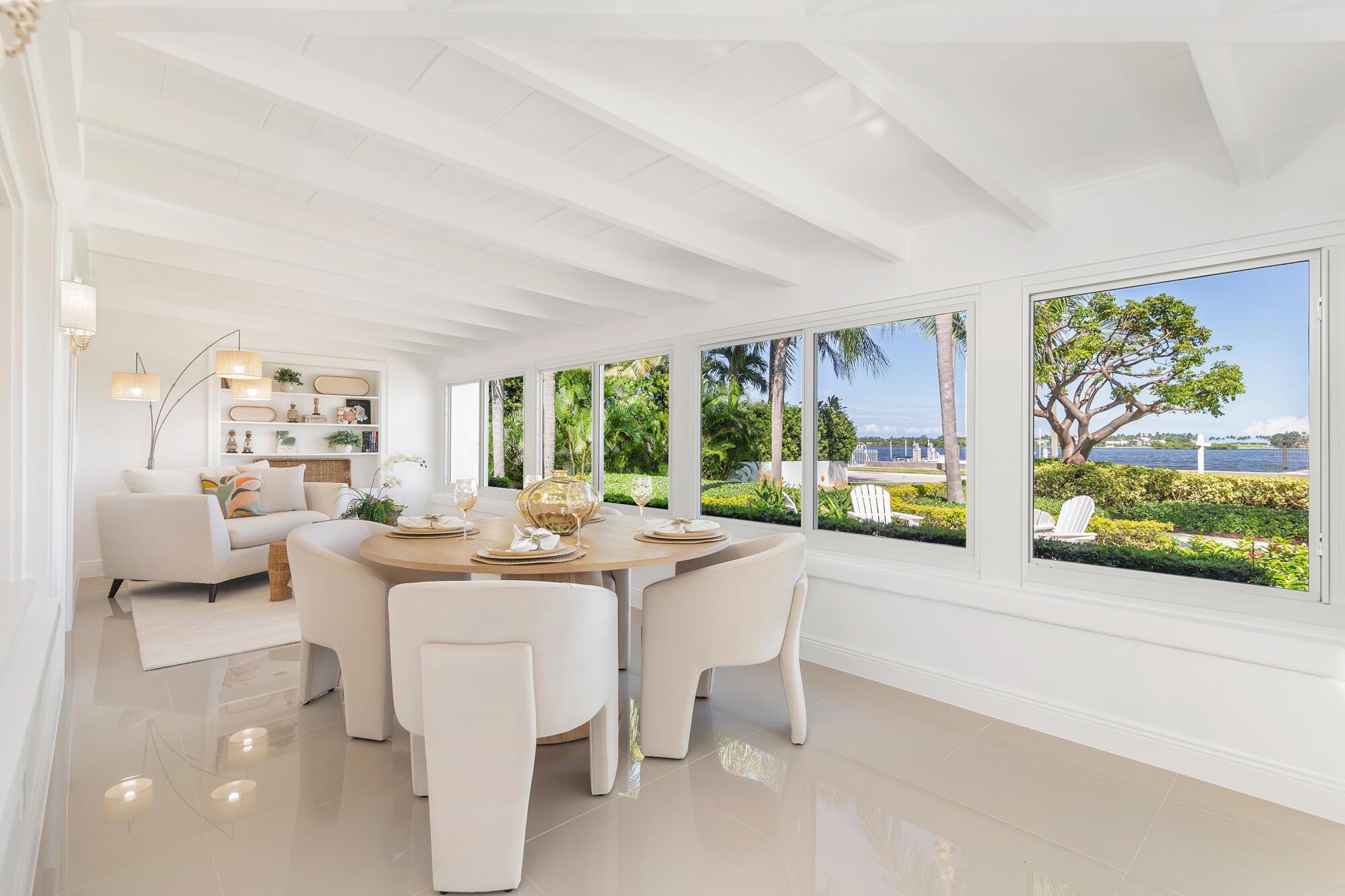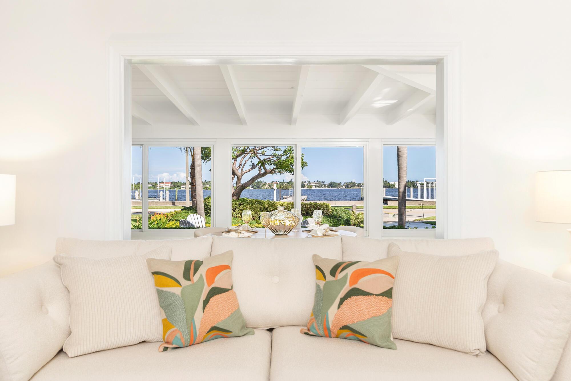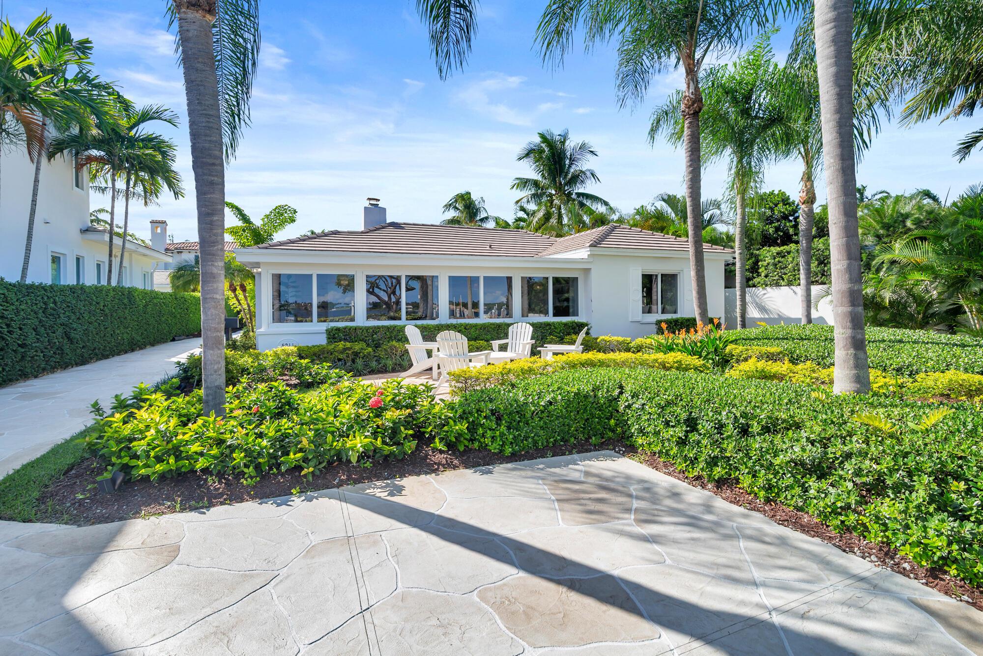 OWNER FINANCING AVAILABLE. Step into waterfront living at its finest with this pristine Flagler Drive waterfront home. Enjoy breathtaking Intracoastal views and over 62 feet of waterfront on this approx 9800 sqft lot. A 100-foot private dock makes this a boater's dream--just bring your boat and start cruising. Inside the main house you'll find 3 bedrooms, 2.5 baths, plus a bonus 1/1 separate guest accommodations, all wrapped in full hurricane impact windows and doors. Clean architectural lines are balanced with custom millwork and molding, giving the home a timeless elegance. The newer roof, new HVAC, new appliances and thoughtful updates make this residence completely turnkey. Surrounded by lush, tropical landscaping, and a resort style heated pool and covered loggia, this