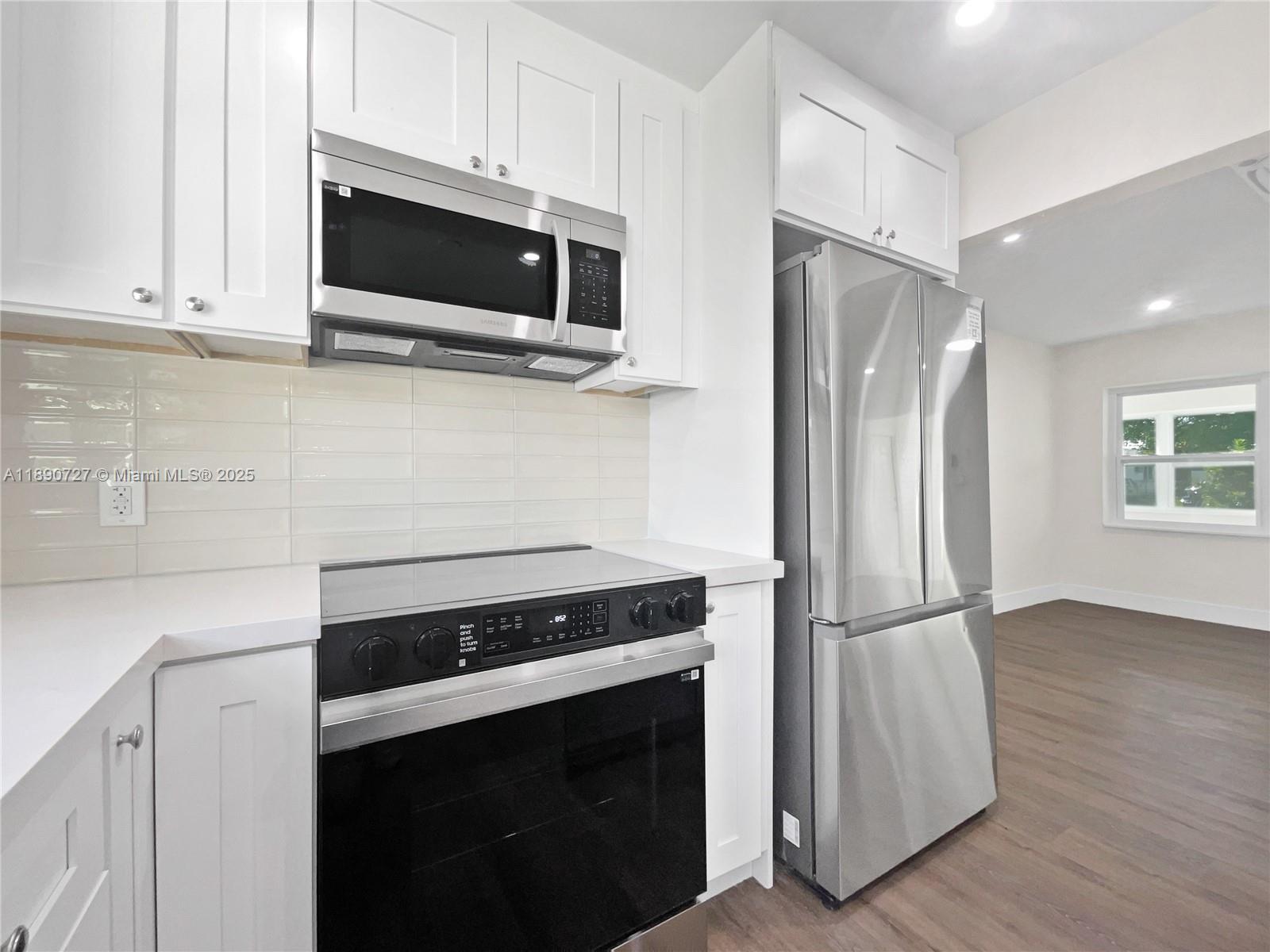 Welcome to this beautifully renovated home, boasting all new impact windows! Step into the main living area featuring a neutral color paint scheme that complements the new flooring throughout. The remodeled kitchen is a chef's dream with stone counter tops, a stylish accent backsplash, all stainless steel appliances and a convenient kitchen island. The fresh interior and exterior paint add to the home's modern appeal. The property also features a new mini-split system for year-round comfort. Outside, enjoy the privacy of a fenced-in backyard and patio. With new appliances included, this home is ready for you to make it your own. Don't miss out on this stunning property!