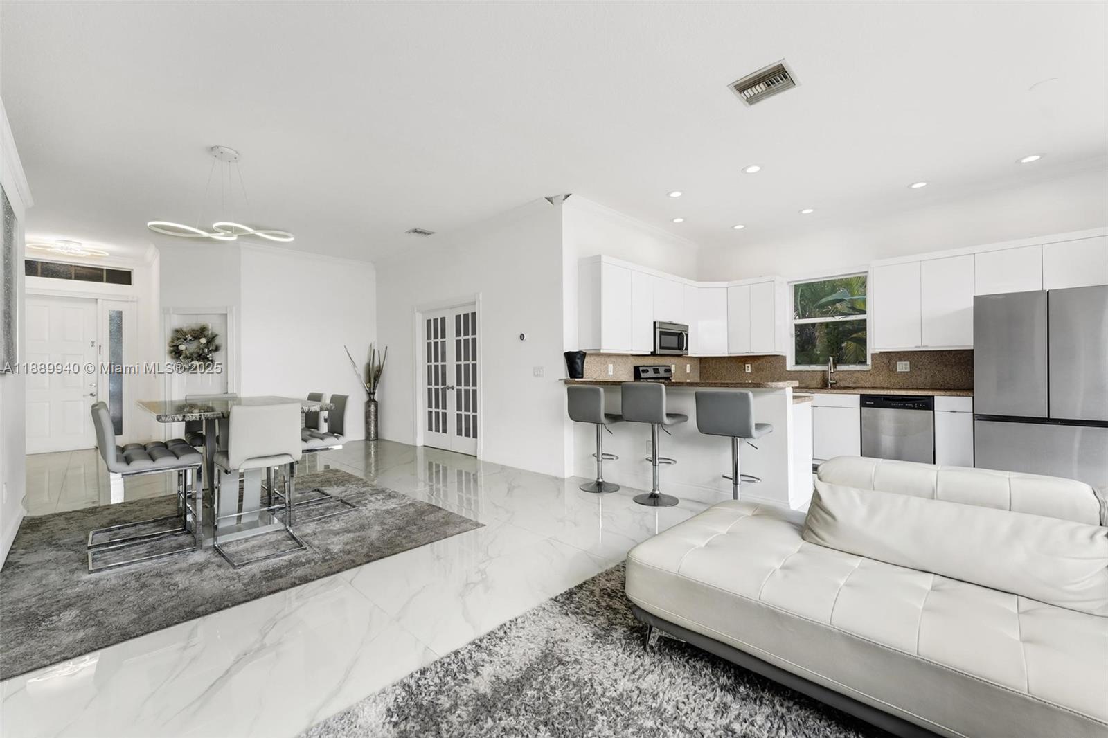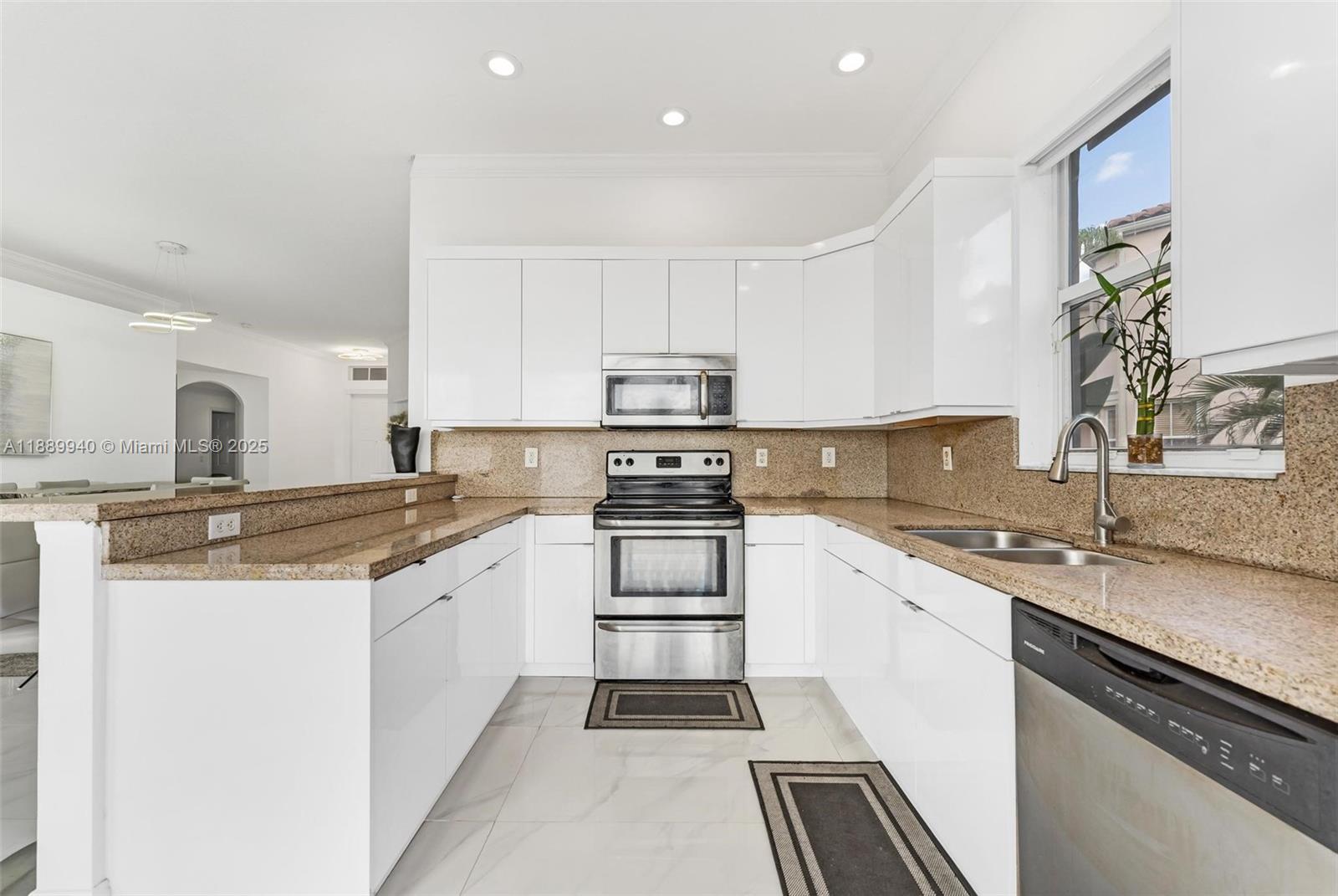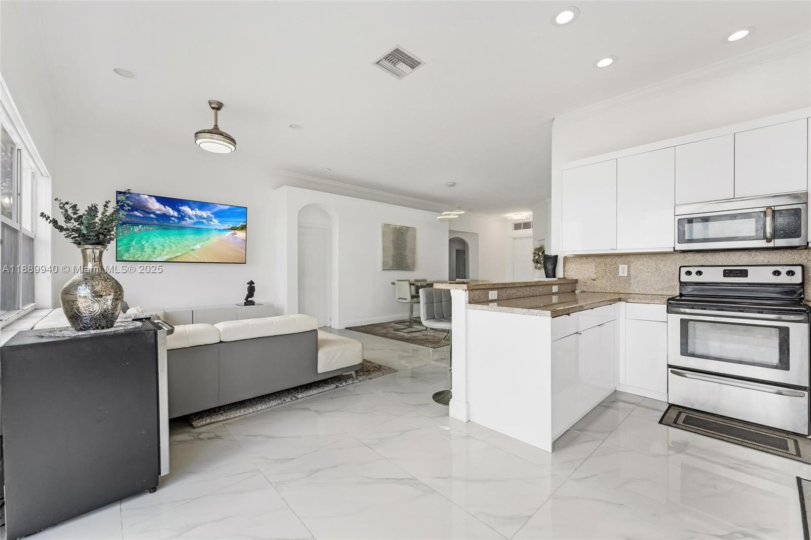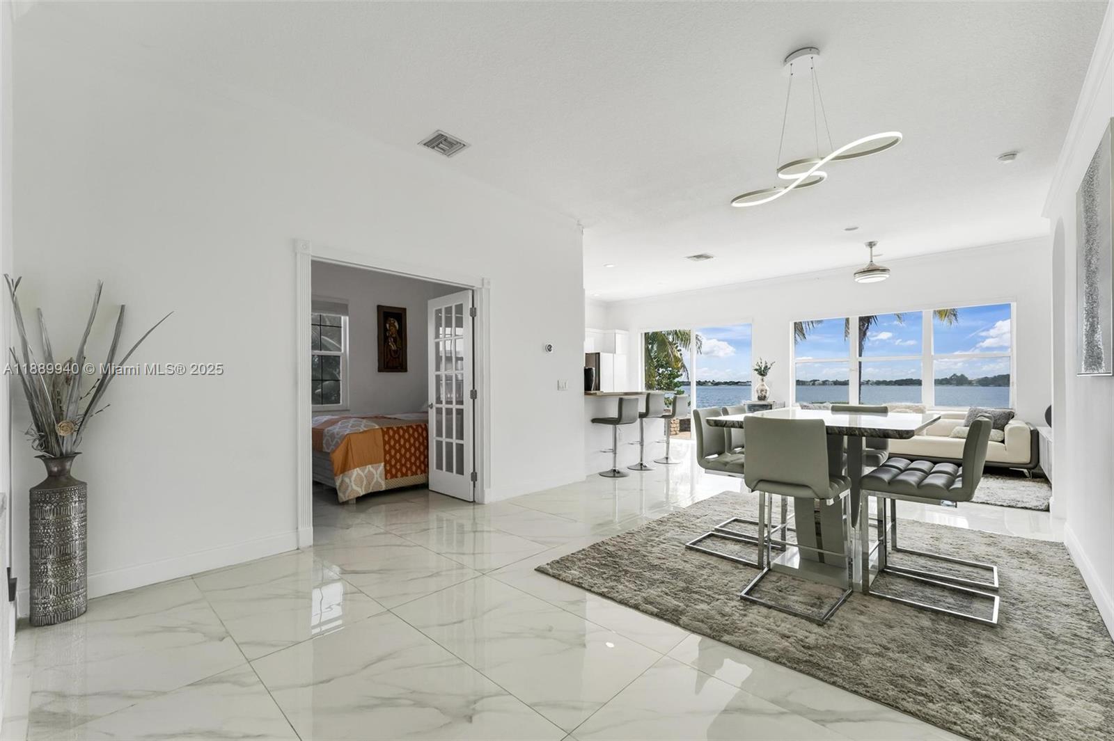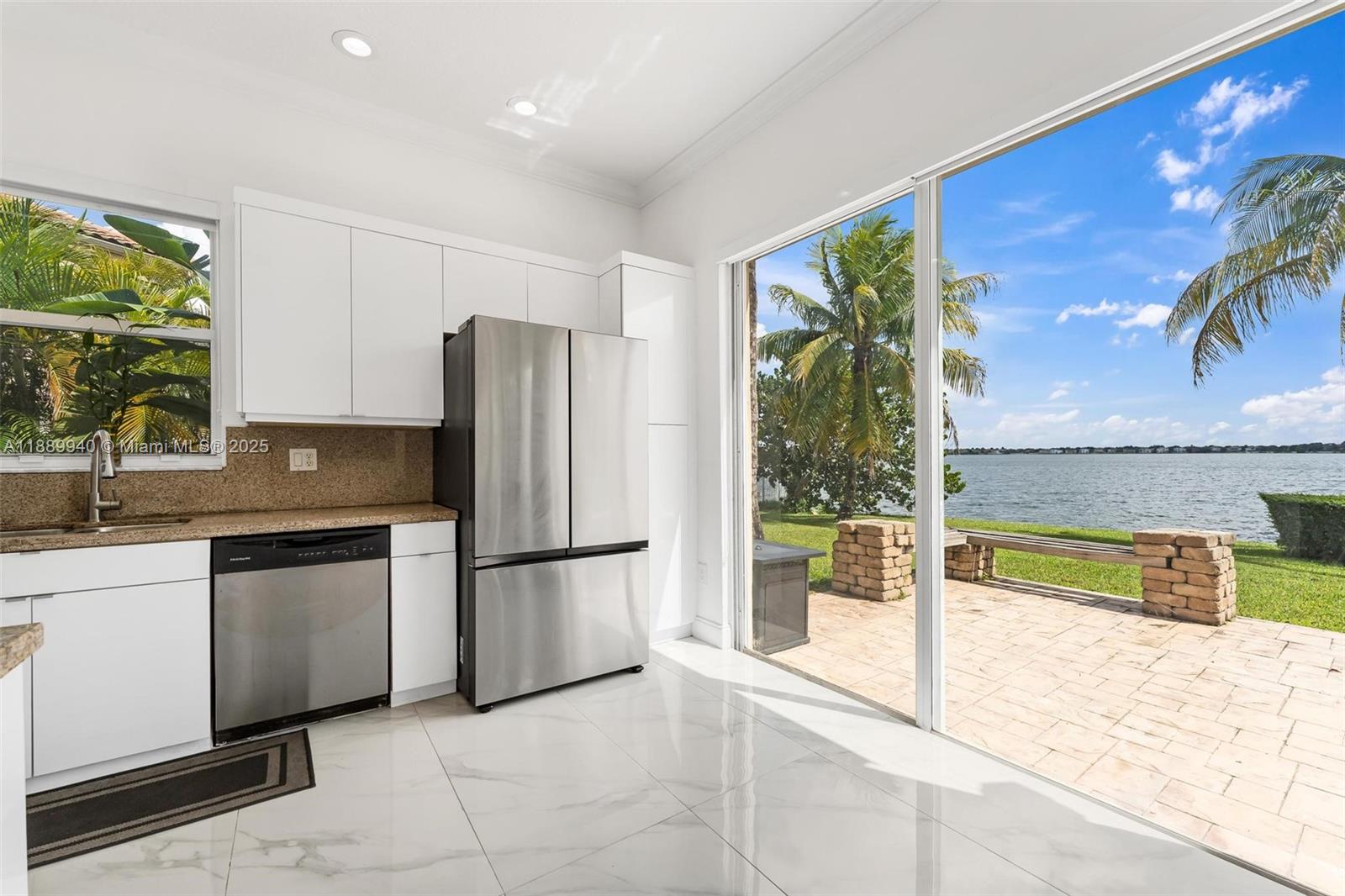 Welcome to this stunning, 3-bed, 2-bath residence on an oversized lot in the prestigious, gated community of Riviera Isles. Tucked away on a cul-de-sac, this home offers privacy, elegance, and panoramic lake views. Includes a den perfect for a home office, guest suite or turn into a 4th bedroom. The spacious, fully fenced backyard with 133 linear feet of lake frontage offers ample room for a pool, outdoor kitchen, or even a cabana house.