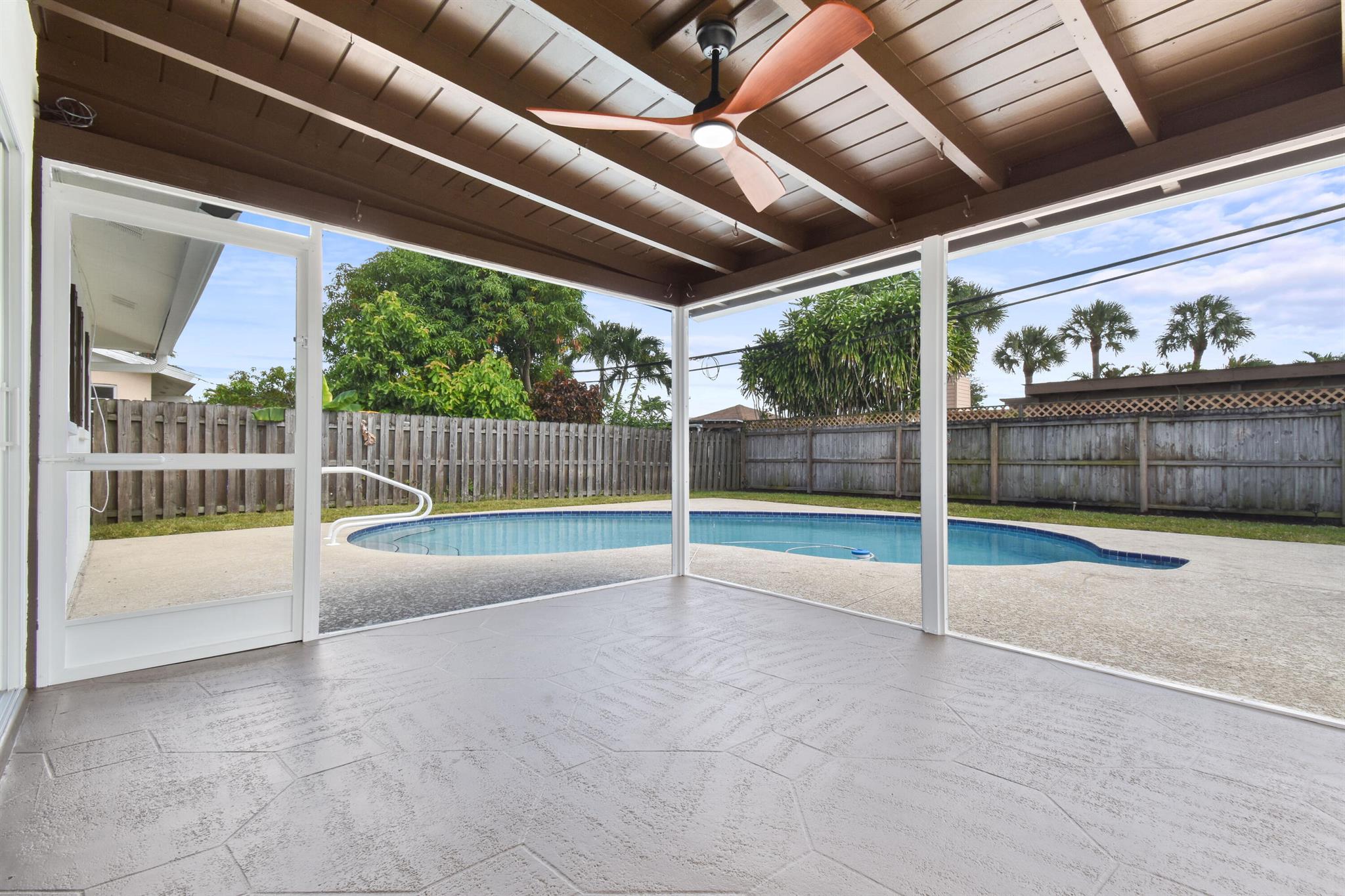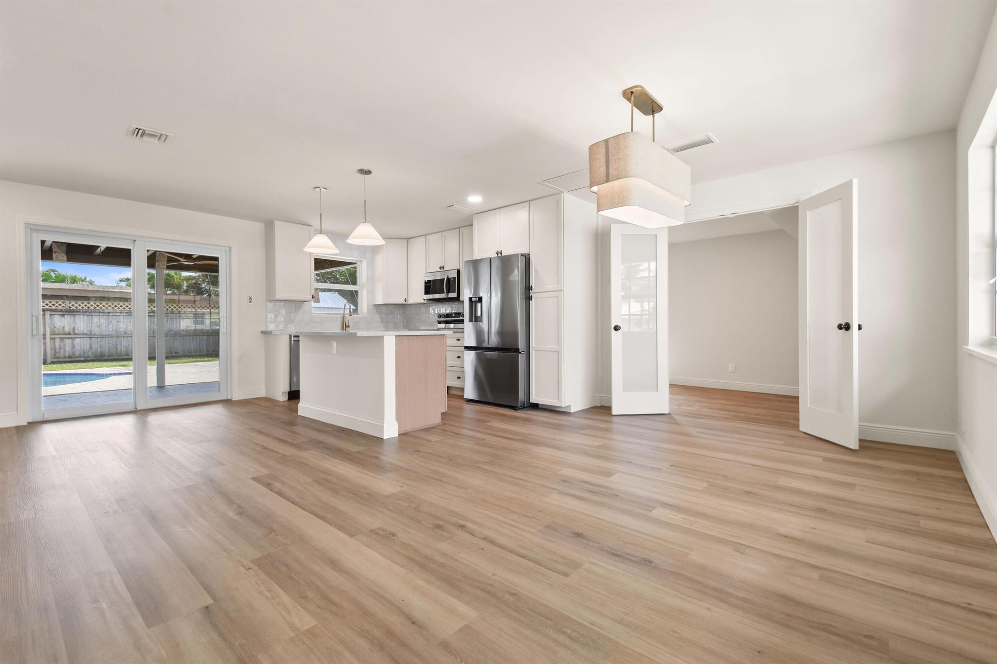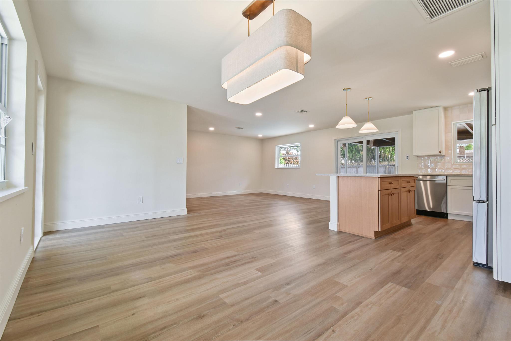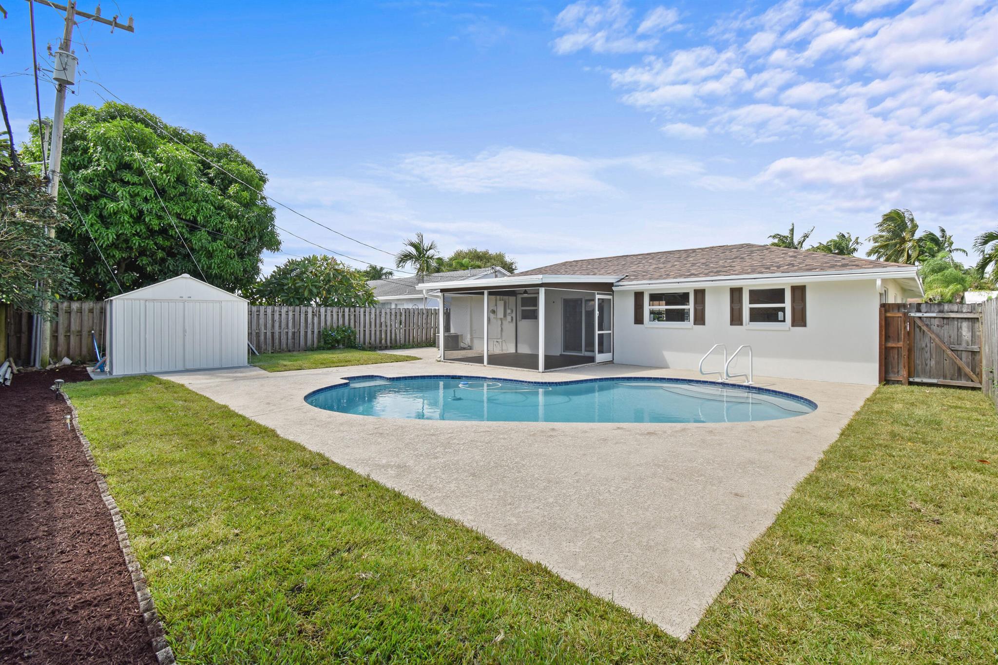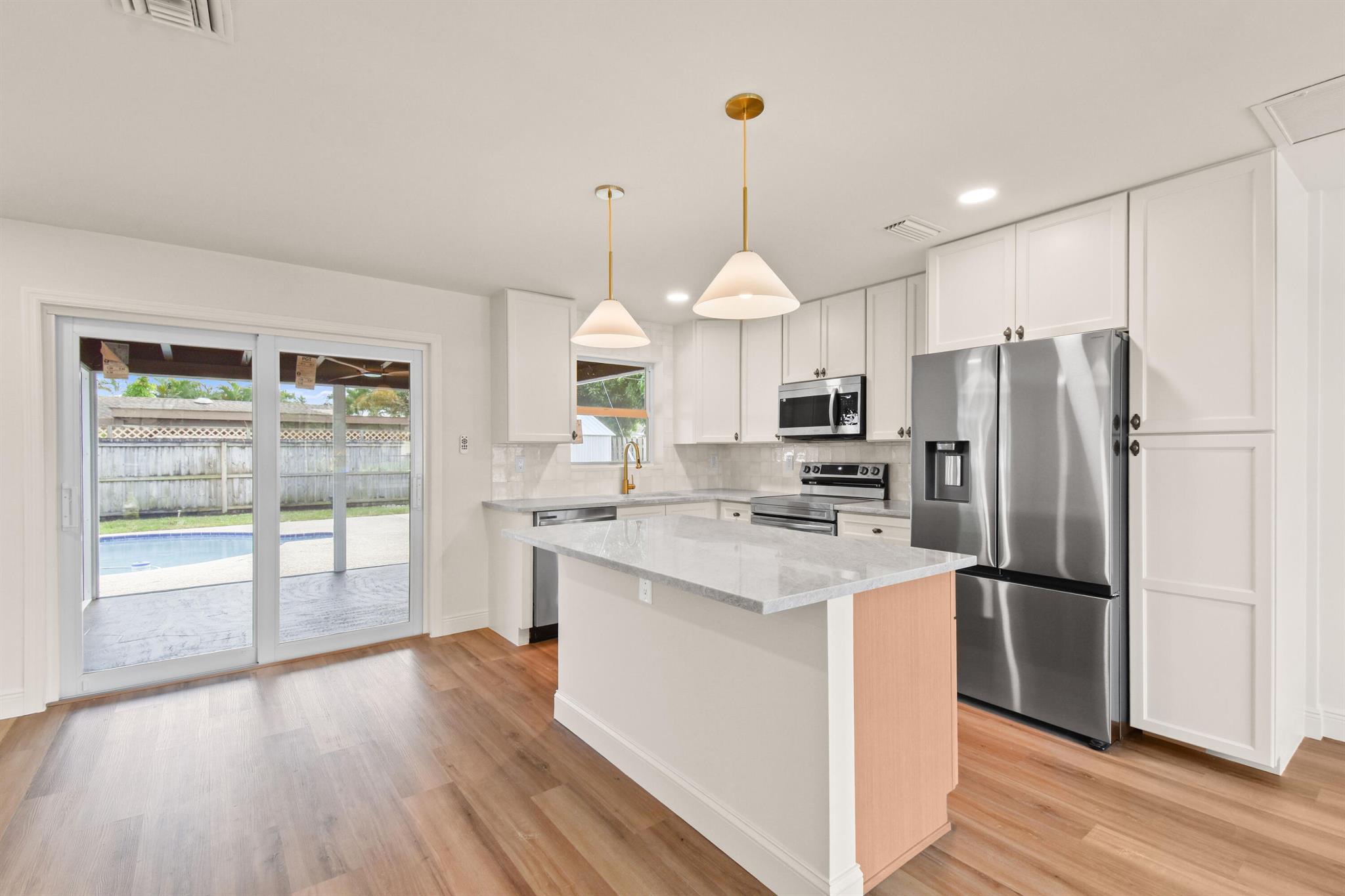 Thoughtfully designed and expertly curated fully remodeled 4-bedroom, 2-bath pool home in one of Palm Beach Gardens' most desirable NO HOA communities. Easy to show and move-in ready! Features a brand-new shingle roof (2025), PGT impact windows and doors (2025), and landscaping. Inside offers new waterproof LVP flooring, designer finishes, West Elm lighting, custom trim, and a stunning arched dry bar with Taj Mahal counters and white oak cabinetry. The kitchen features Samsung stainless appliances, Taj Mahal tops, a 5-ft island, and all-wood soft-close cabinetry. Includes a LARGE LAUNDRY ROOM with two quartz counter, resurfaced pool, screened patio, and fenced yard. Exceptional location near PGA Blvd, parks, golf, dining, shopping, and beaches.