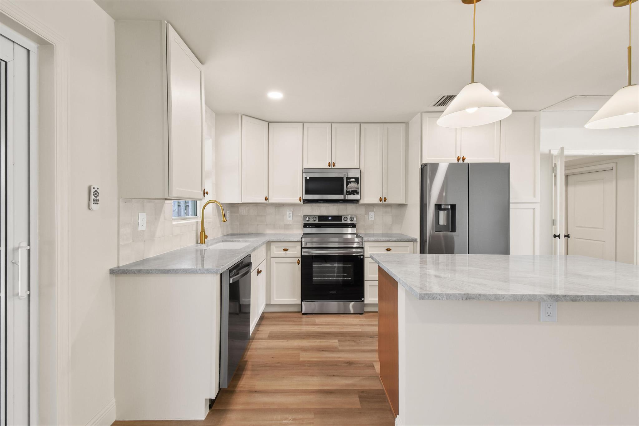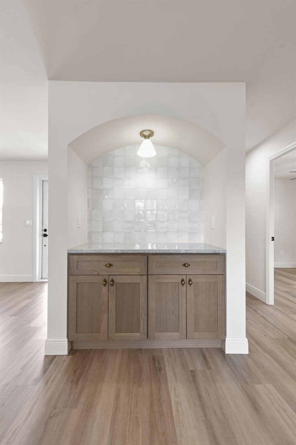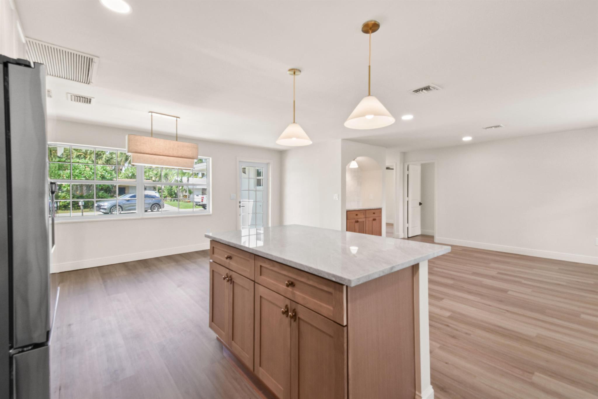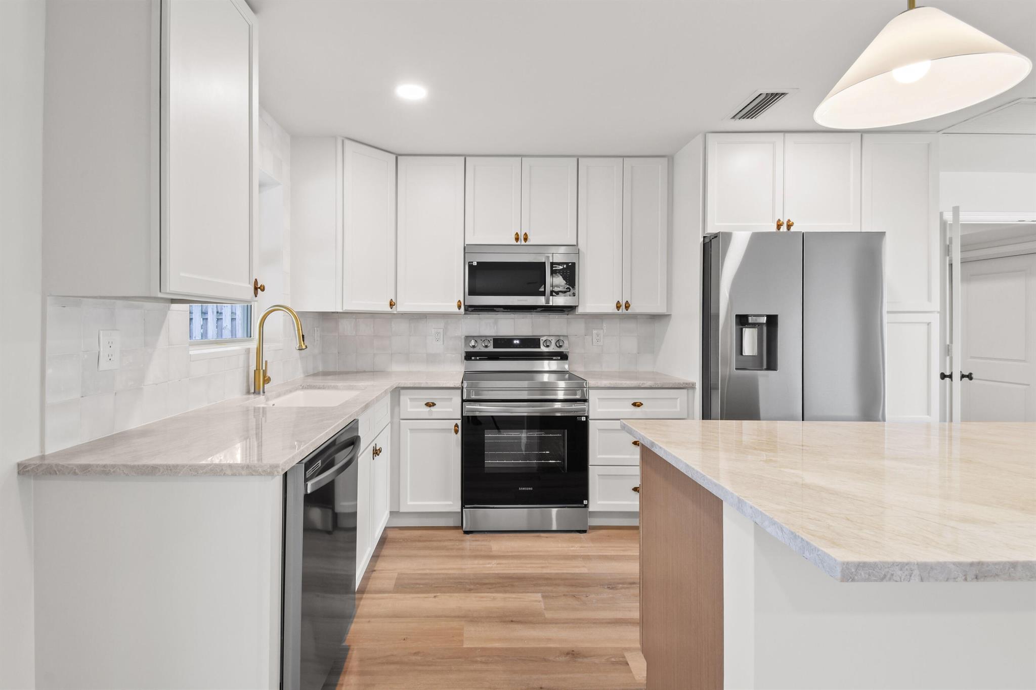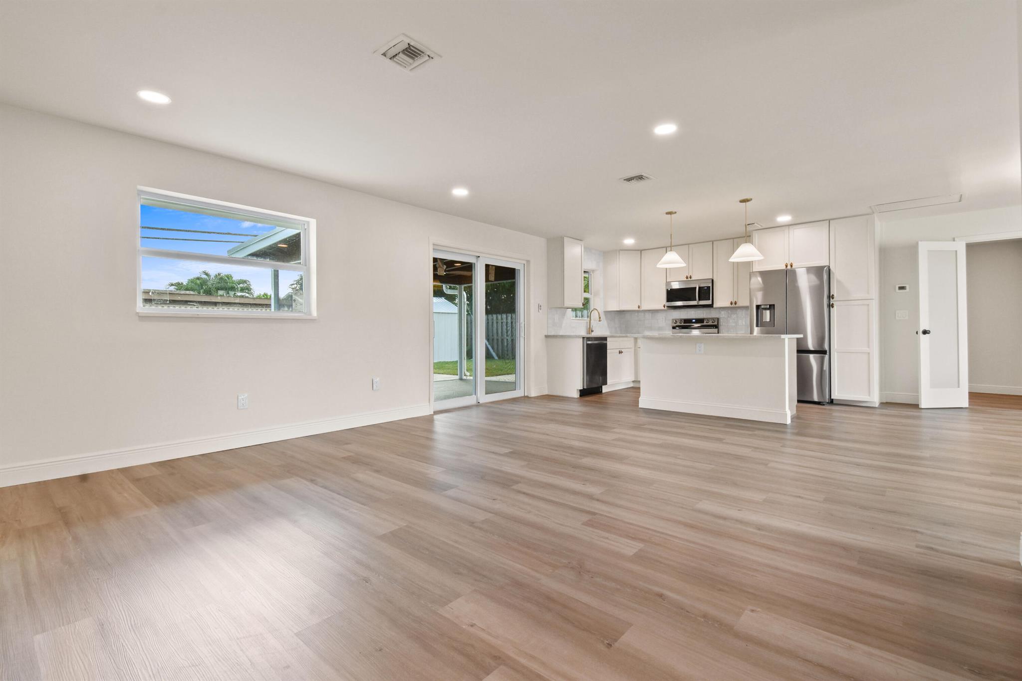 Thoughtfully designed and expertly curated fully remodeled 4-bedroom, 2-bath pool home in one of Palm Beach Gardens' most desirable NO HOA communities. Easy to show and move-in ready! Features a brand-new shingle roof (2025), PGT impact windows and doors (2025), and landscaping. Inside offers new waterproof LVP flooring, designer finishes, West Elm lighting, custom trim, and a stunning arched dry bar with Taj Mahal counters and white oak cabinetry. The kitchen features Samsung stainless appliances, Taj Mahal tops, a 5-ft island, and all-wood soft-close cabinetry. Includes a LARGE LAUNDRY ROOM with two quartz counter, resurfaced pool, screened patio, and fenced yard. Exceptional location near PGA Blvd, parks, golf, dining, shopping, and beaches.
