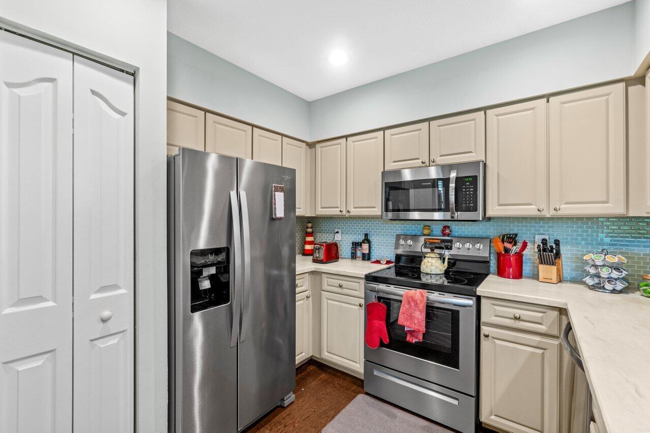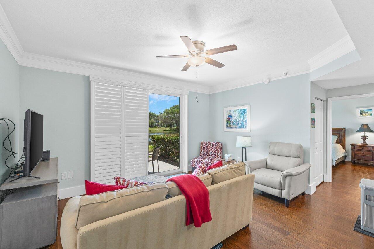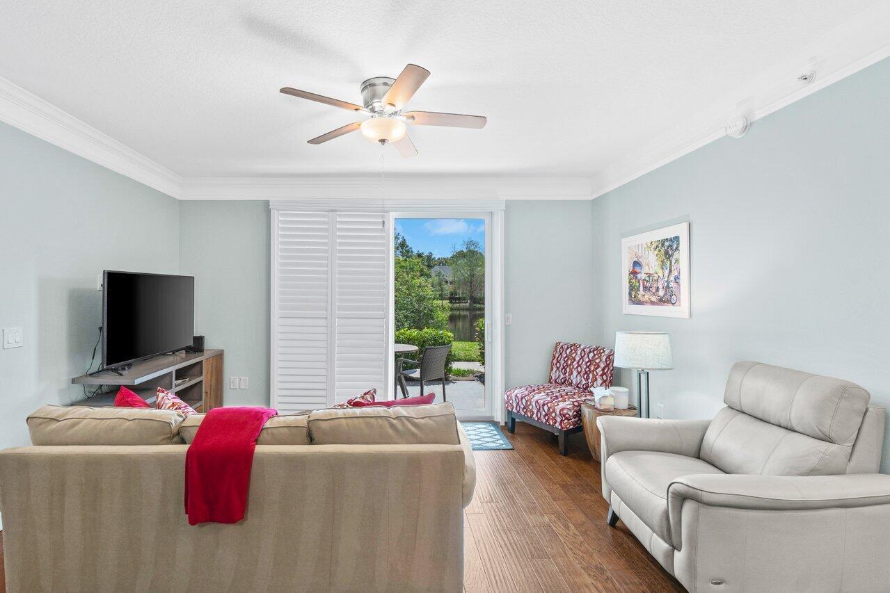 Move-In Ready Lakefront Condo with Garage -Live the Florida lifestyle in this beautifully remodeled 2-bedroom, 2-bathroom furnished condo featuring serene lake views and a private garage. This light-filled residence is packed with upgrades--engineered hardwood floors throughout (no carpet!), crown molding, high hats, ceiling fans, plantation shutters, and fresh paint.Enjoy a stylish kitchen with stainless steel appliances and a full-size washer/dryer for added convenience. The split floor plan offers privacy and flexibility, perfect for guests or a home office setup. Located in a gated, pet-friendly community just minutes to downtown Delray Beach, top-tier shopping, dining, and the beach