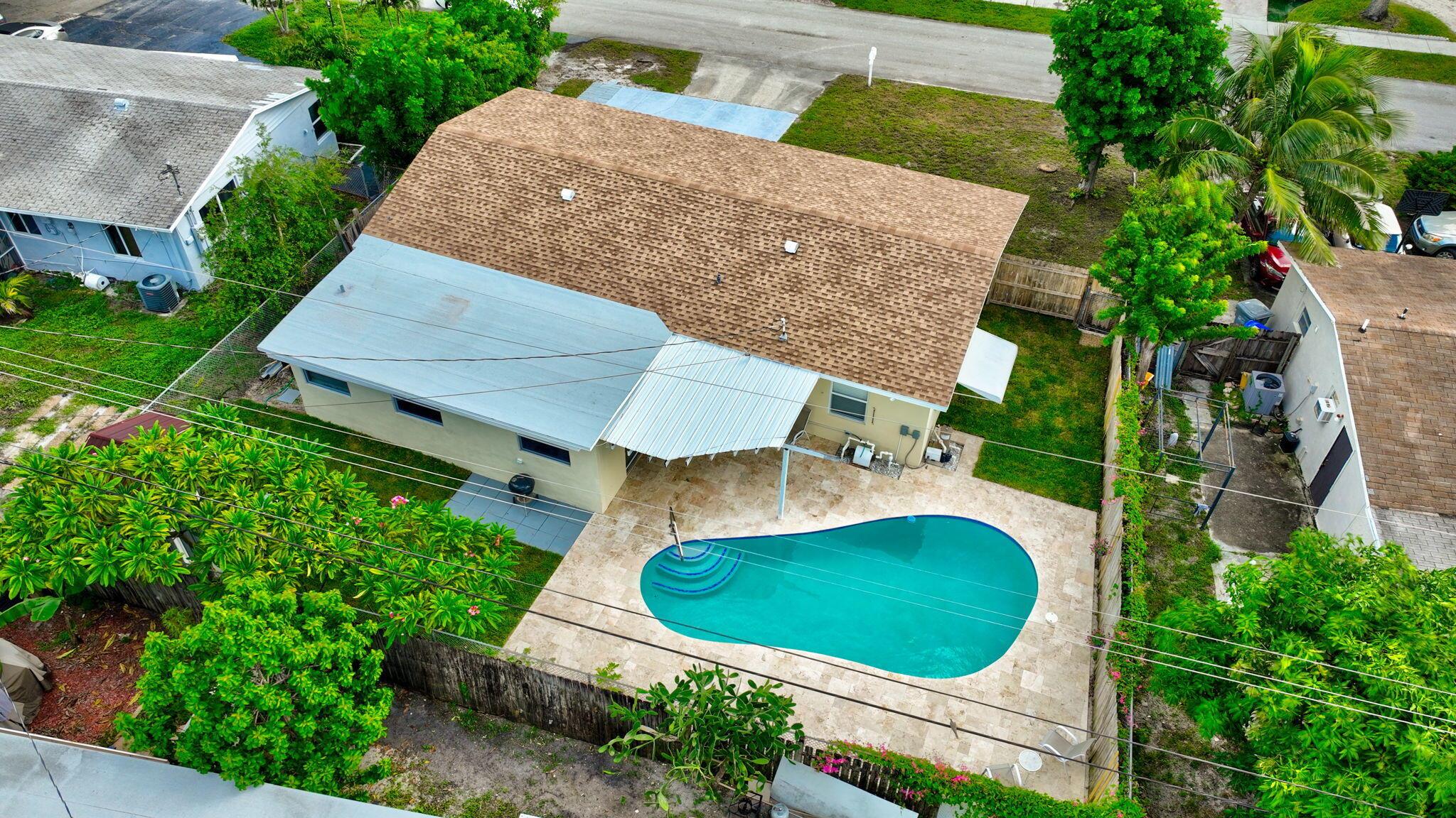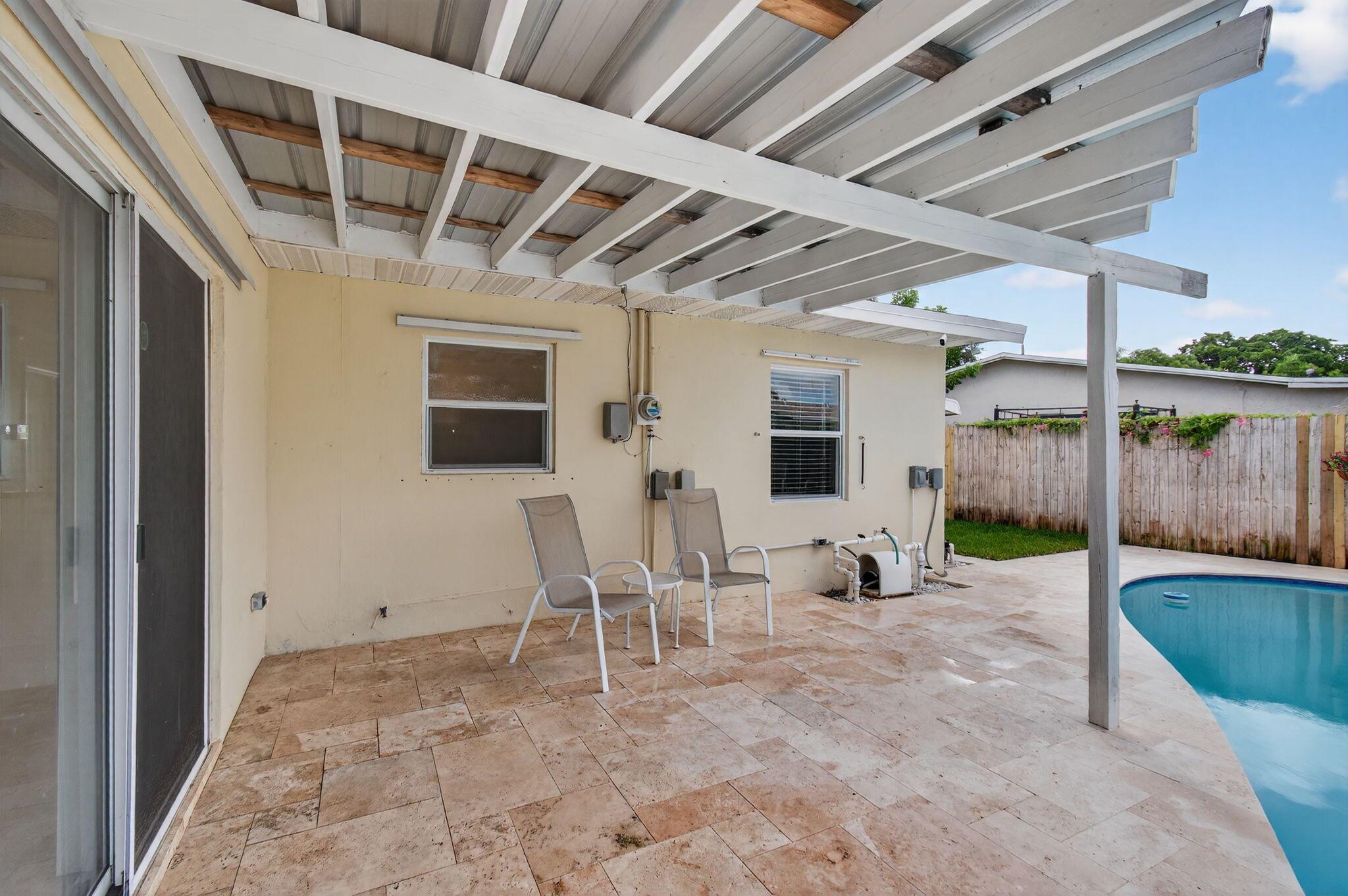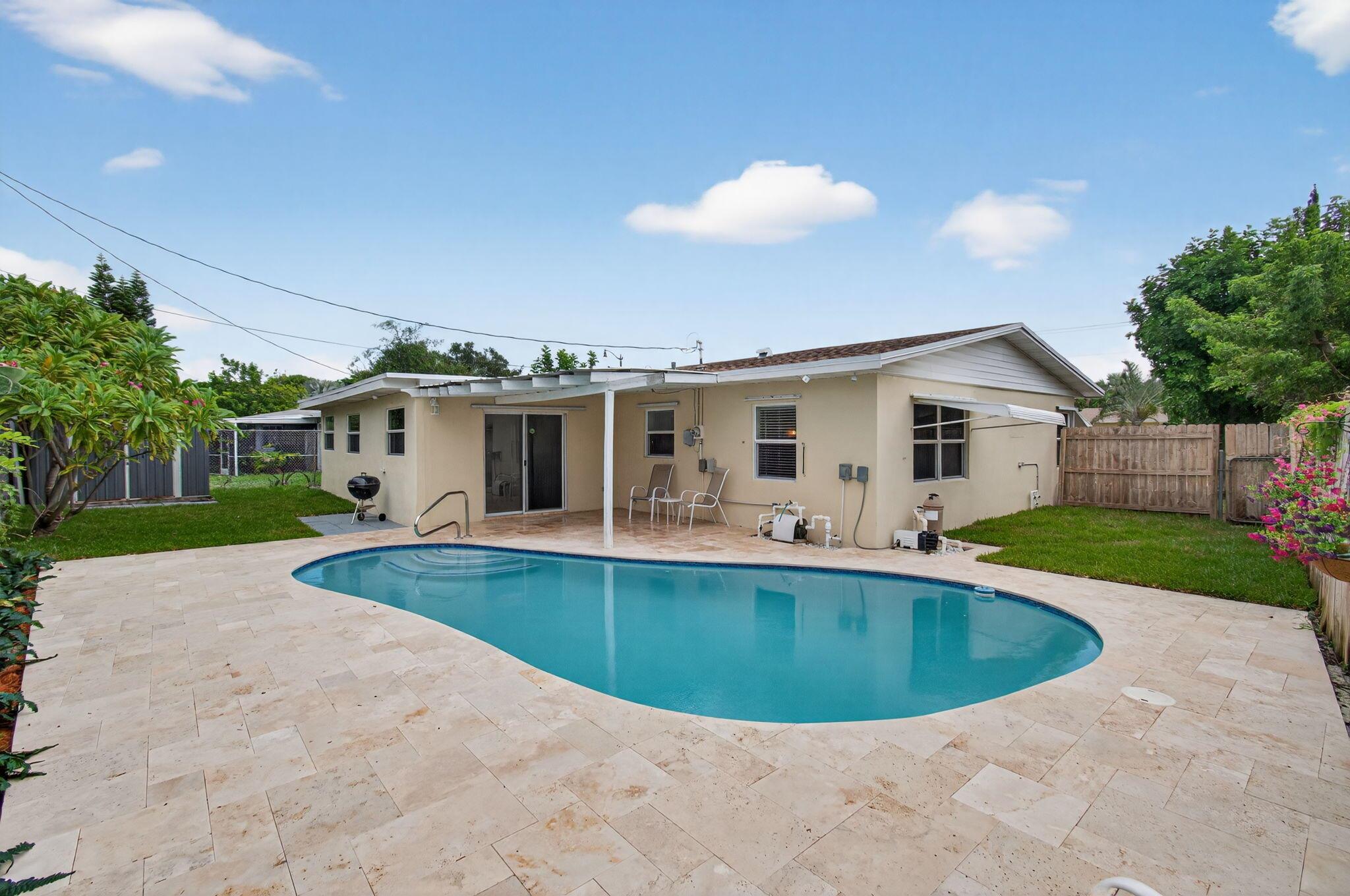 Welcome to your beautiful dream home in the heart of Pompano Beach! NO HOA!! BRAND NEW ROOF!! This absolutely stunning, 3 bed, 2 bath single-family residence has it all. It features a rare 2-car garage--a true standout in the neighborhood--complete with durable epoxy flooring and a hurricane-rated garage door. Enjoy your own tropical escape with a recently resurfaced pool & new travertine tile pool deck (2025) along with a fully fenced-in backyard. There are countless upgrades including fully updated bathrooms, granite kitchen countertops, stainless steel appliances, new blinds, newer AC (2020), marble window sills, a freshly painted interior and exterior, porcelain ceramic tile/ vinyl floors throughout and more! It is so spacious with its open, split bedroom floor plan.