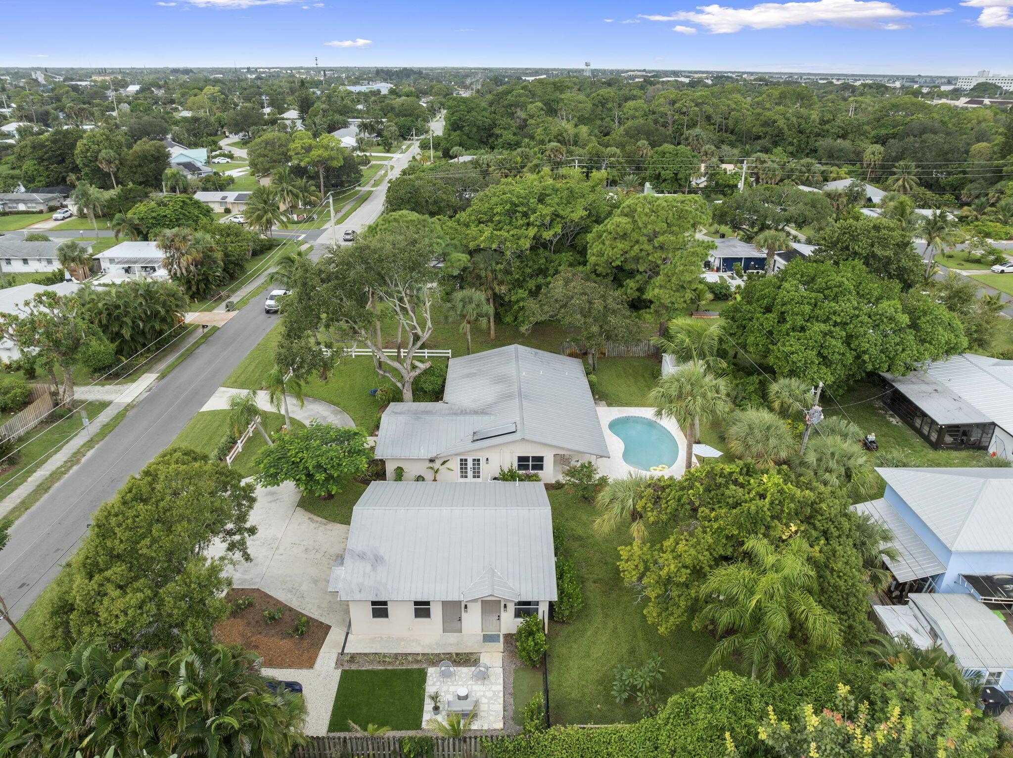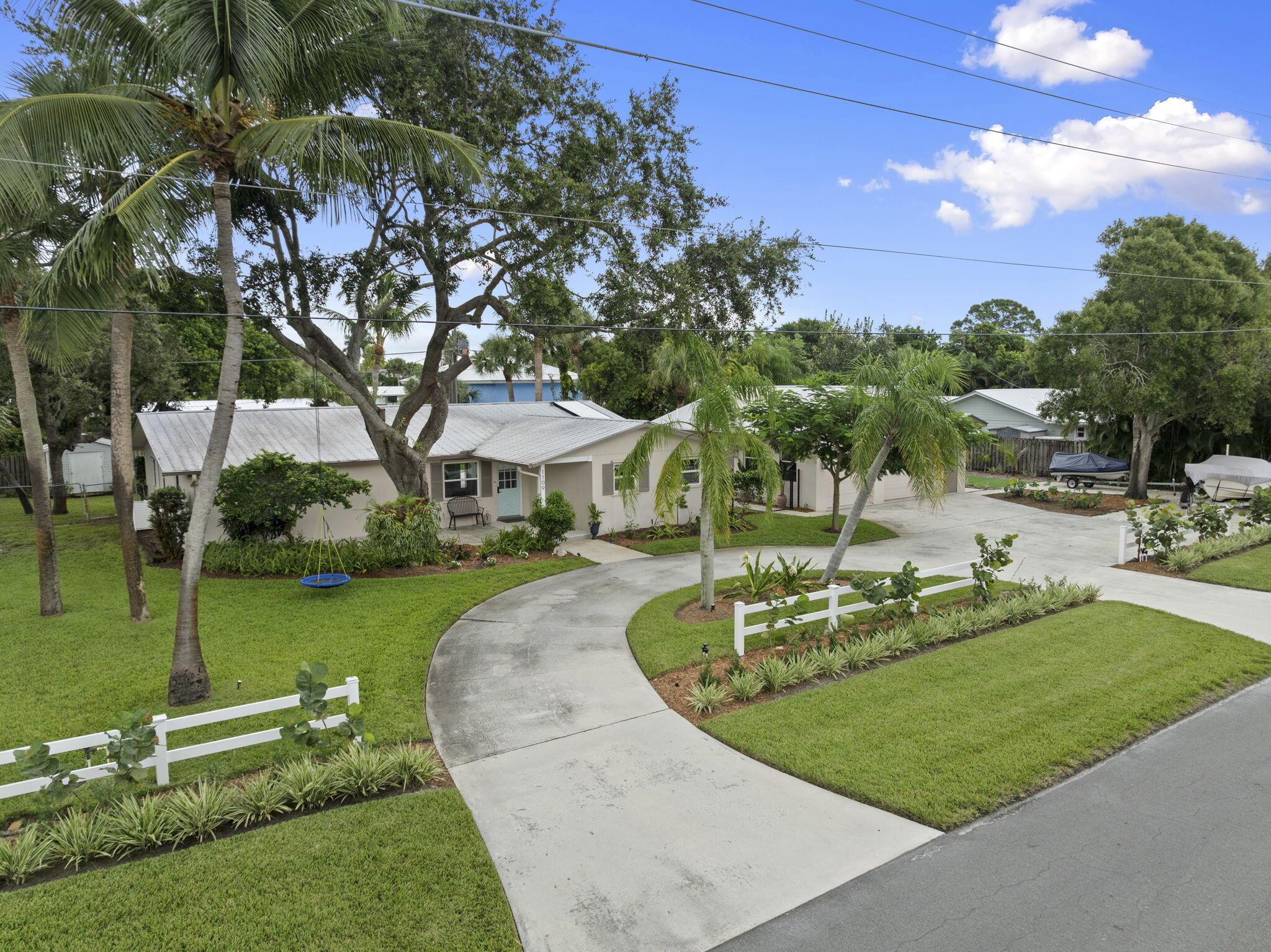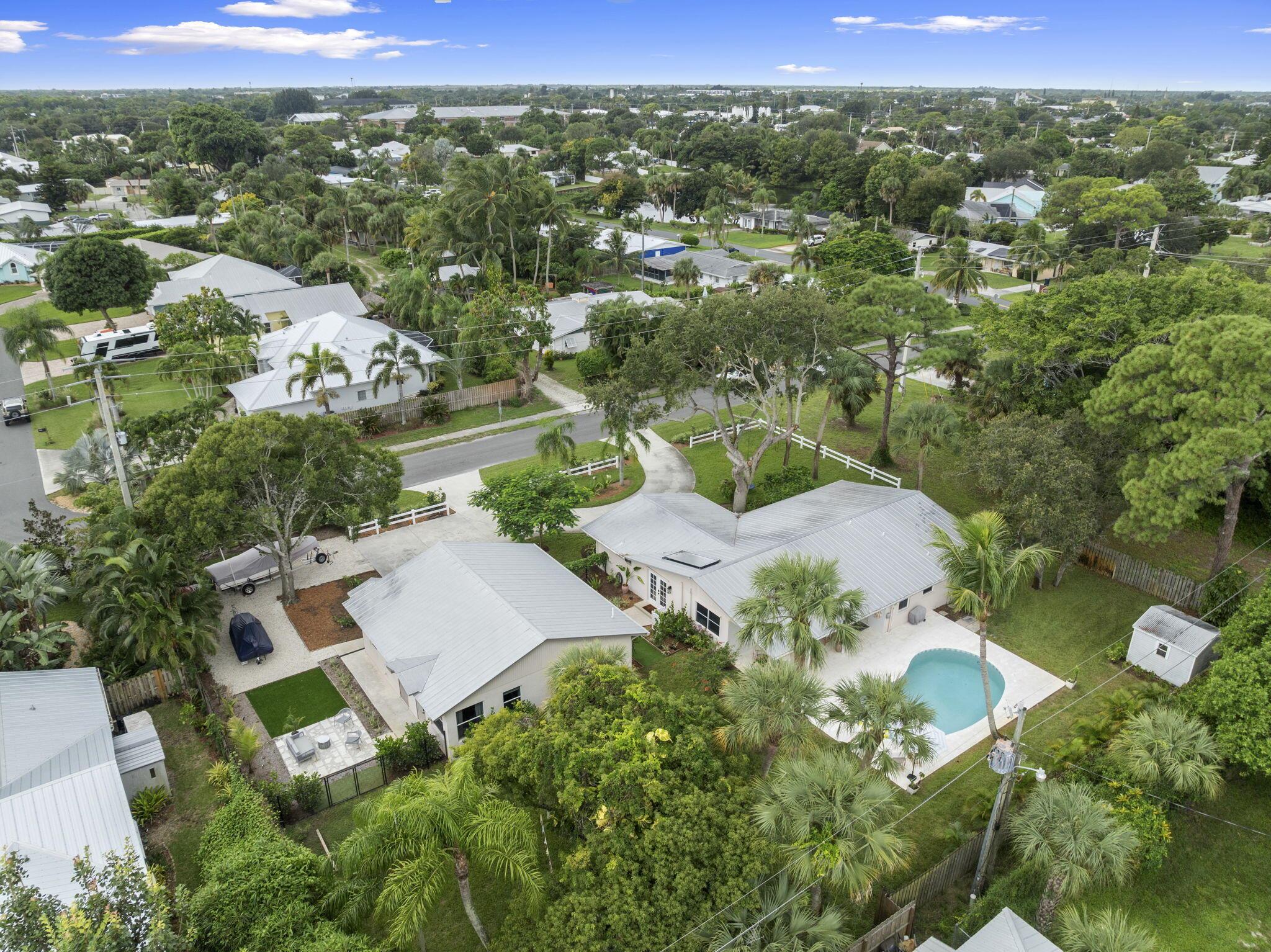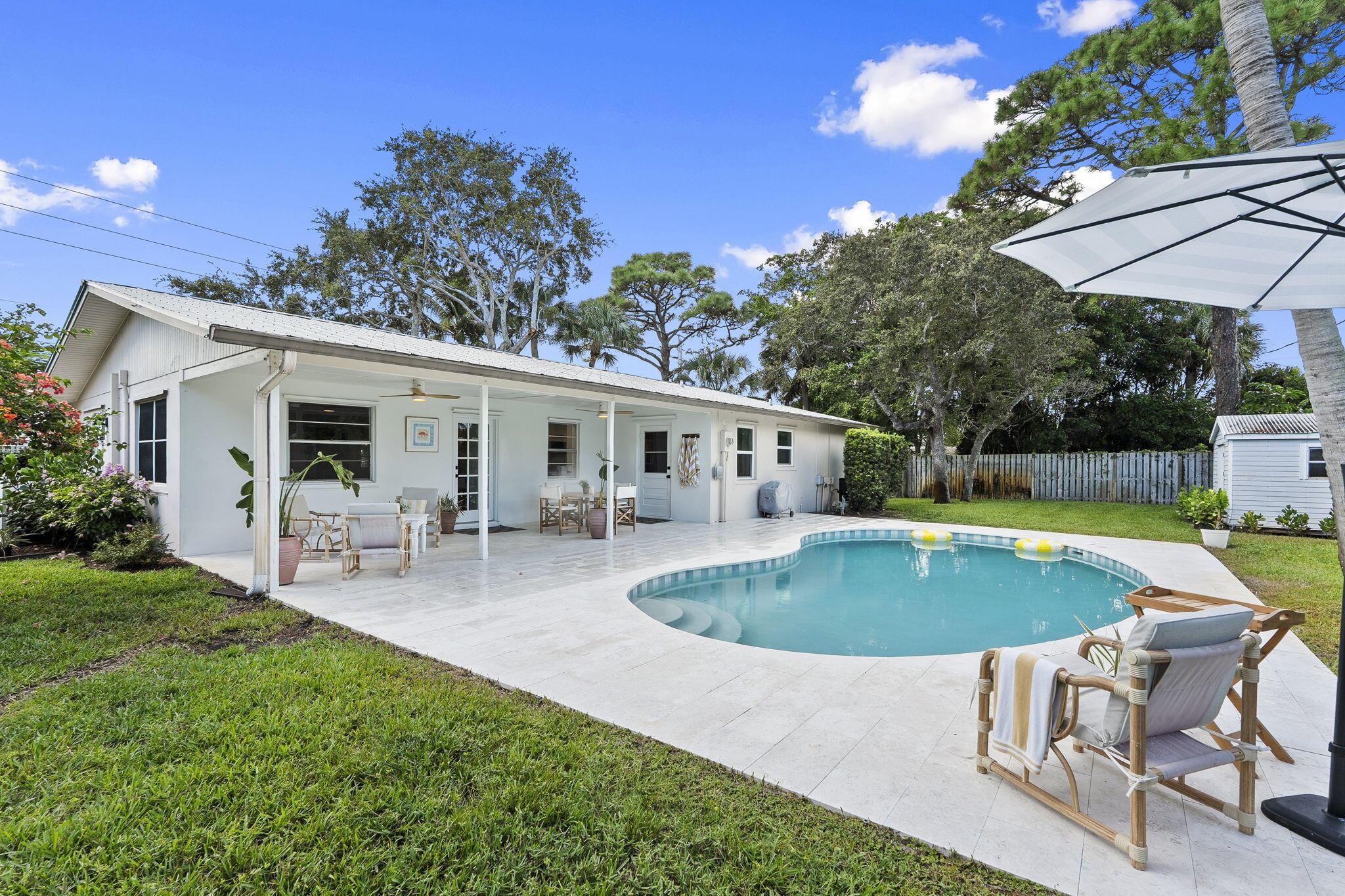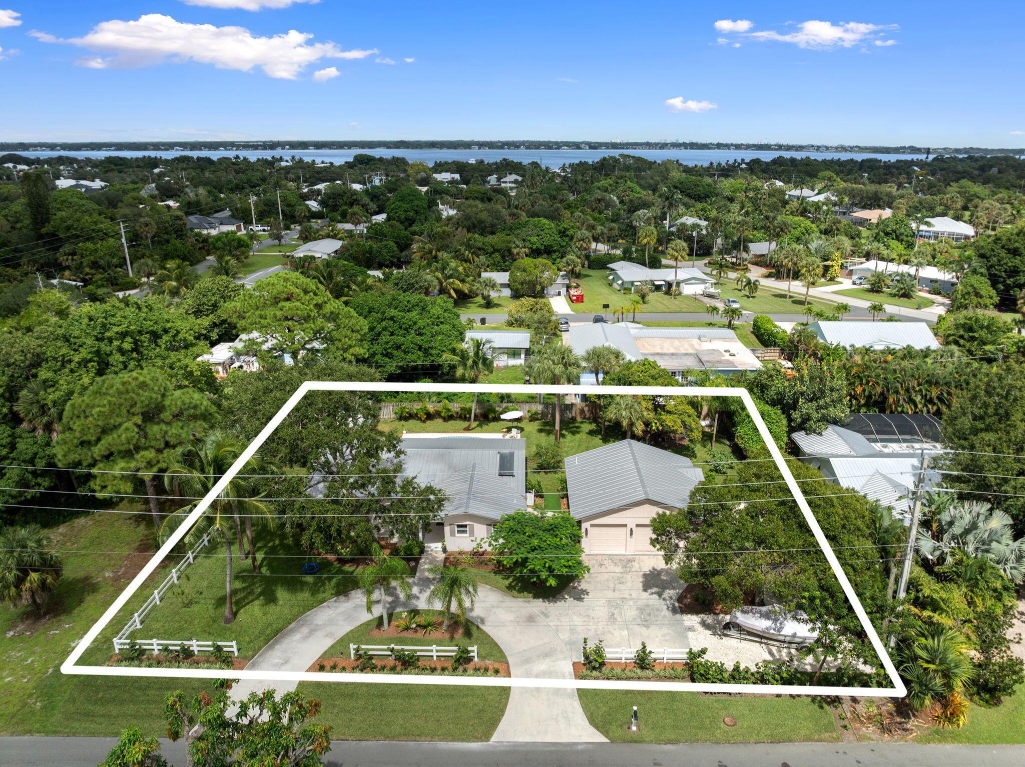 Discover this rare double-lot opportunity in ''America's Happiest Seaside Town.'' Designed by a renowned architect to highlight warm, functional elegance, this CBS pool home with a metal roof sits on over 1/2 acre in the heart of Stuart. The 3-bedroom, 2.5-bath main home offers open living with space for a home office, hurricane shutters, and a fully fenced yard. A detached 2.5-car garage and private 1-bedroom, 1-bath guest suite create endless possibilities--multi-generational living, in-law quarters, income-producing rental, or private retreat. Outdoors, enjoy a free-form pool, oversized yard, and plenty of room for a boat, RV, pets, and toys--without HOA restrictions. Just a short stroll to downtown Stuart's shops, festivals, and waterfront dining, and minutes from Treasure Coast beache