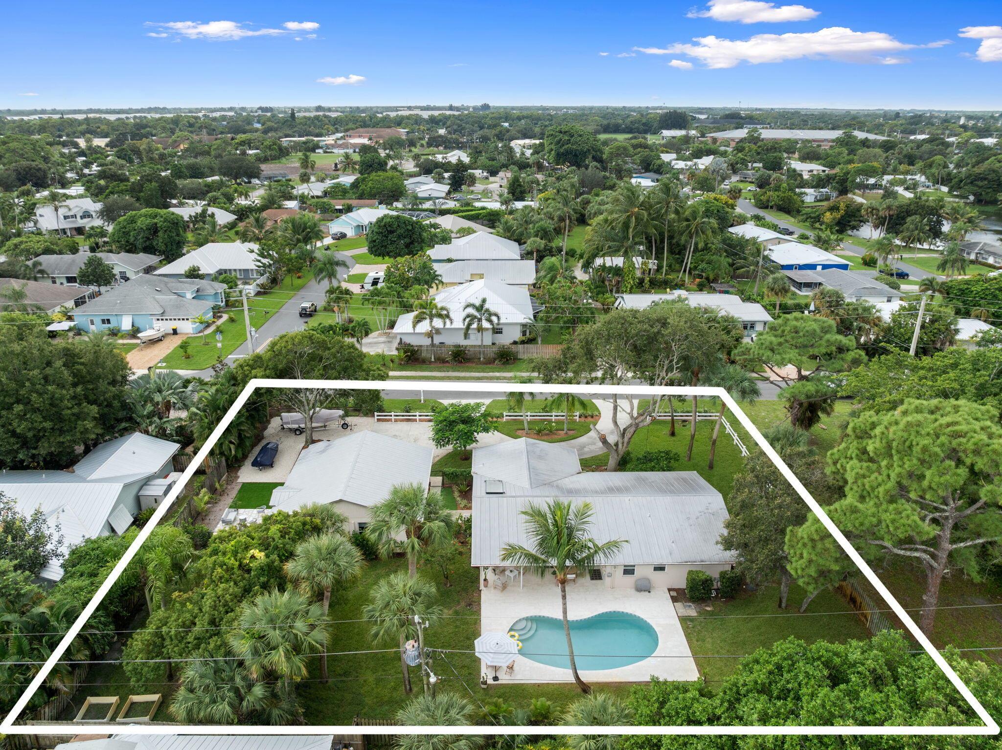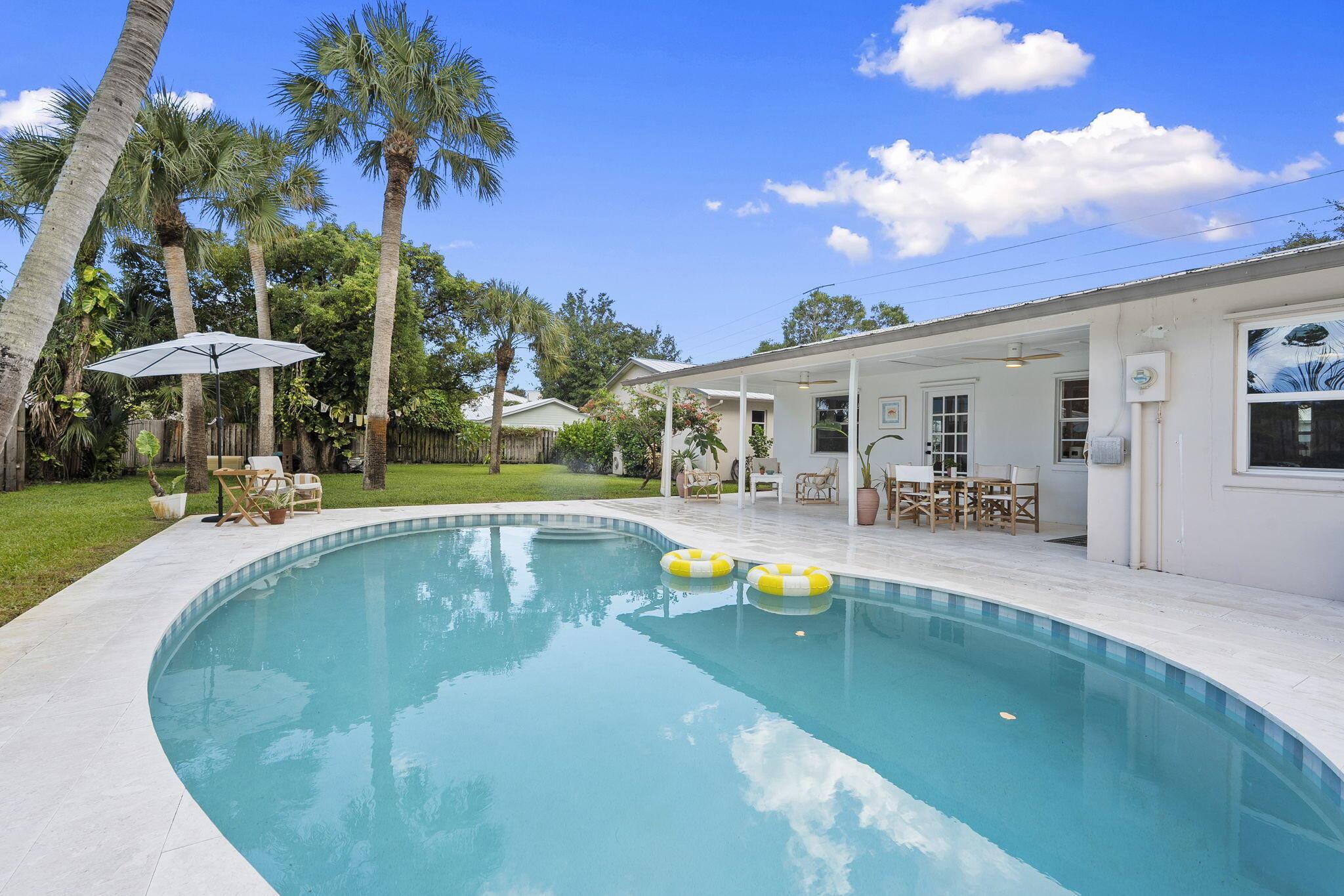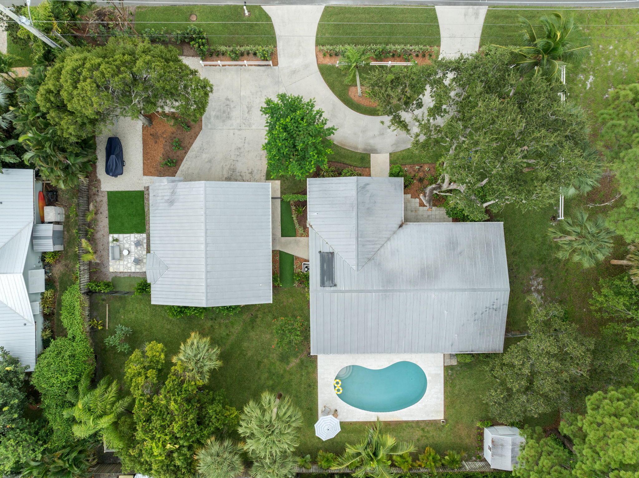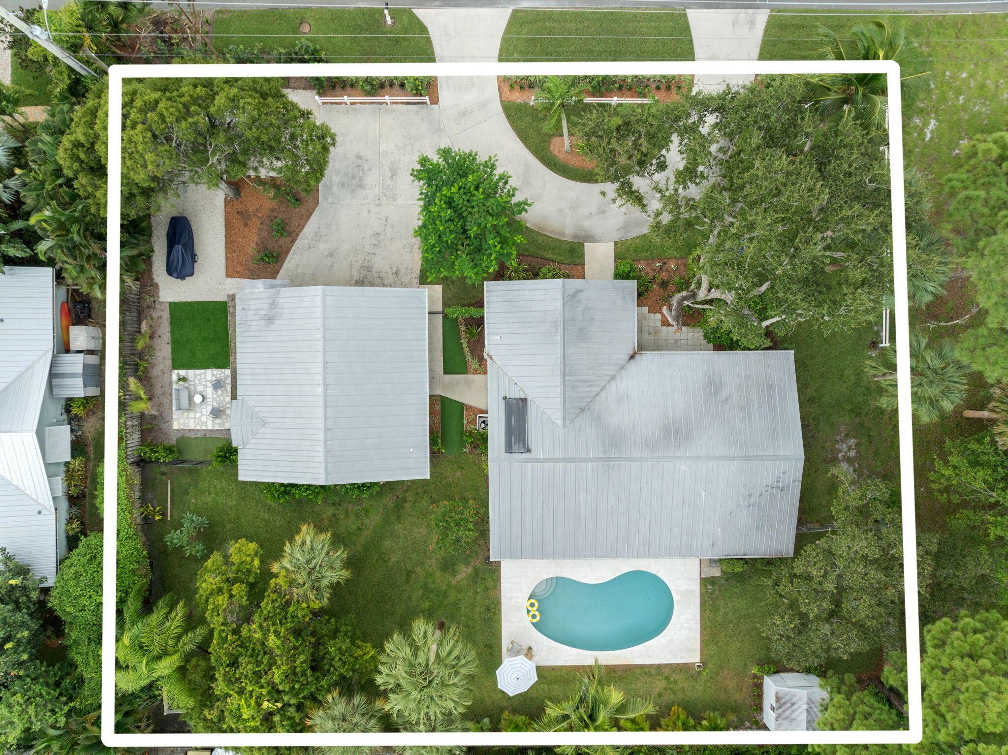 Discover this rare double-lot opportunity in ''America's Happiest Seaside Town.'' Designed by a renowned architect to highlight warm, functional elegance, this CBS pool home with a metal roof sits on over 1/2 acre in the heart of Stuart. The 3-bedroom, 2.5-bath main home offers open living with space for a home office, hurricane shutters, and a fully fenced yard. A detached 2.5-car garage and private 1-bedroom, 1-bath guest suite create endless possibilities--multi-generational living, in-law quarters, income-producing rental, or private retreat. Outdoors, enjoy a free-form pool, oversized yard, and plenty of room for a boat, RV, pets, and toys--without HOA restrictions. Just a short stroll to downtown Stuart's shops, festivals, and waterfront dining, and minutes from Treasure Coast beache