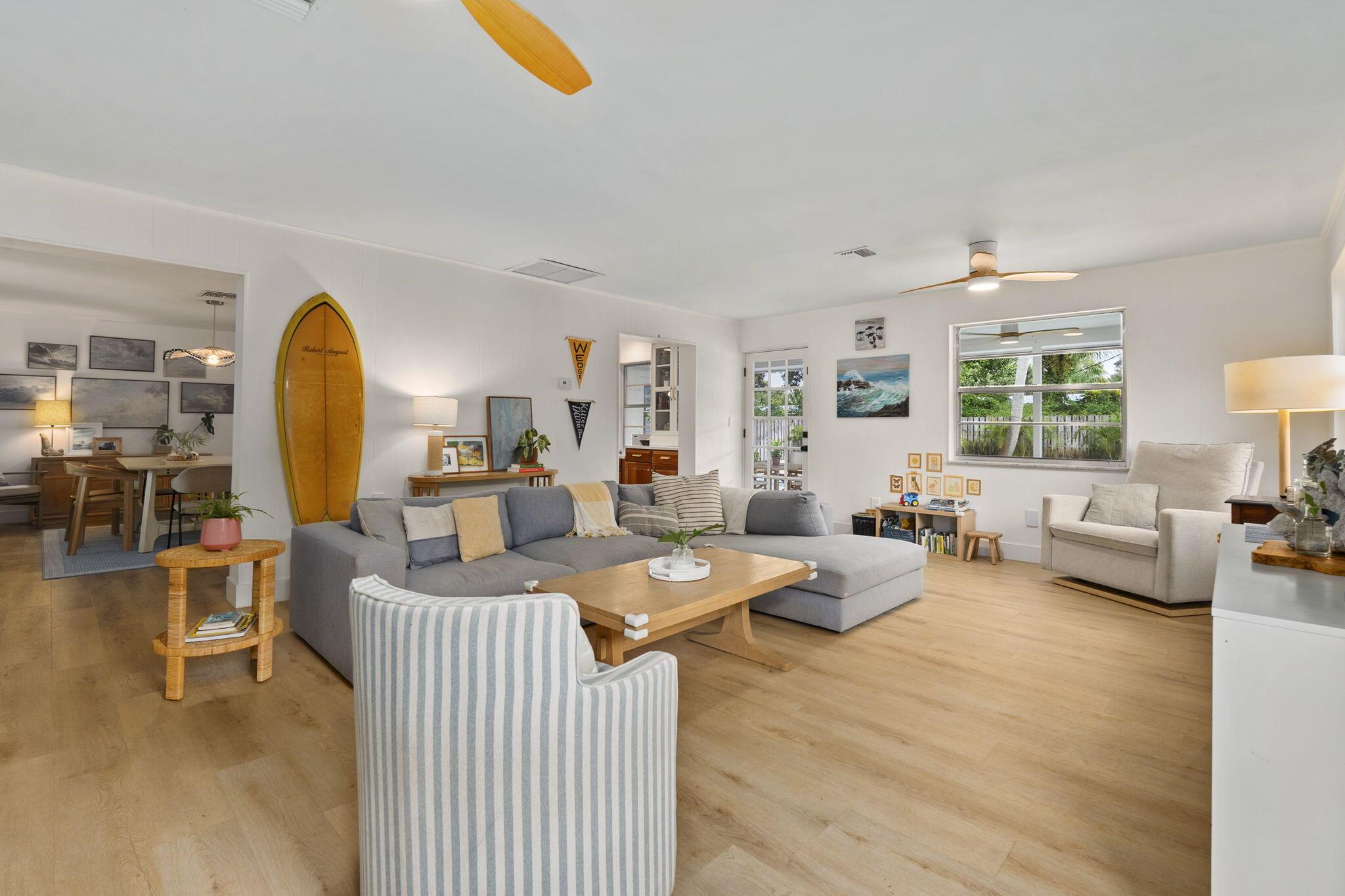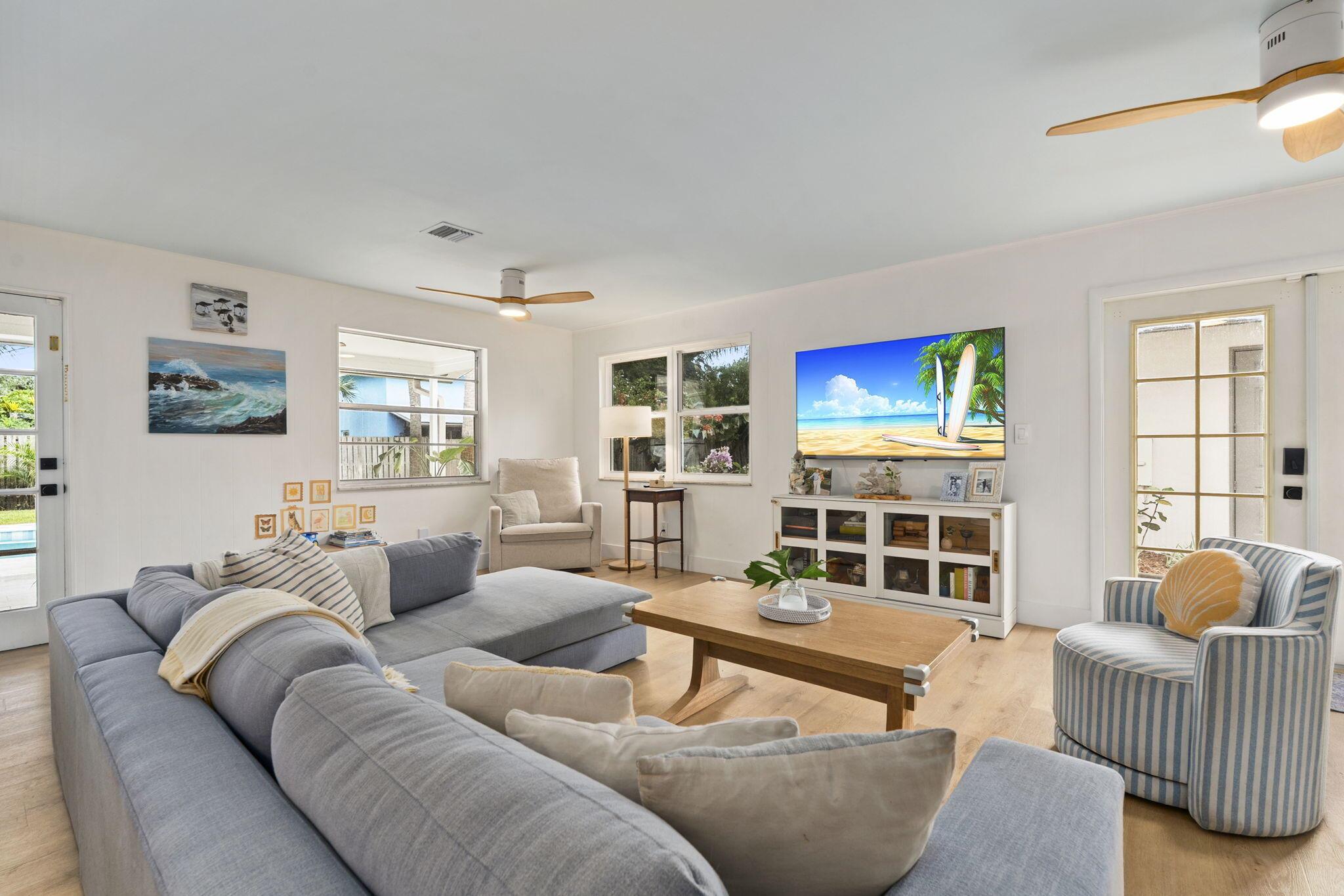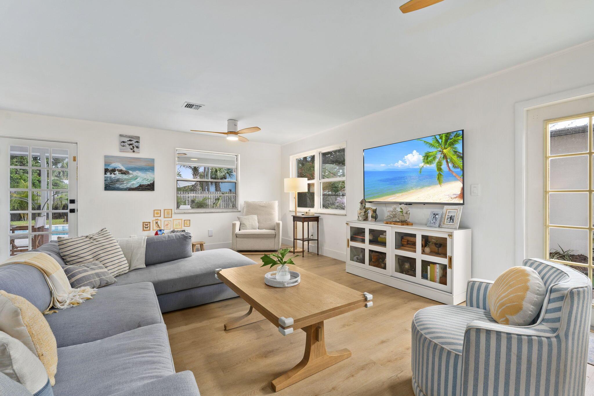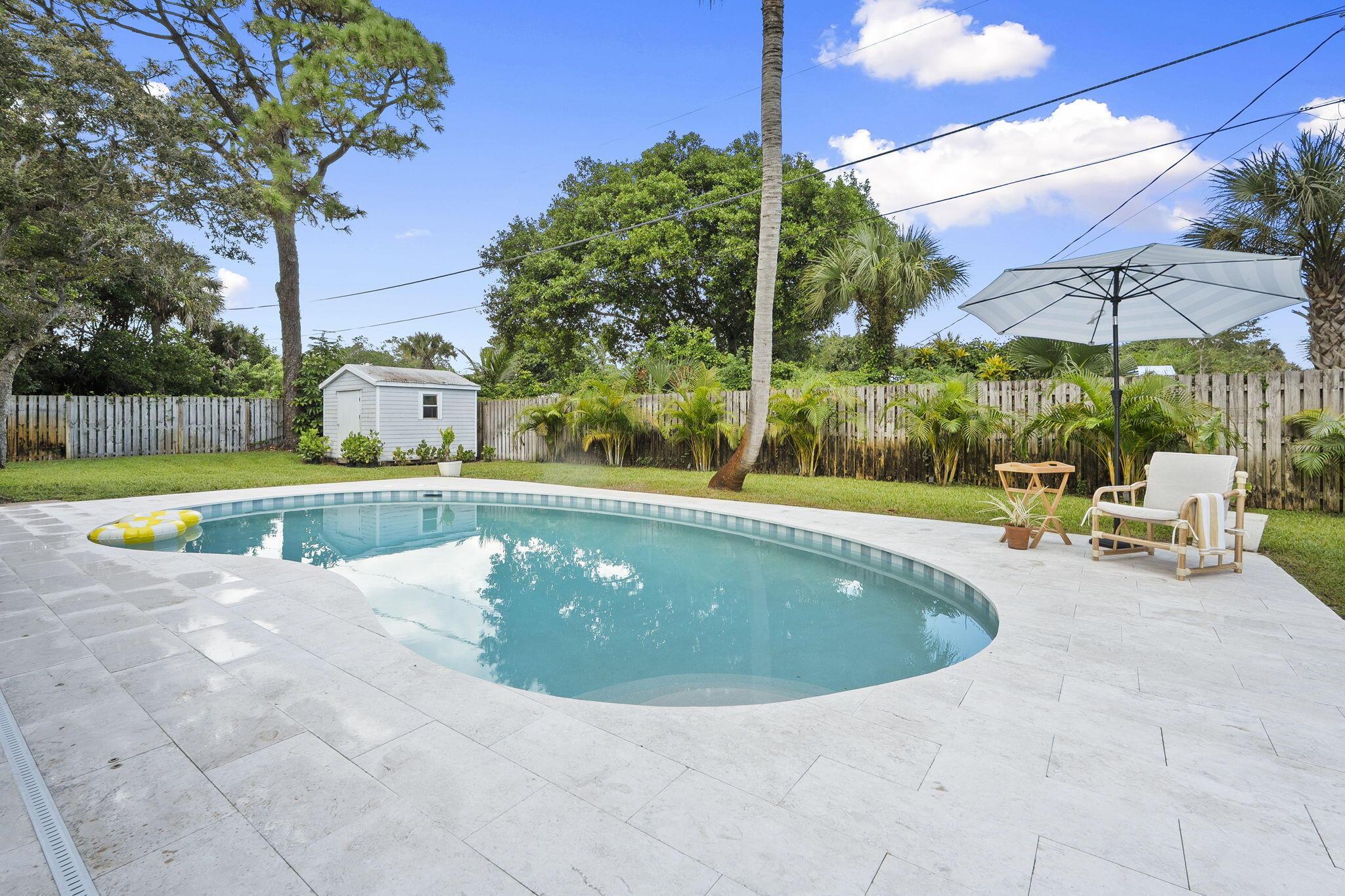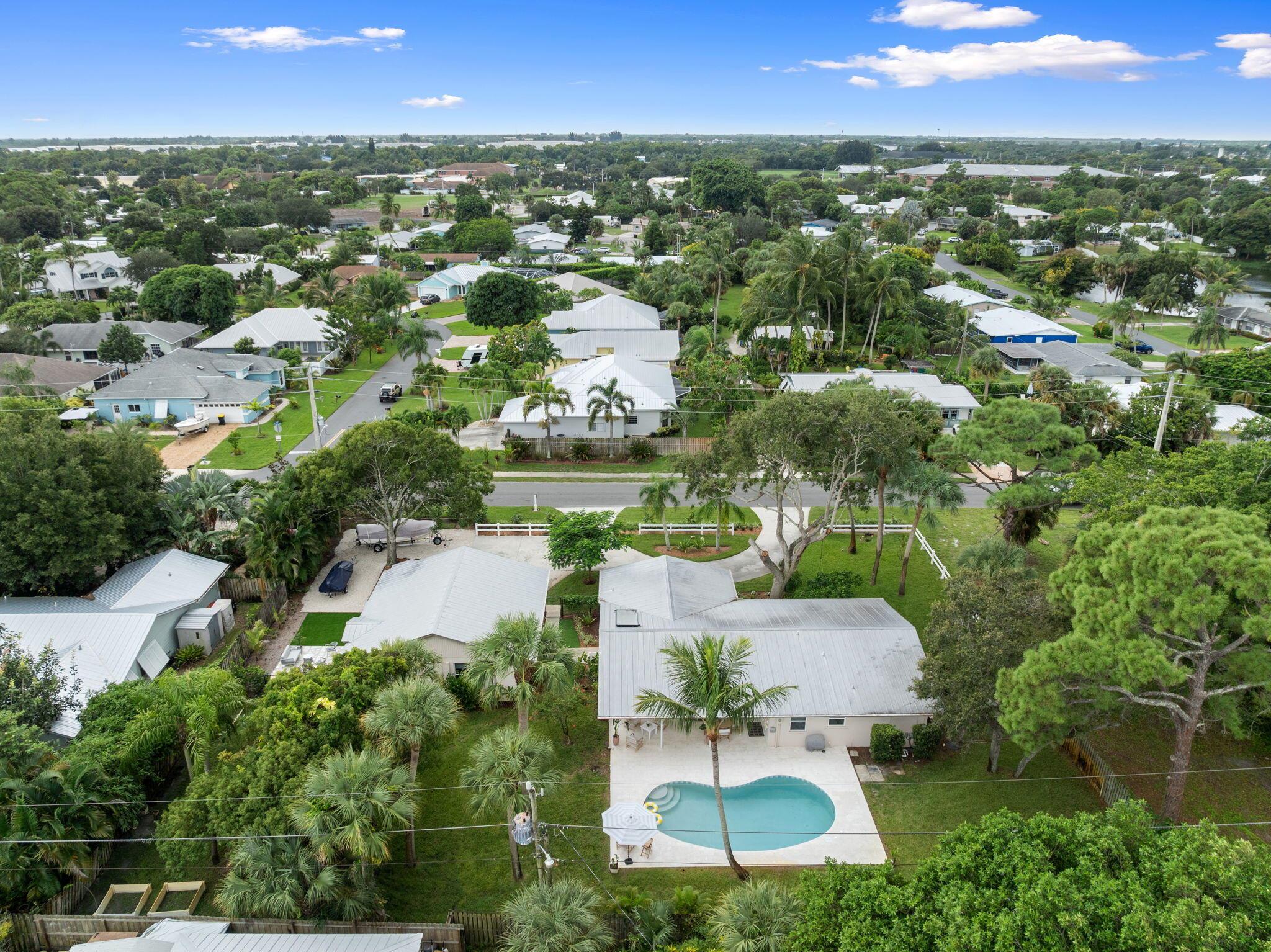 Discover this rare double-lot opportunity in ''America's Happiest Seaside Town.'' Designed by a renowned architect to highlight warm, functional elegance, this CBS pool home with a metal roof sits on over 1/2 acre in the heart of Stuart. The 3-bedroom, 2.5-bath main home offers open living with space for a home office, hurricane shutters, and a fully fenced yard. A detached 2.5-car garage and private 1-bedroom, 1-bath guest suite create endless possibilities--multi-generational living, in-law quarters, income-producing rental, or private retreat. Outdoors, enjoy a free-form pool, oversized yard, and plenty of room for a boat, RV, pets, and toys--without HOA restrictions. Just a short stroll to downtown Stuart's shops, festivals, and waterfront dining, and minutes from Treasure Coast beache