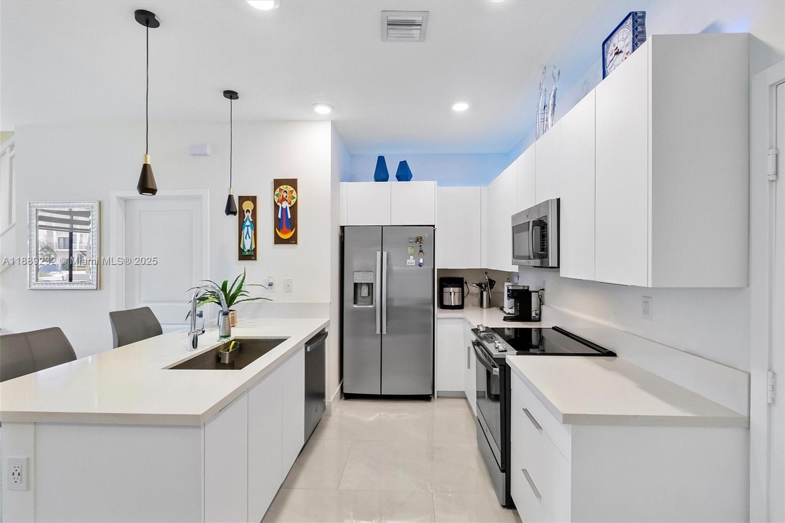 Discover this inviting 3-bed, 2.5-bath home designed for comfort and everyday living in a resort-style community surrounded by lush green spaces. Porcelain floors span the living and kitchen areas, with warm laminate in the bedrooms and staircase, and updated floors upstairs plus a tankless water heater. The garage floor has been freshly painted, and the washer and dryer replaced with new, energy-efficient models. Just 250 ft from the clubhouse with a pool, gym, basketball court, and billiards. The community offers several parks, including White Course Park, feat. a putting green, pet park, playground, outdoor gym, picnic area, and multifunctional green space facing a serene lake with a boulevard-style promenade connecting directly to downtown Doral’s restaurants, shops, and service areas.