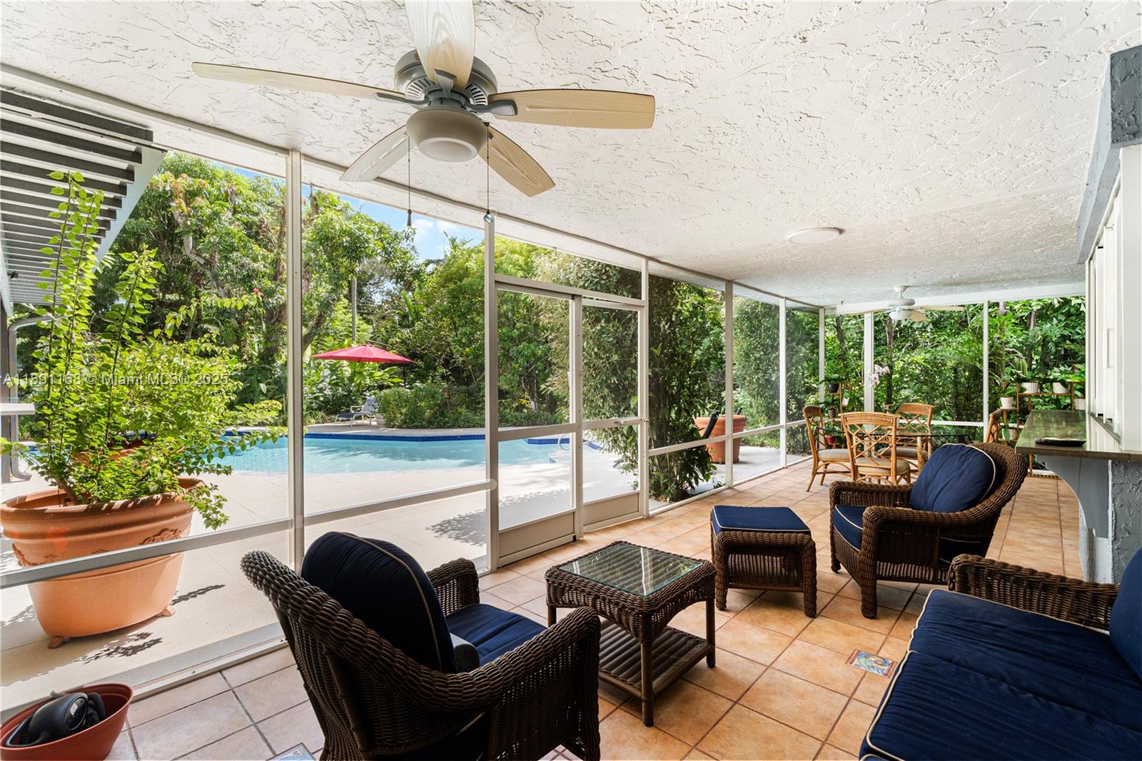 Set in one of the most desirable locations on a 17,700 sq. ft. lot, this home is surrounded by lush tropical landscaping, creating a private sanctuary moments from top schools and city conveniences. The single-story residence features a thoughtful 4/3 layout designed for comfort and ease of living with wonderful formal & informal living areas, a spacious separate guest suite & a large primary suite. Outdoor spaces inspire refined entertaining with a peaceful screened Fla room, a covered terrace with BBQ-bar & a sparkling pool framed by mature foliage. A 2-c garage offers abundant storage. Whether hosting under the stars, enjoying a quiet evening or relaxing poolside, this retreat delivers both vibrancy and tranquility, inviting you to enhance, expand, or simply enjoy its timeless appeal.