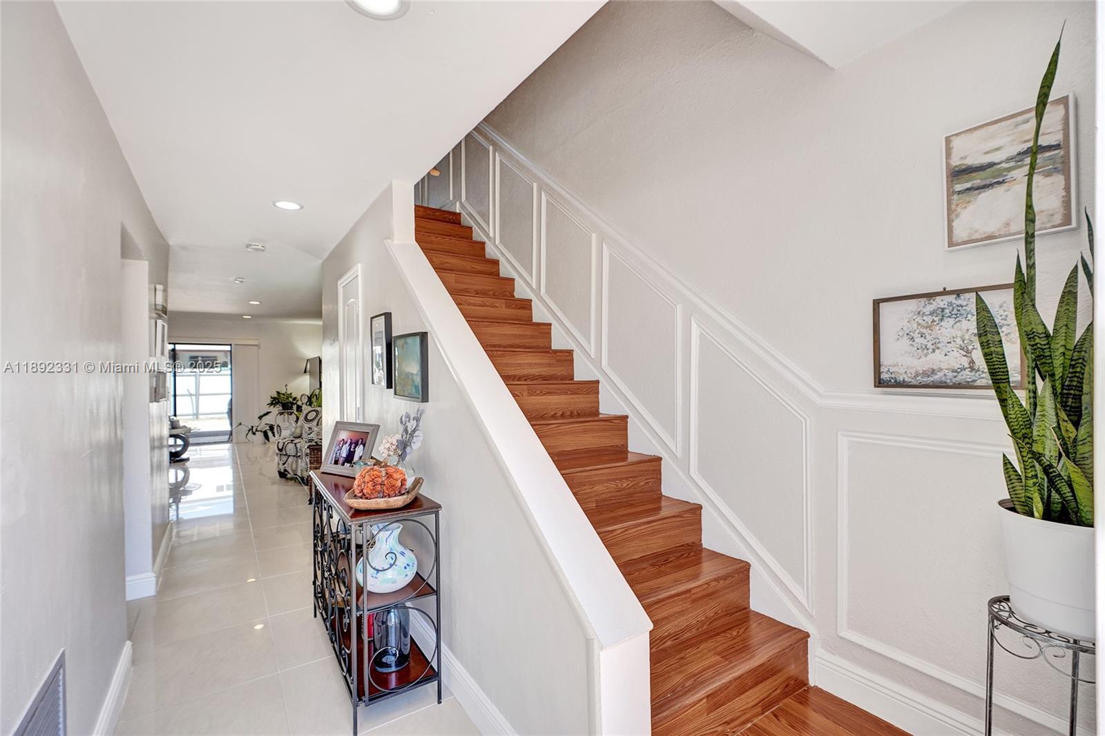 Elegant 2/2.5 townhouse in highly desirable West Hialeah, with NO HOA!! This beautifully maintained 2-story residence features 1,408sqft with 2 spacious bedrooms - both with private ensuite bathrooms - and tons of closet space! Porcelain tile floors on the ground level and modern laminate throughout the second floor. Open kitchen with breakfast counter overlooking livingroom / dining area for easy entertainment! Convenient half bath and dedicated laundry room located on the first floor. Private & fenced back yard, dedicated parking for 2 cars and accordion hurricane shutters throughout the property. New roof in 2020 + new A/C in 2021. Centrally located near shopping & dining, plus easy access to major expressways! Amazing value, move-in ready, will not last!!