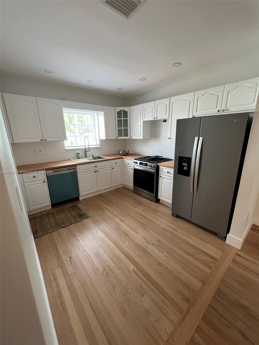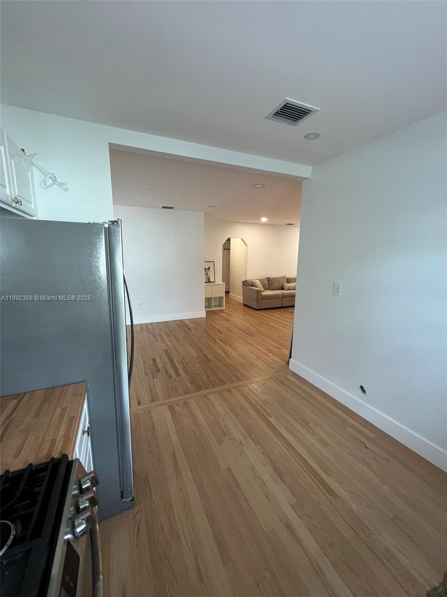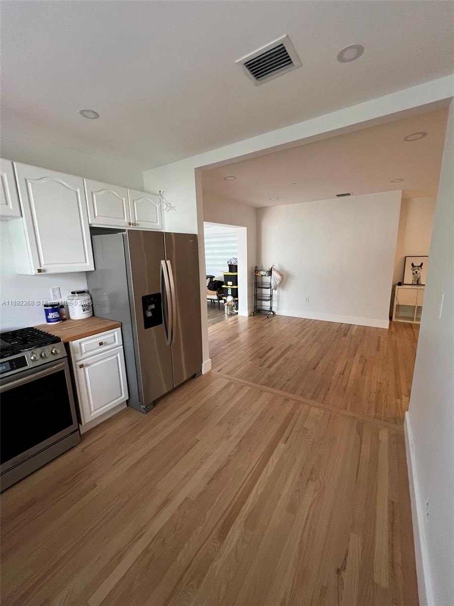 Modern Style 3 bedroom 1 bathroom house with full wood floors thought out the home. Kitchen remodeled with new appliances and butcher top countertop. Bathroom completely remolded with new plumbing. A must see