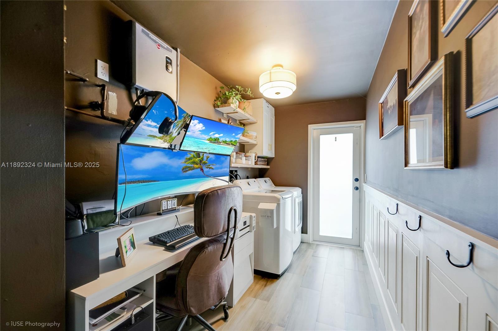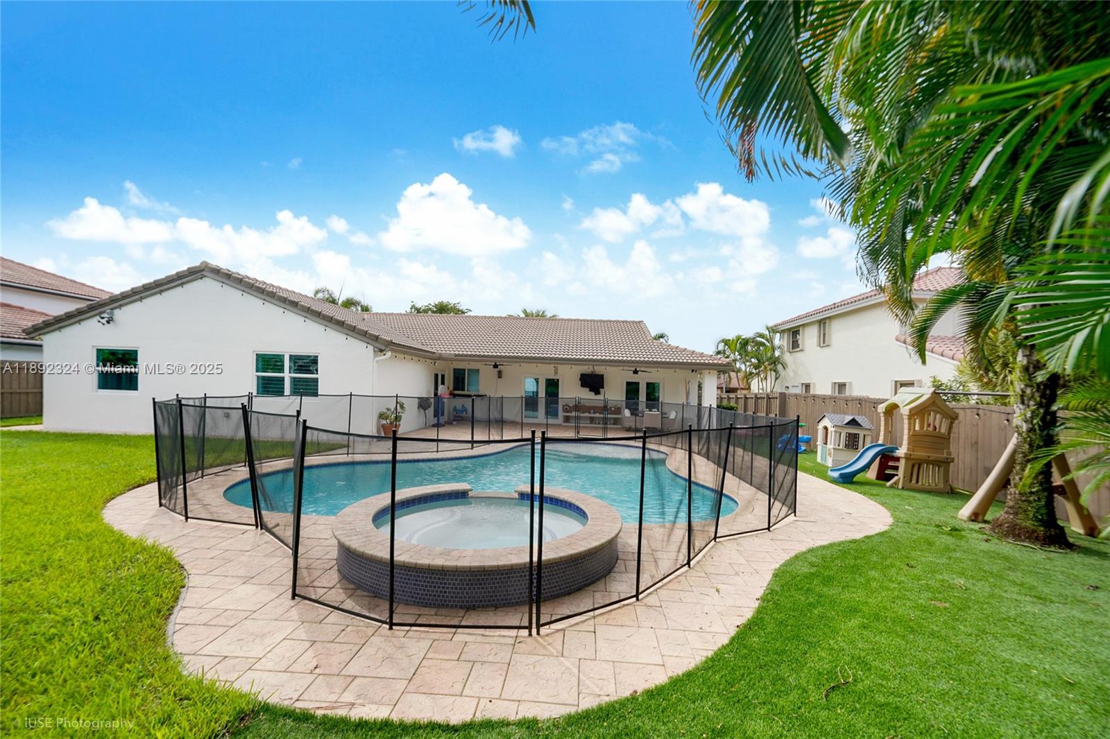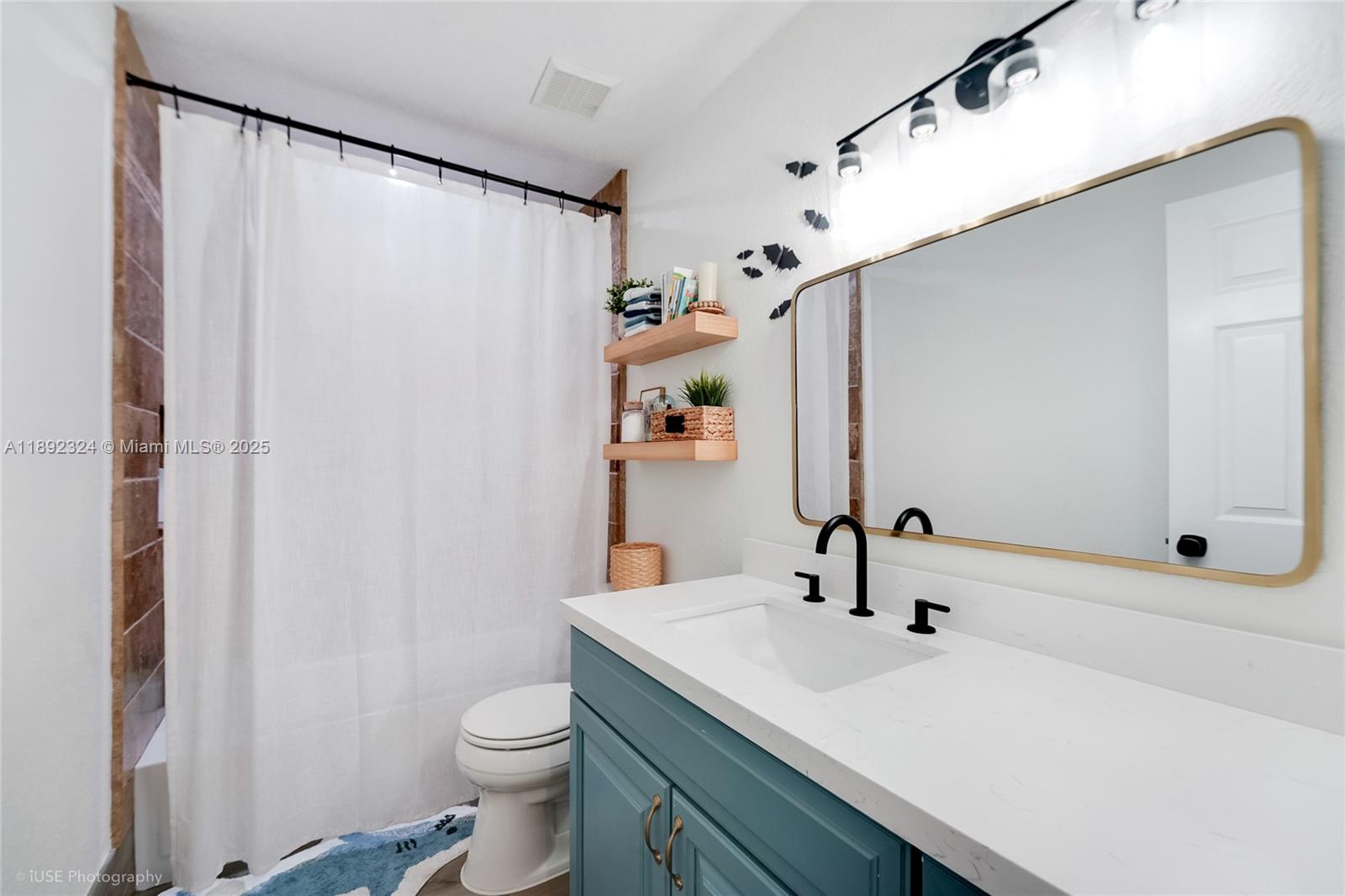 This exceptional home offers style, comfort, and efficiency throughout. Features include tile flooring, quartz countertops in kitchen and bathrooms, and recently refinished kitchen cabinets. The master bathroom has been beautifully renovated, and the reverse osmosis water filtration system adds everyday convenience. Enjoy hurricane impact windows, electric shutters in the 2nd and 3rd bedrooms, foam roof insulation, and Ring security system with cameras and doorbell. Energy-efficient upgrades include a 2024 AC and 2024 water heater. Smart home highlights include a Lutron integrated system for app-controlled lights and fans and a Rain Bird sprinkler system. Outdoor living features a saltwater pool with heater, partial artificial turf, and freshly painted exterior (2024) and interior (2022).