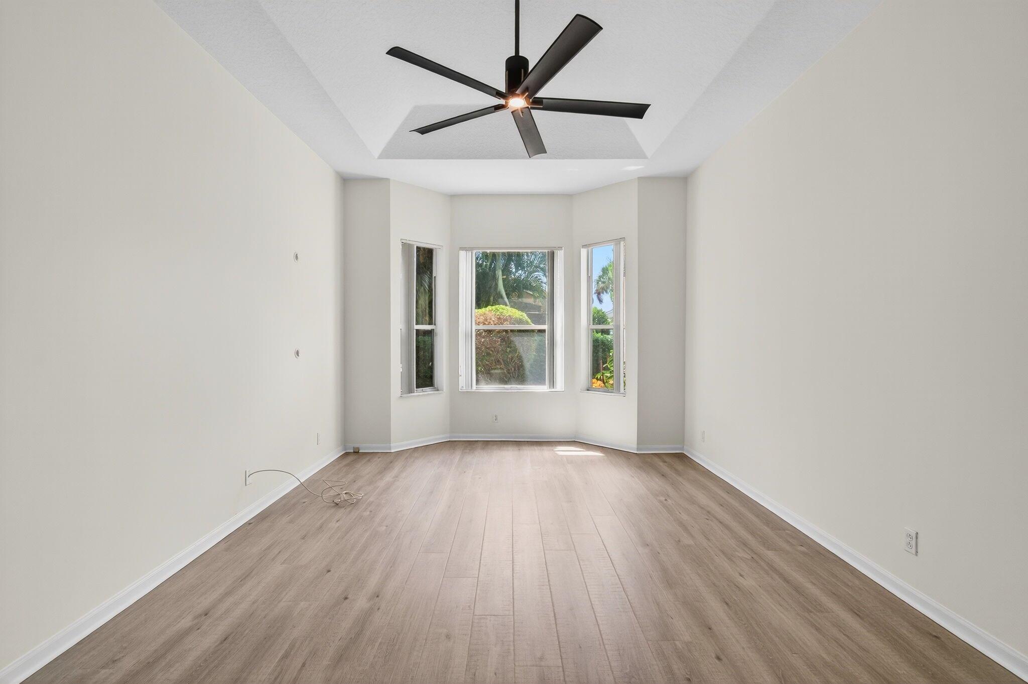 This Granville model in Cascades has been beautifully transformed with BRAND NEW Nature Tek laminate flooring installed throughout the home, offering a seamless and elegant look that enhances every room. With 2 bedrooms plus a den, 2 bathrooms, and over 2,000 square feet of living space, this residence sits on a larger lot with an extended side yard. Freshly painted in neutral Sherwin-Williams tones with wallpaper thoughtfully removed, the interiors are ready for your personal touch. The spacious kitchen offers white 42'' cabinetry, sleek granite countertops, stainless steel appliances--including an LG Stainless Steel refrigerator, a KitchenAide new dishwasher, and a brand new disposal. It opens to both formal and casual living areas, perfect for entertaining or relaxing.