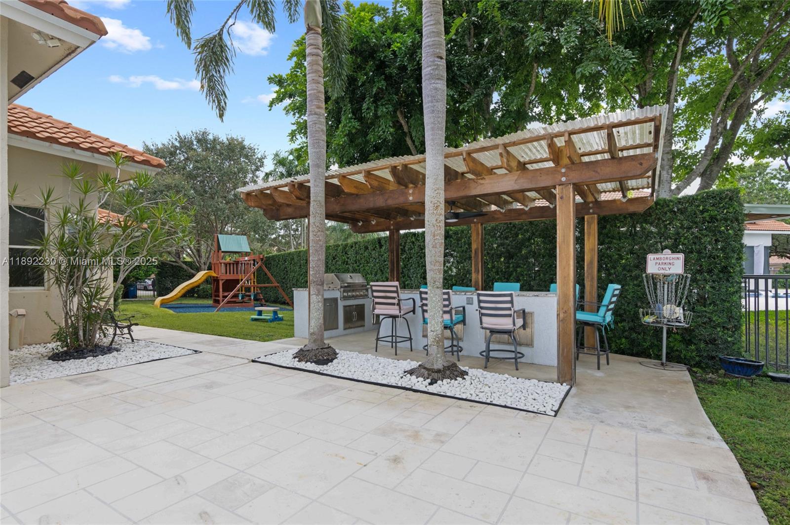 Welcome to this spectacular 5 bedroom 5 bathroom estate perfectly situated on one of the most desirable ½-acre lakefront lots in Weston Hills Country Club! This elegant residence showcases captivating sunset views and exceptional curb appeal with a brick-paved circular driveway, lush landscaping, and a private cul-de-sac setting. Truly enjoy South Florida living with a sparkling pool w/ new heater, summer kitchen + lake views! Updated roof! Inside, soaring volume ceilings, an open modern floor plan, and high-end finishes create a sense of space and sophistication. The gourmet kitchen flows effortlessly into bright living areas ideal for entertaining or family gatherings. With its combination of timeless design and unparalleled location, this home offers the ultimate Weston Hills lifestyle.