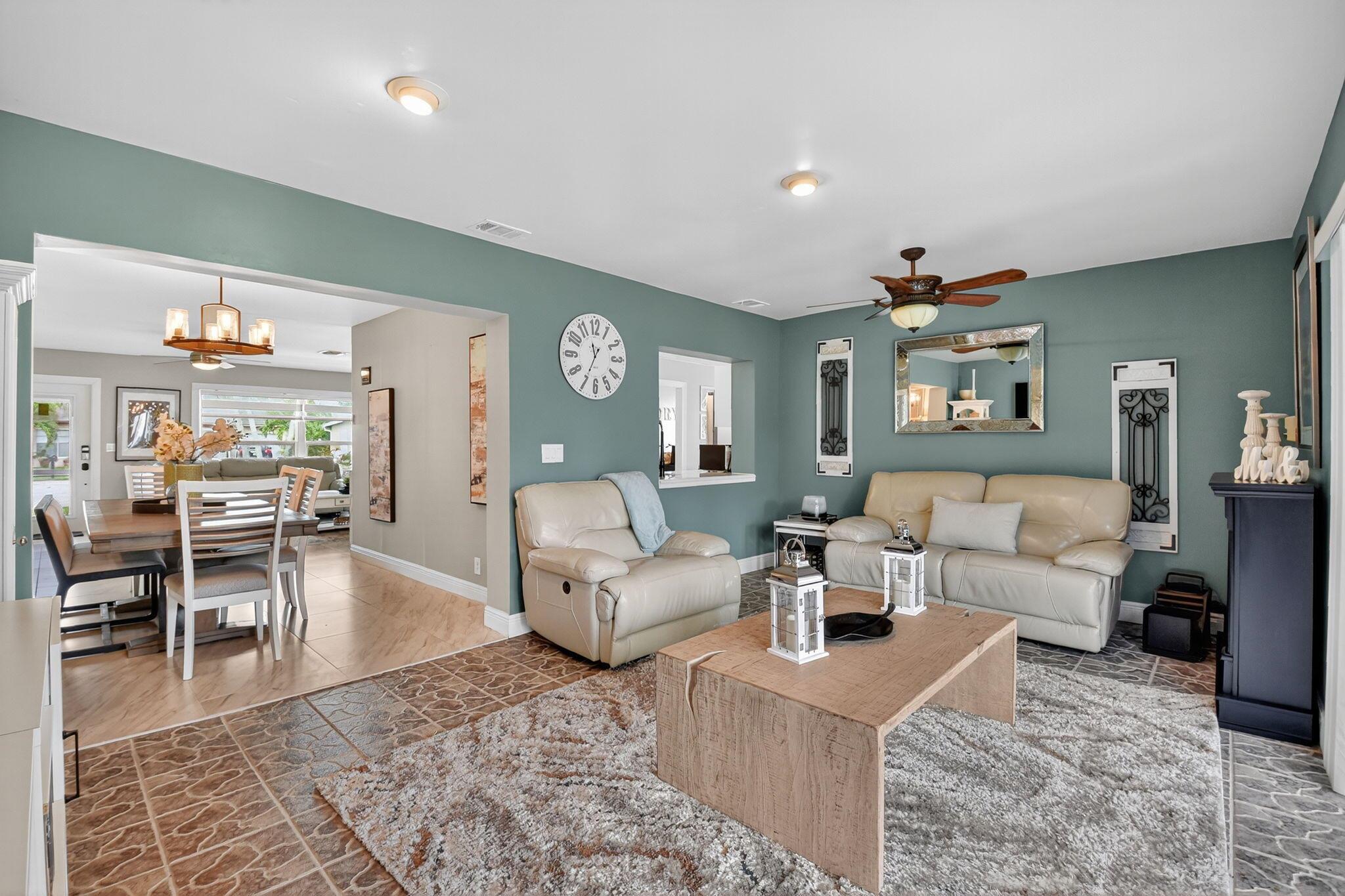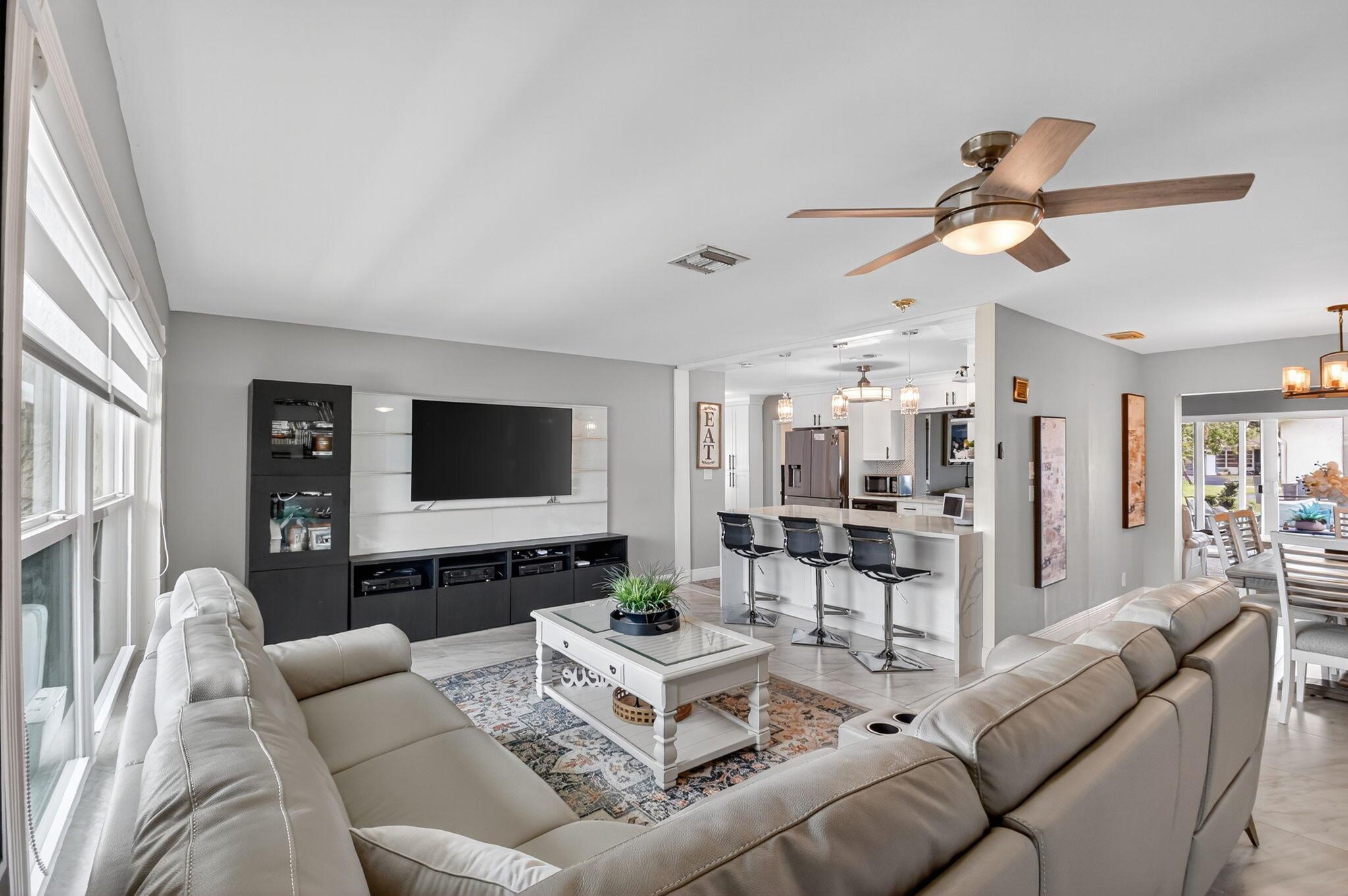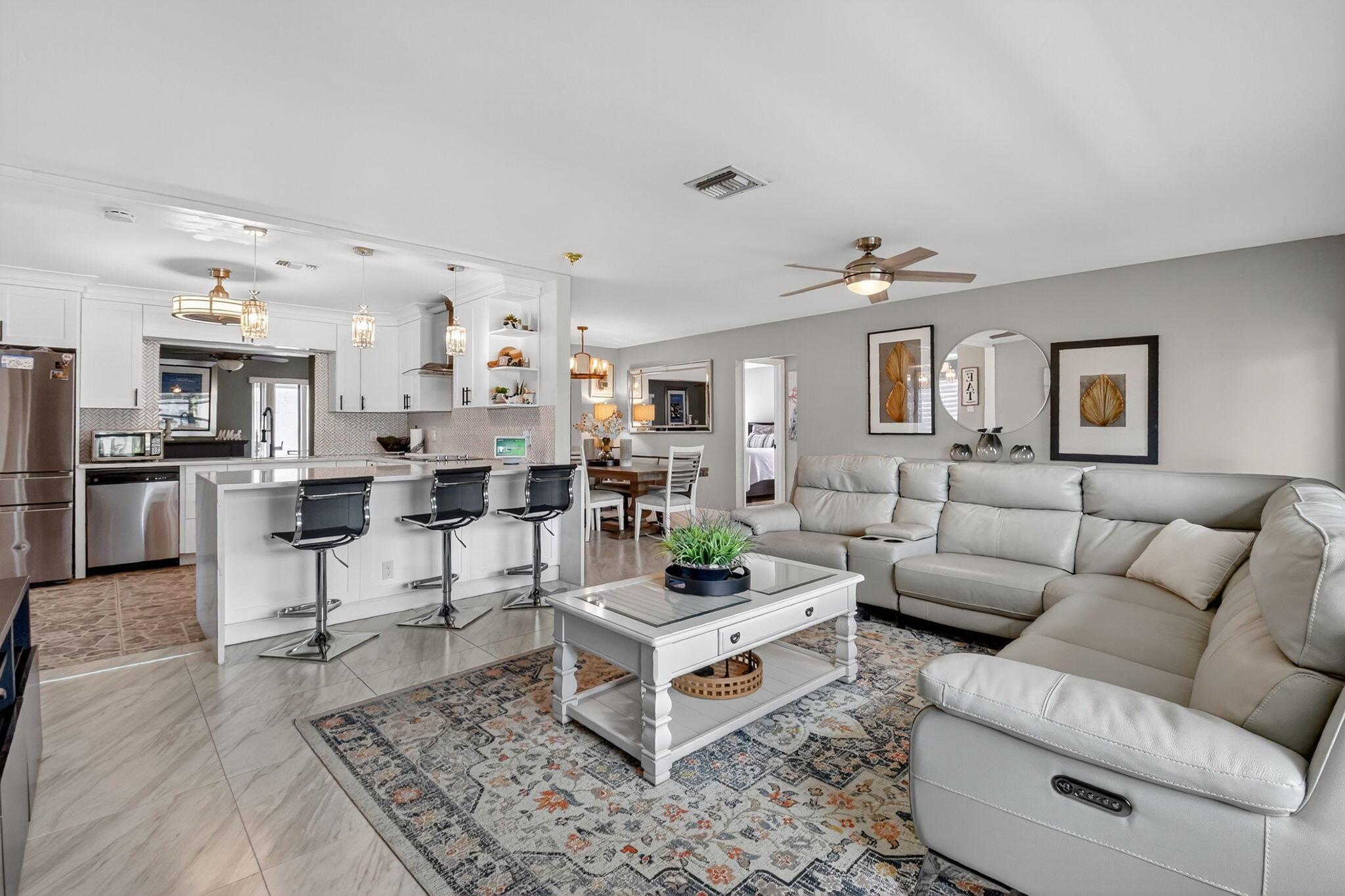 Will not last! Light and bright beautiful open concept spacious home. 2 bedrooms 2 baths, den / office and spacious, family room. convenient laundry room by kitchen with 1 car garage. Not HOPA community (All ages community) Enjoy the many updates: Kitchen updated 2022, ceramic tile 2022 living and dining area, dishwasher 2019, refrigerator 2018, oven with microwave combination in one 2022, flat top stove 2022, impact windows partial and doors 2022, water filtration system 2019. closet systems installed in Primary and guest bedroom 2021. bathroom fixtures updated 2023, Open porch structure installed 2023, Home is centrally located. With relaxing patio, open porch and screen porch areas perfect for entertaining.