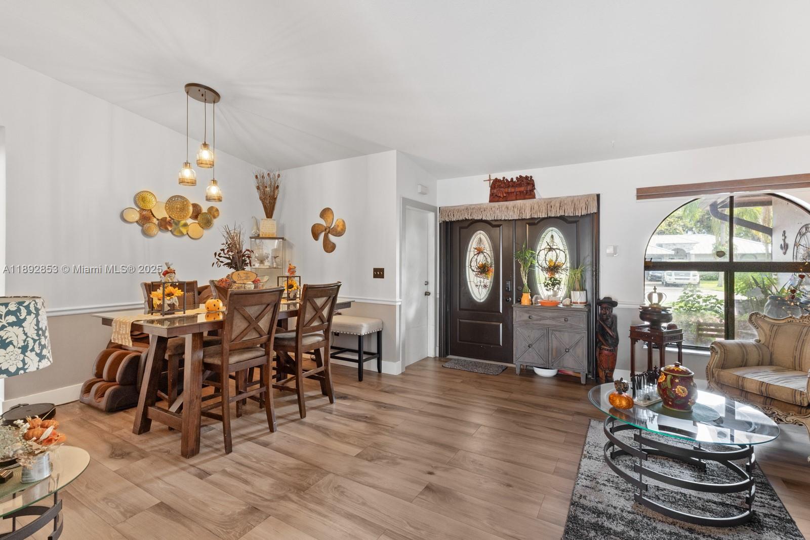 This is the one you were waiting for! A cozy 4/2 home within in the quiet Luz Estela neighborhood which is free of any HOA. The home has a 2-car garage, hurricane shutters, new roof. Inside, the layout is one that lends itself for entertaining. You will find updated laminate & tile floors throughout. All bedrooms are on the main level with the primary on one side of the home and the remaining 3 on the opposite side. Updated kitchen with plenty of cabinet space, with newer appliances for all your cooking needs. With small changes you can make this house your family's next home. Beyond the doors of the family room, you step out to a backyard laid out for outdoor fun. It is fully fenced to ensure privacy with a pool, jacuzzi & fruit trees, perfect for relaxing with family or hosting friends.