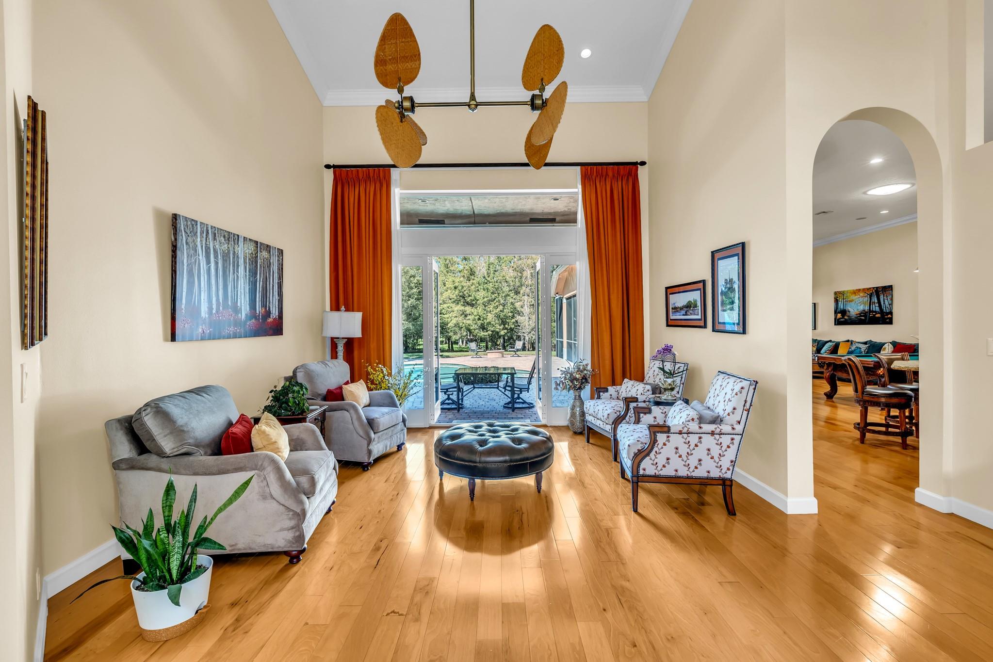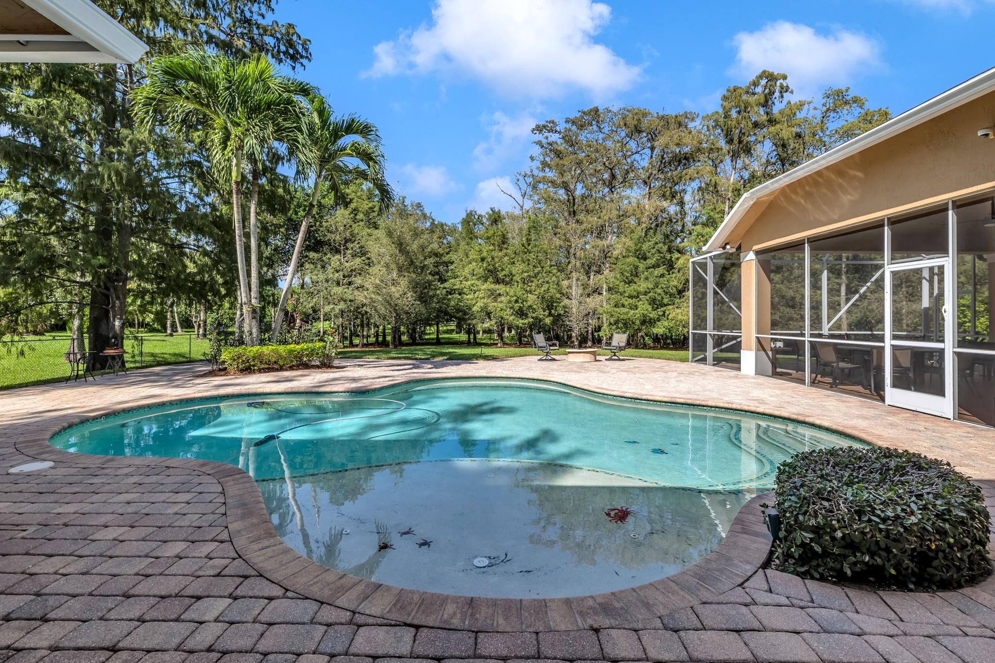 Experience timeless elegance & modern Florida living in this stunning 5-bedroom, 3.5-bath estate home in the sought after community of Pine Tree Estates, Parkland, FL — with NO HOA! Nestled on a private 1.09-acre wooded lot, this residence blends Northern charm with the airy feel of South Florida luxury. A stately gated circular driveway, manicured lawn, & grand entryway set the tone. Enjoy an open kitchen and family room with rich wood cabinetry, top-tier appliances, a large island, and generous space for entertaining. Each of the five bedrooms are filled with natural light, featuring custom closets, peaceful pool or garden views, and a warm ambiance. The private backyard is a tropical retreat with a sparkling pool, outdoor summer kitchen, two gated animal runs & lush mature landscaping.