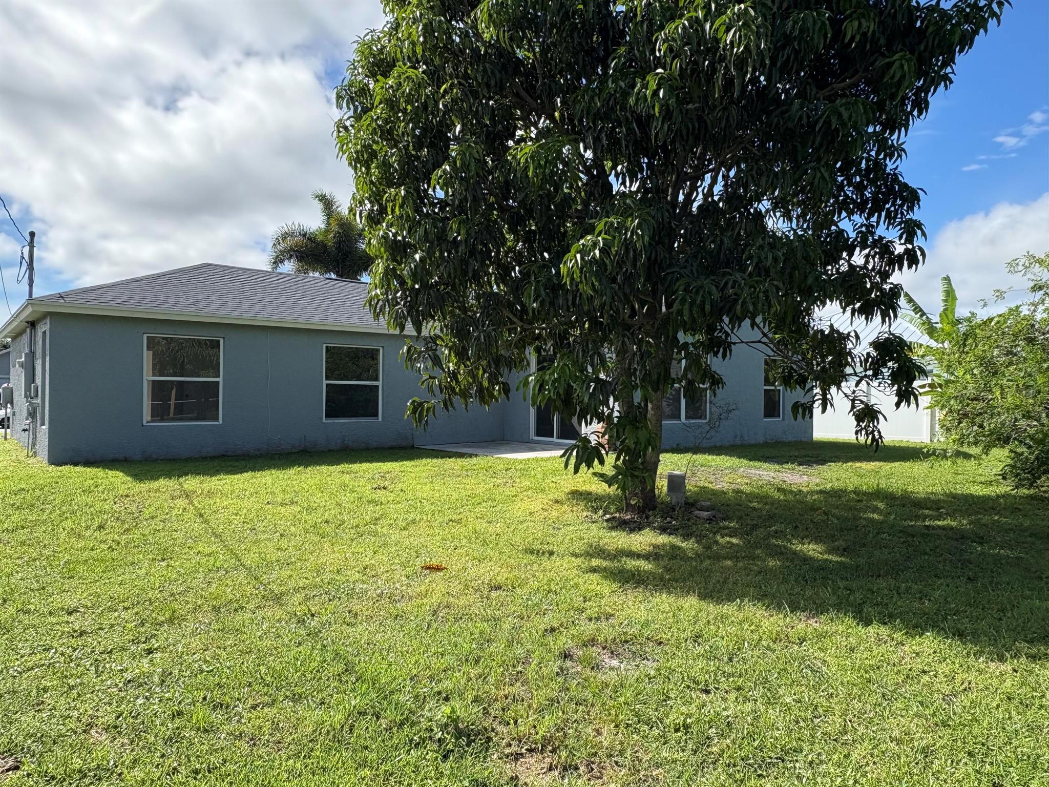 Welcome to this beautifully designed three-bedroom, two-bathroom home with a two-car garage! Built with durable CBS construction, this home features a brand-new roof installed in August 2025. Located in the heart of Port St. Lucie, it offers spacious formal areas including a living room, dining room, and family room--all with tile flooring throughout.One of the standout features of this property is the versatile flex room, perfect for a private office, nursery, workout space, or anything your imagination inspires. Inside, you'll also find an indoor laundry area, a utility closet, and a spacious master bedroom with two closets--one of them a walk-in.With a lush backyard featuring several fruit trees and an open patio, ideal for relaxing or grilling with family. Schedule an Appt. today.