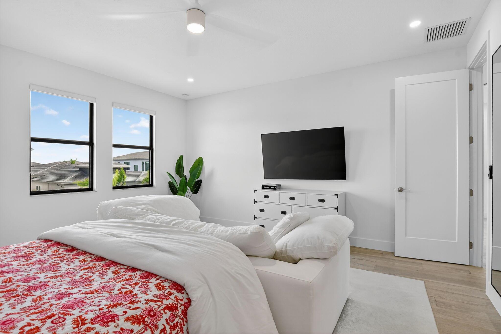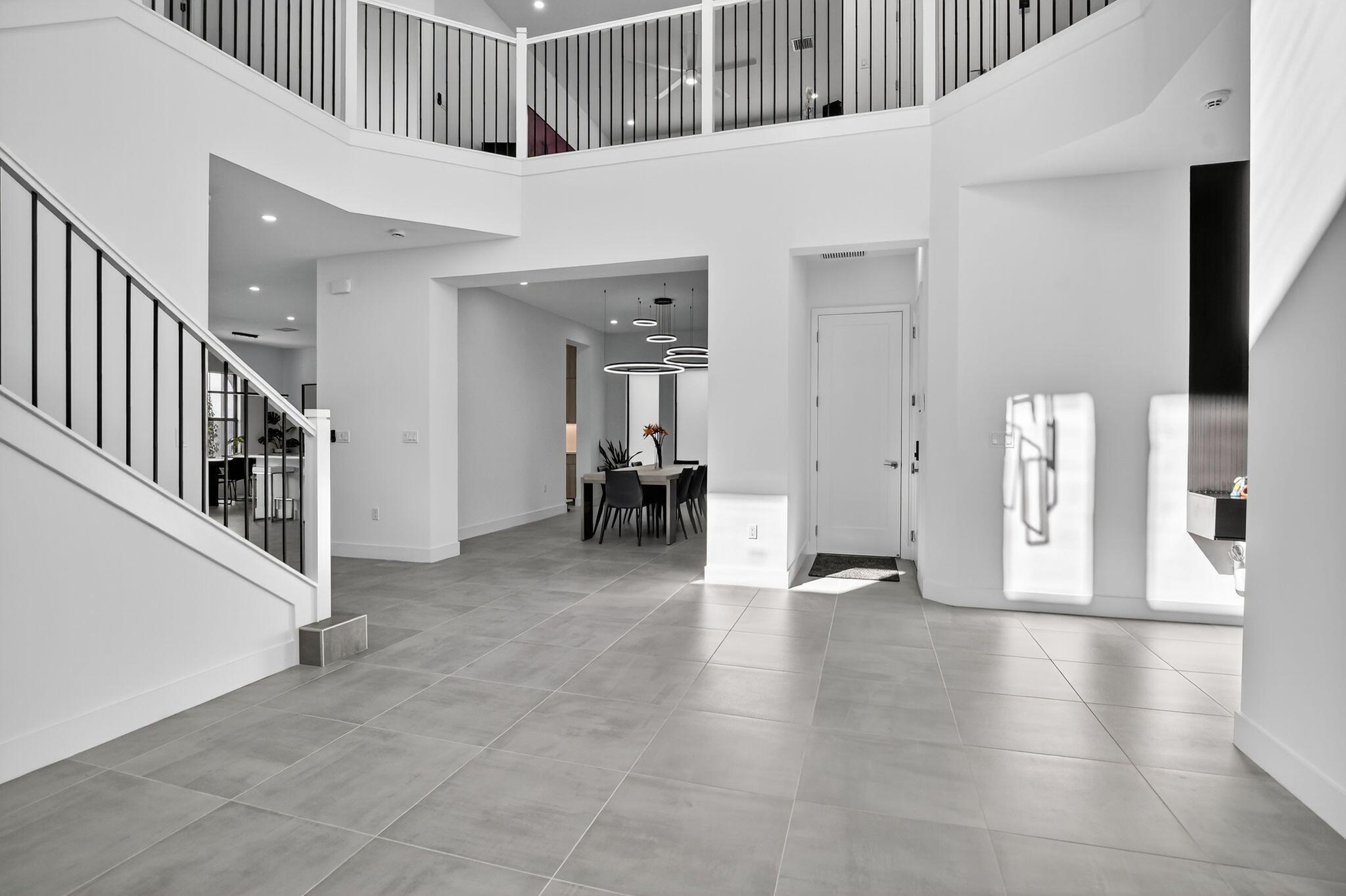 Step into tropical serenity the moment you walk through the door to your own private pool and your view is a secluded backyard surrounded by lush greenery. This Polynesian model blends modern minimalism with calm, airy sophistication. Upstairs showcases upgraded engineered hardwood and sleek mini high-hat lighting. The primary suite features dual bathrooms and two closets, including an oversized walk-in worthy of a dream wardrobe. A stub-out awaits your future summer kitchen. Designed for entertaining downstairs and relaxing upstairs, this home defines balance. Lotus Palm offers resort-style living with pickleball, tennis, fitness center, restaurant, outdoor bar, splash zone, and year-round events. Living in Lotus Palm is like living in a resort year round, get ready to live the lifestyle